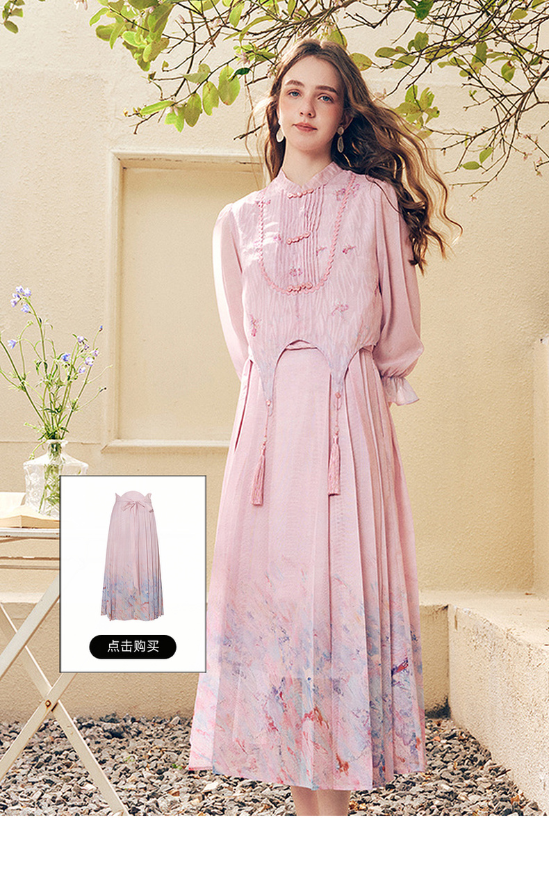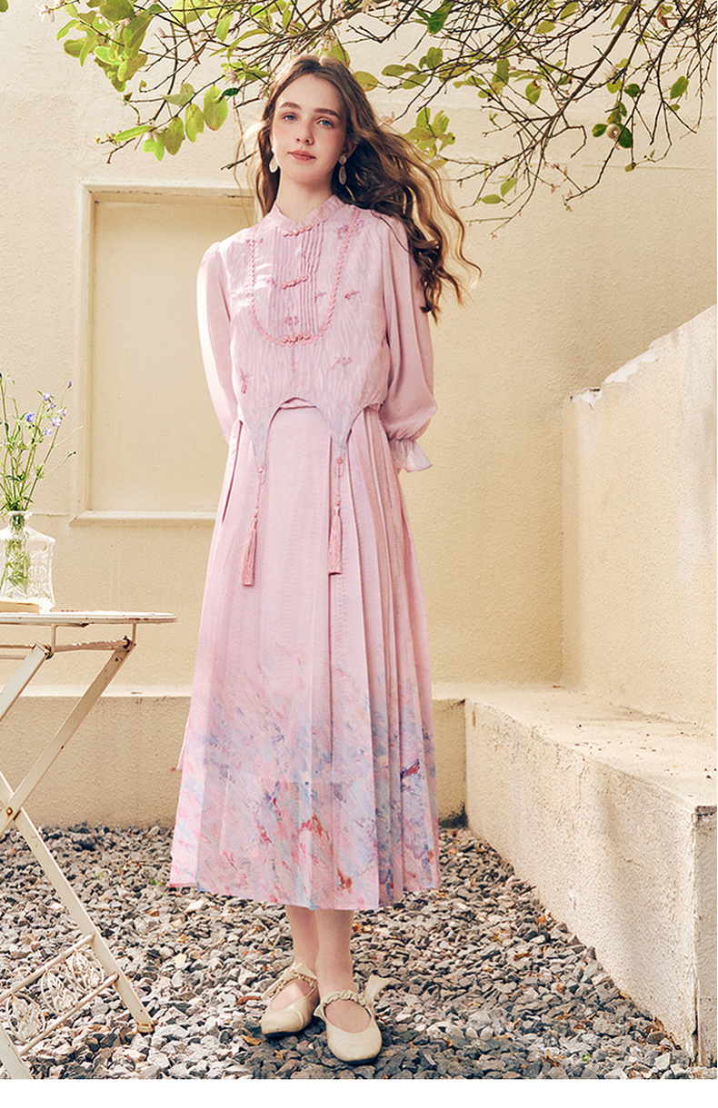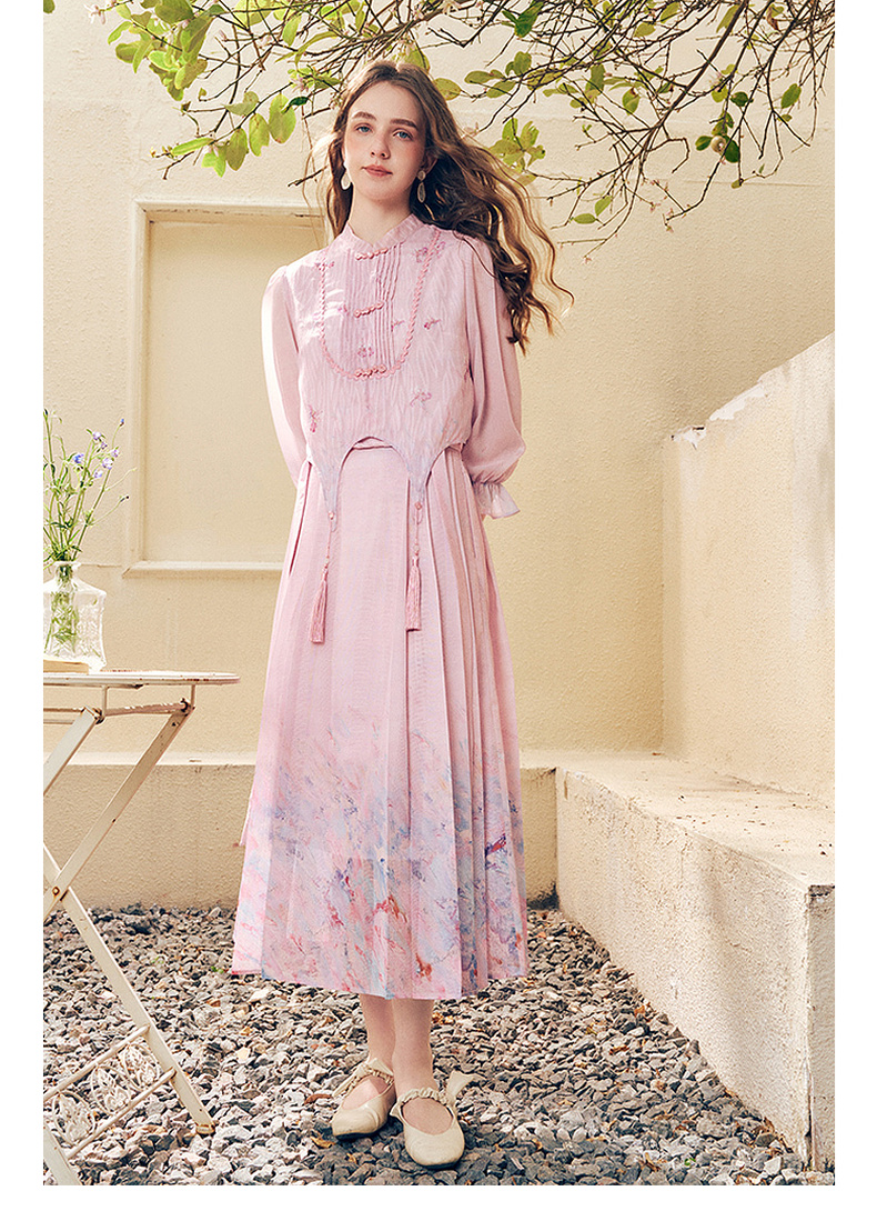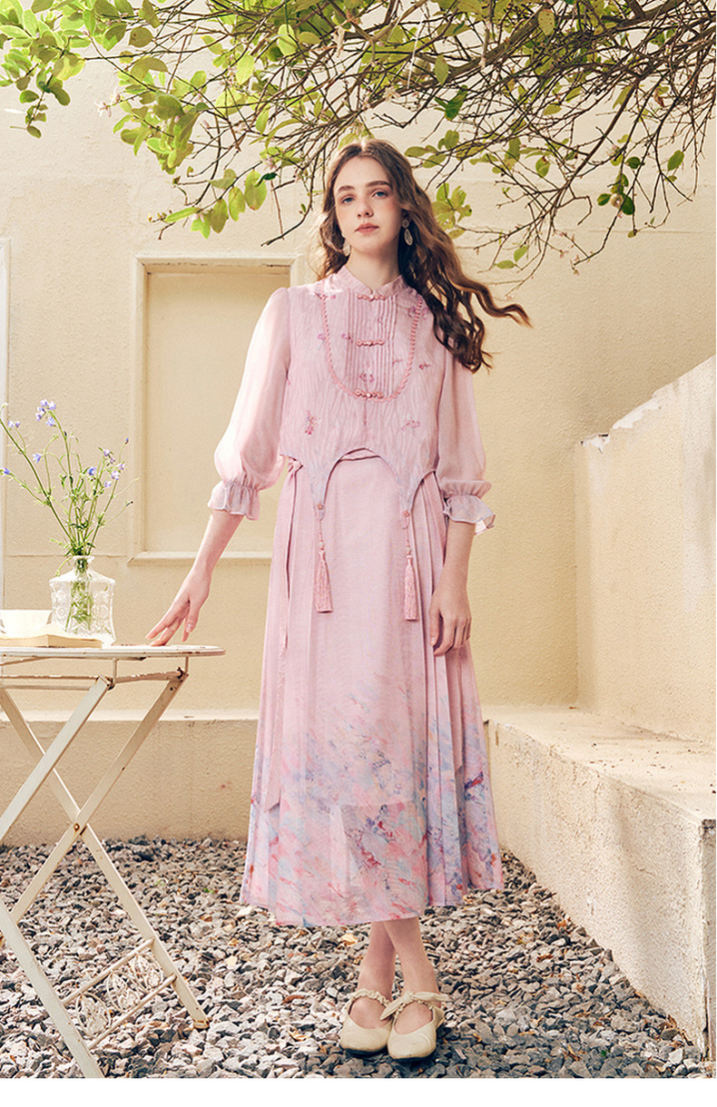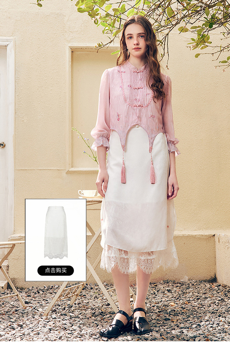 两三事洛神赋2024夏季新款新中式流苏装饰盘扣立领绣花衬衫女