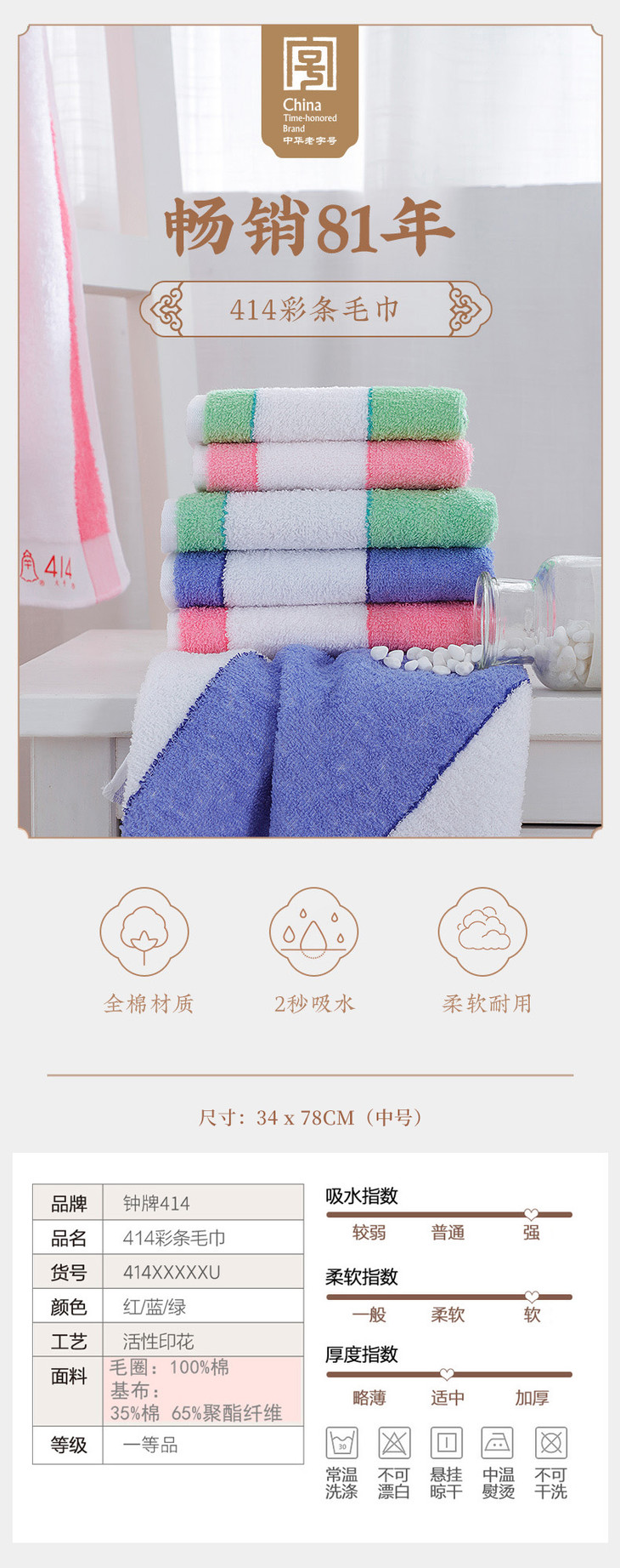 民光钟牌414中号抗菌毛巾(414)-414X25XXU