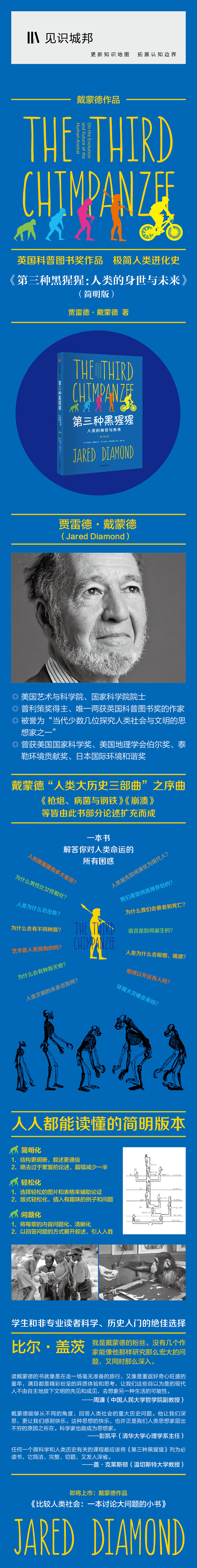 本书为《第三种黑猩猩》的简明版,在完全保留其核心观点和论据的基础上,适当略去了部分晦涩难懂的论证,添加了一些通俗生动的例子,排版也更加亲和、明朗,希望将原书的观点用更简明的方式呈现给大众,特别适合学生和非专业读者阅读。
