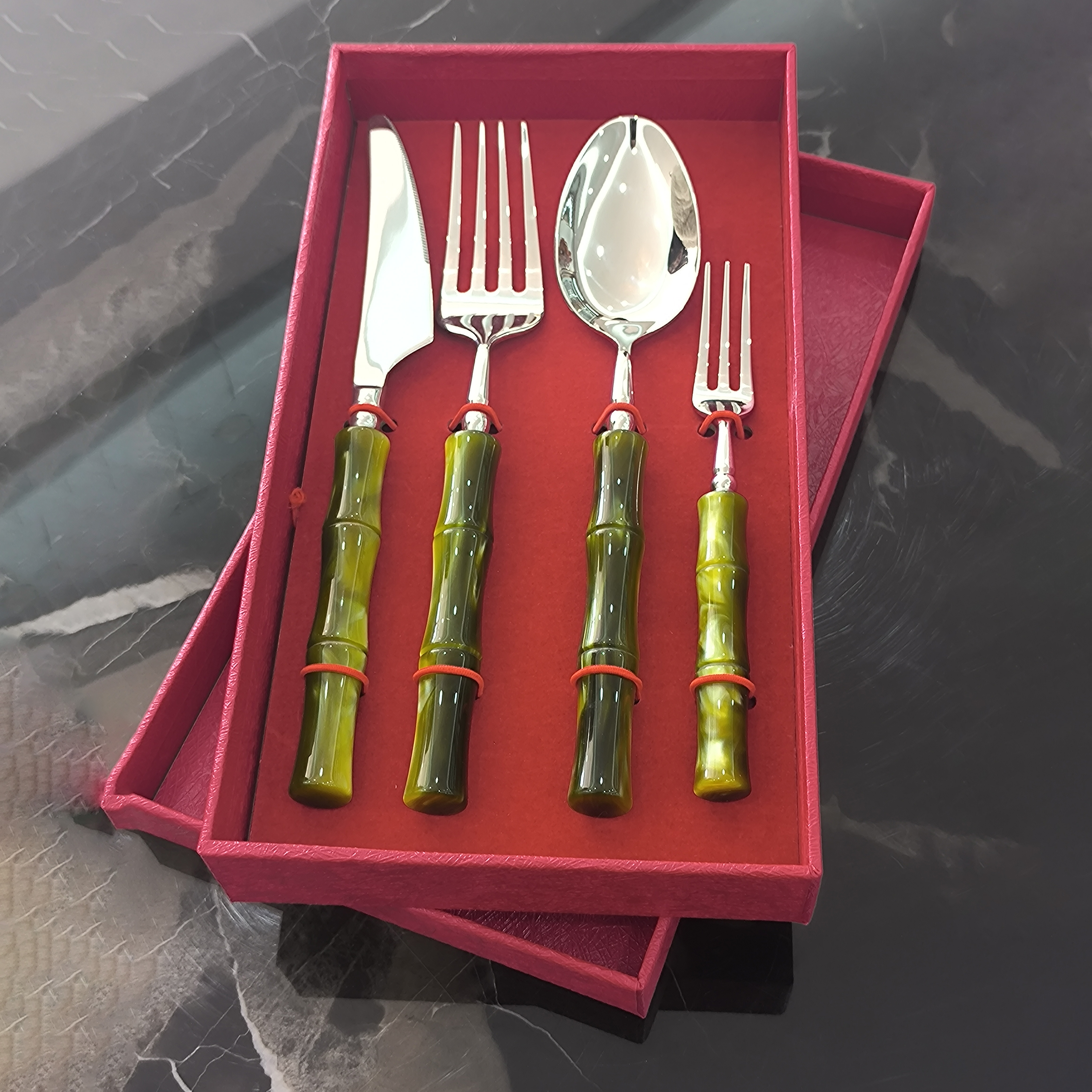亚克力竹节绿色红色礼盒4件套1人用套装