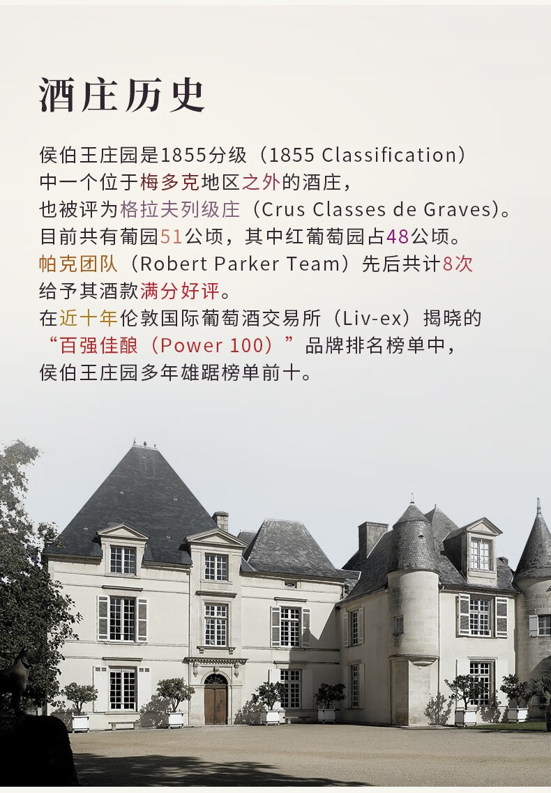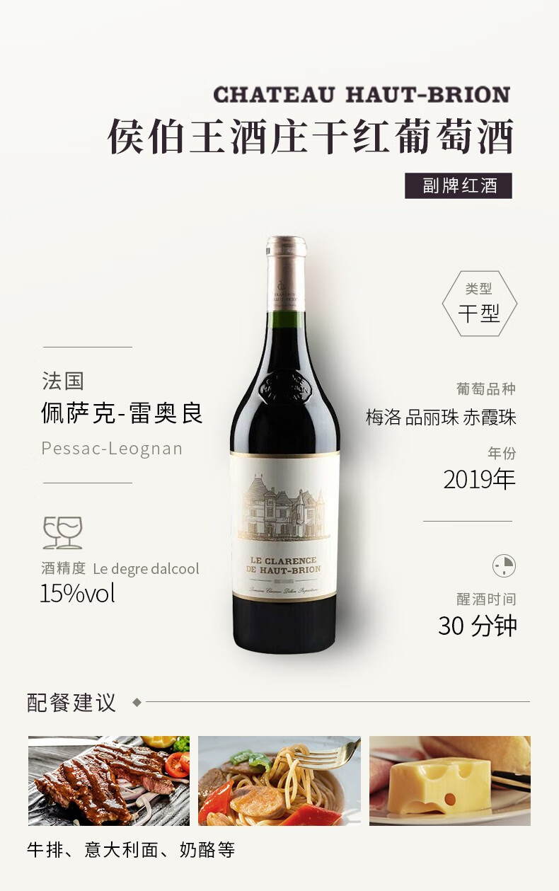 侯伯王庄园副牌干红葡萄酒2019年750ml 法国