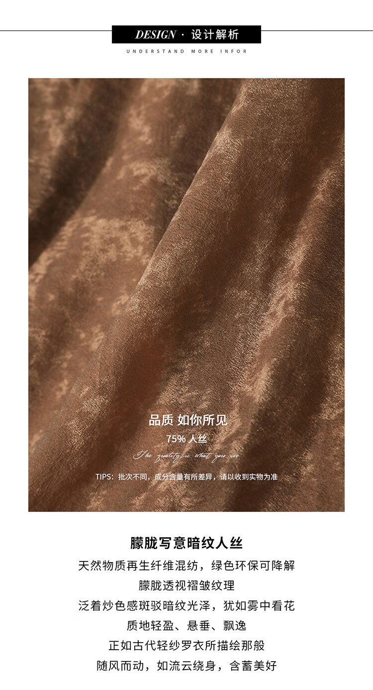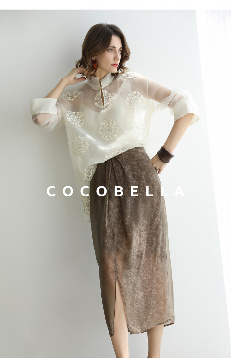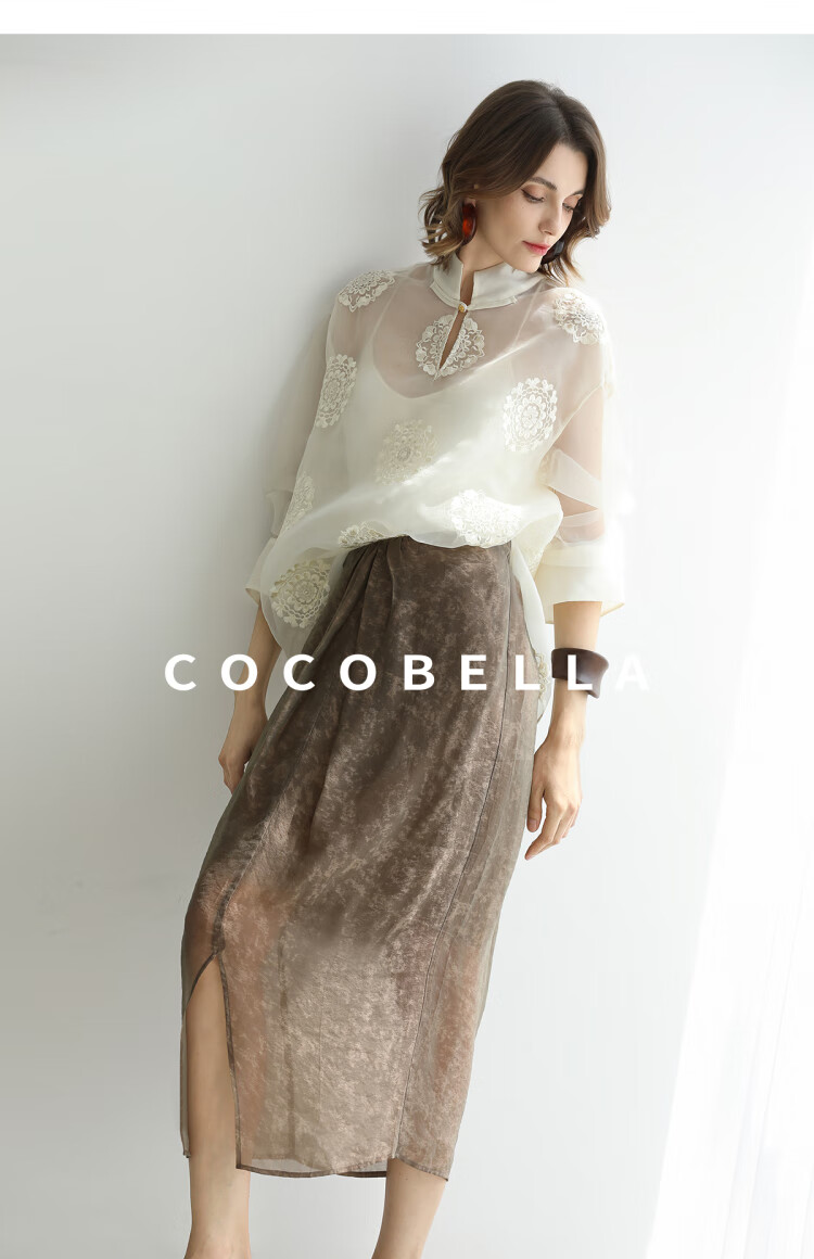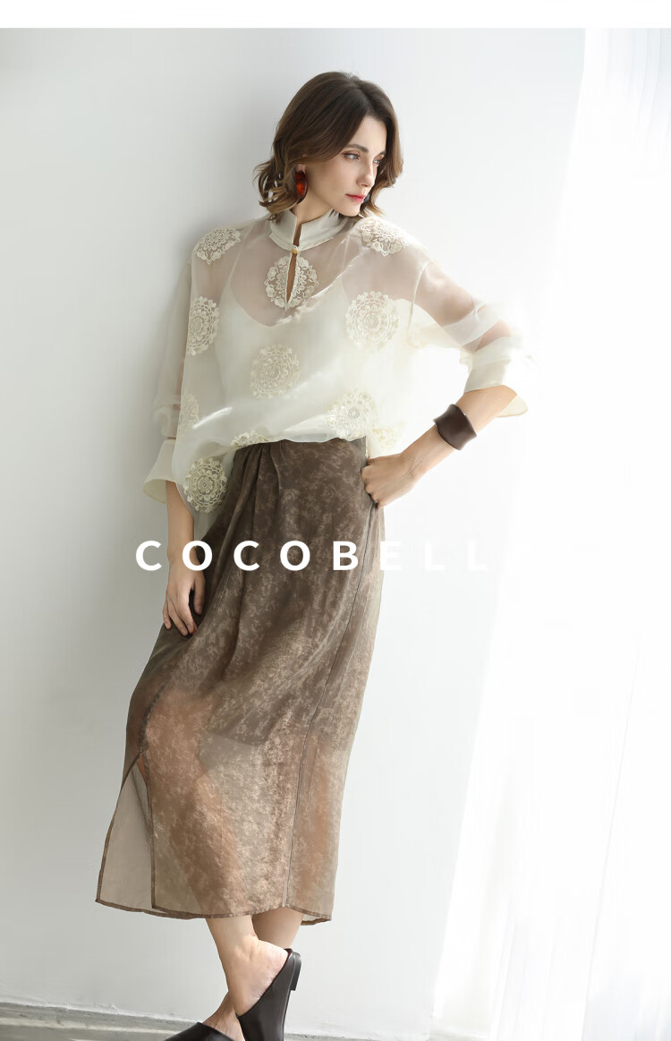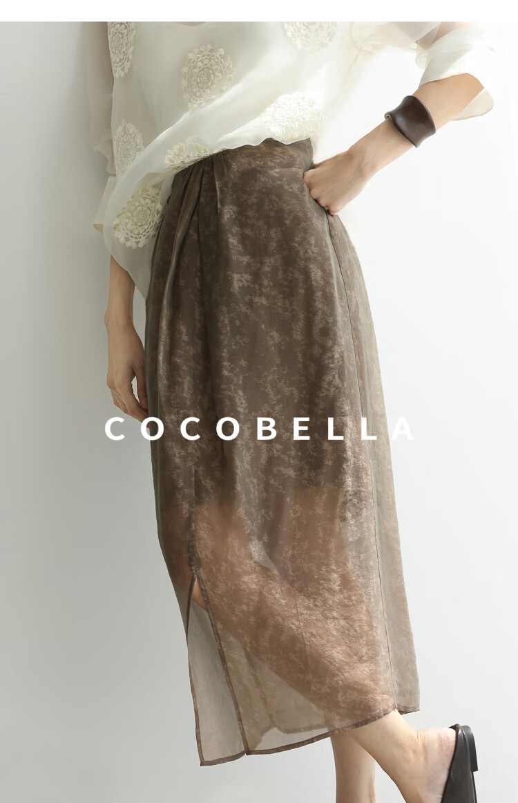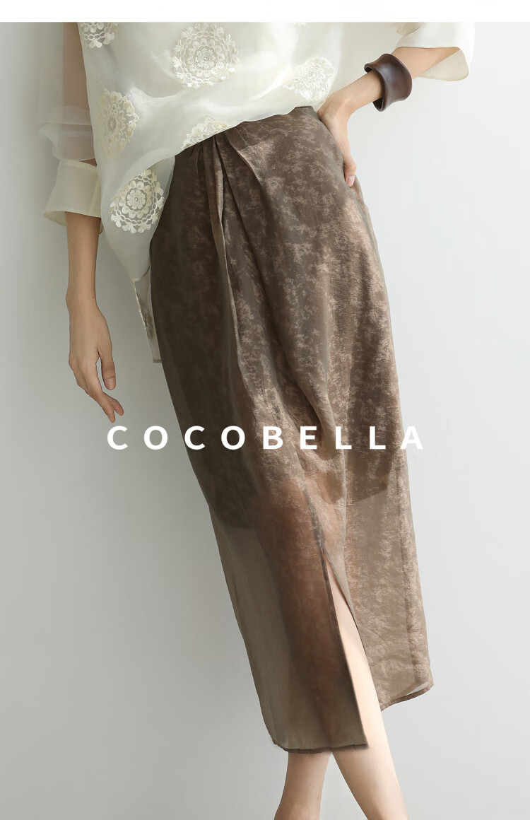 COCOBELLA新中式炒色晕染人丝半身裙25夏国风褶皱长裙HS7040