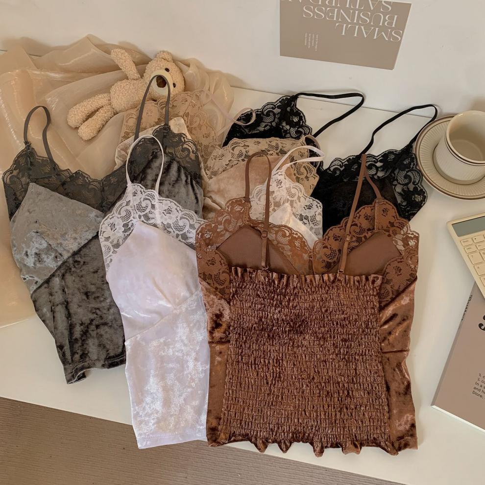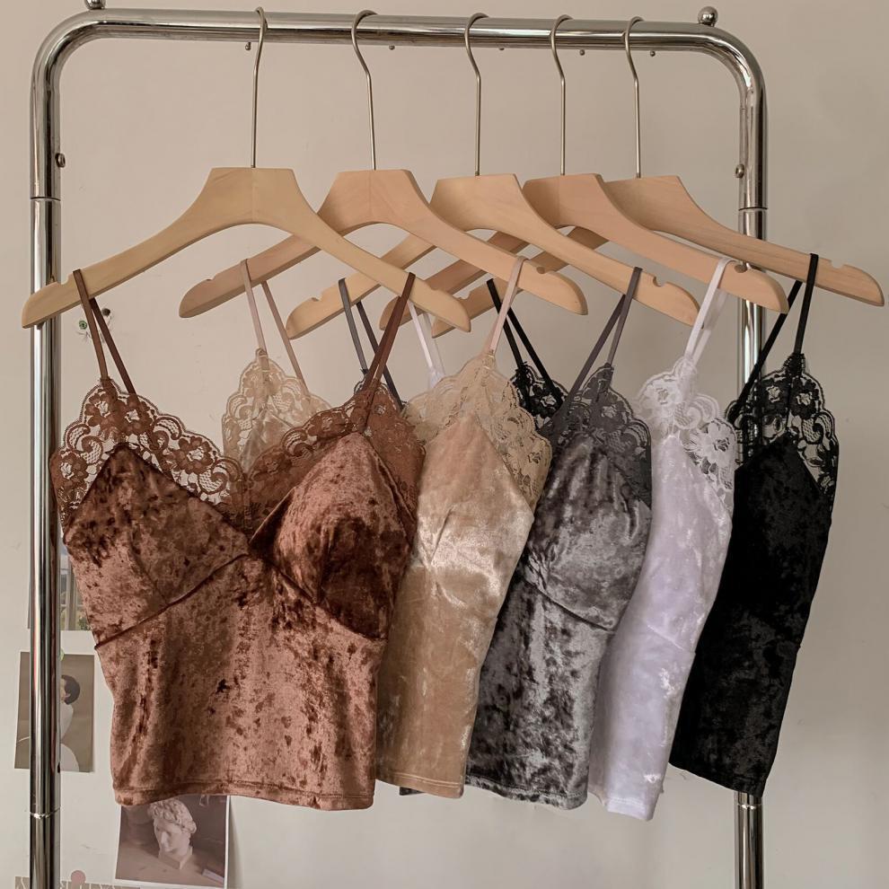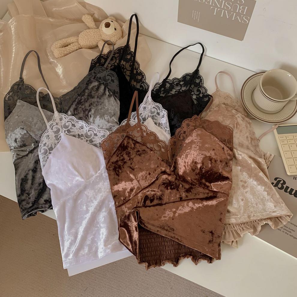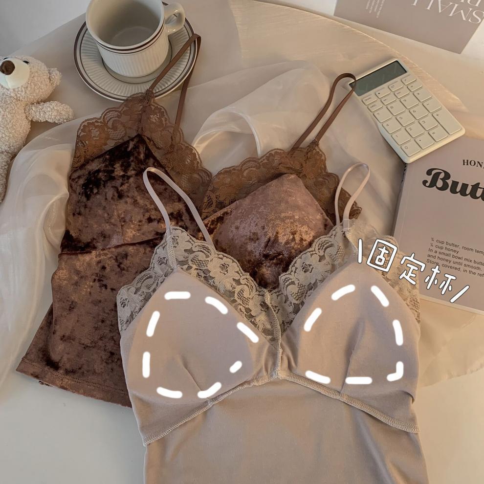 【小众设计款!抢2件更划算!】纯欲蕾丝金丝绒拼接吊带 百搭舒适遮副乳 秋冬美背上衣bra