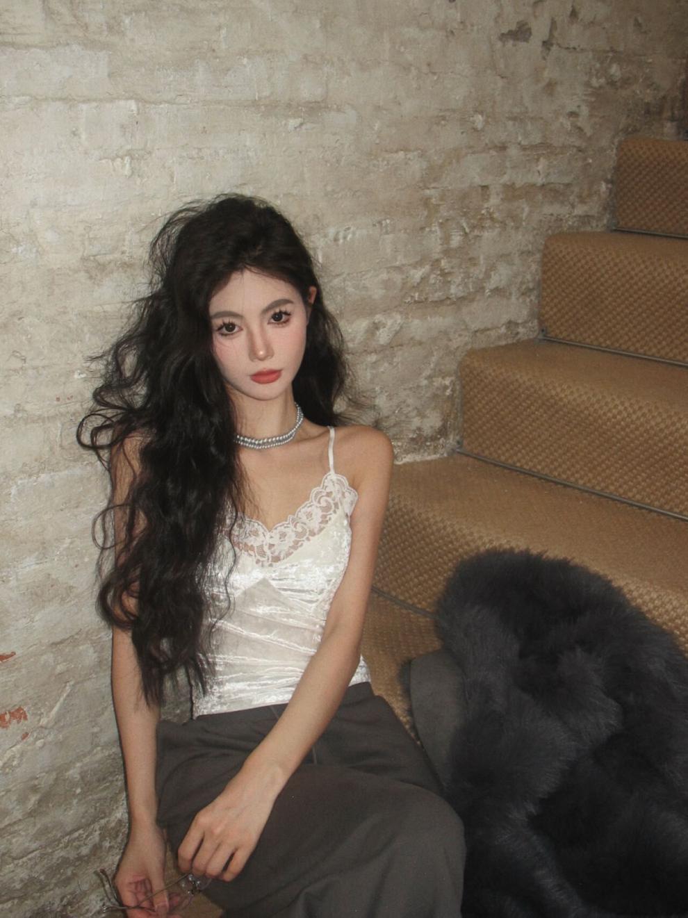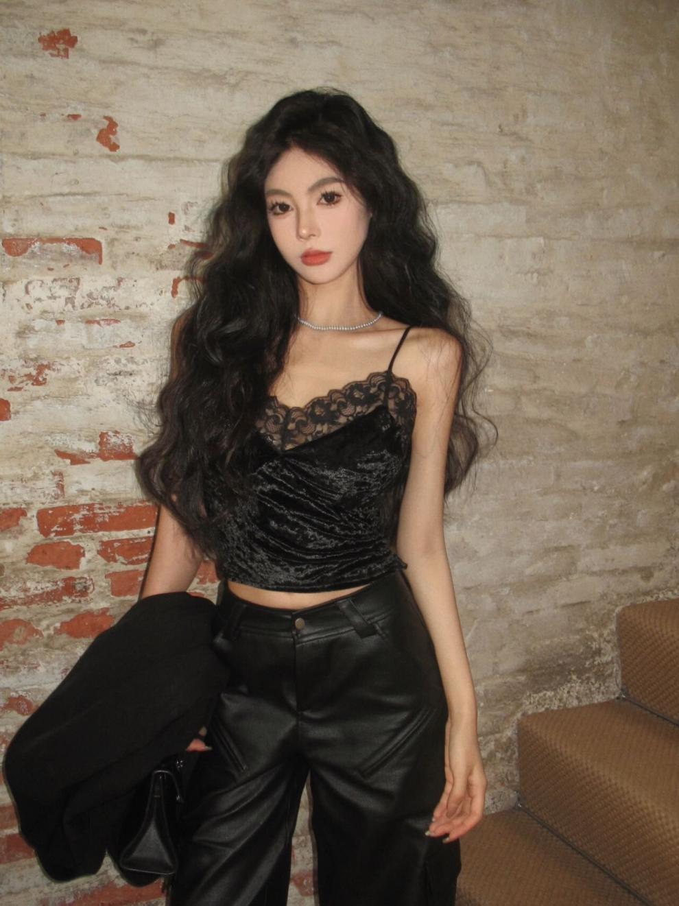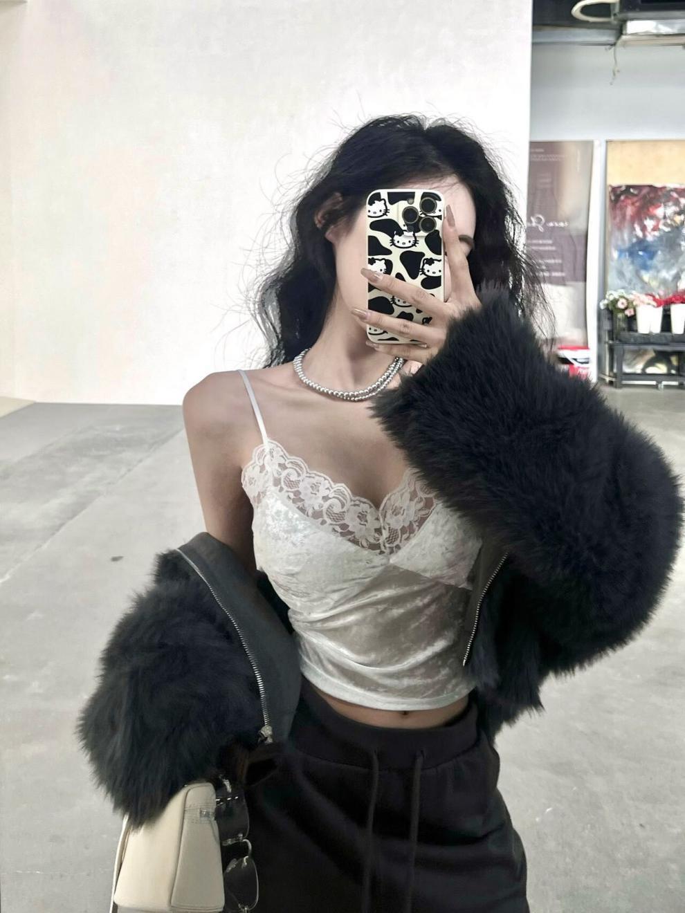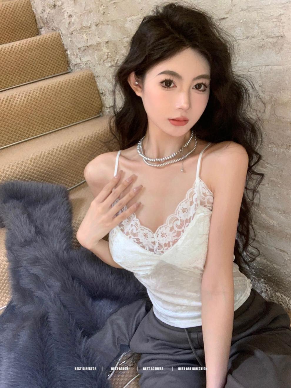 【小众设计款!抢2件更划算!】纯欲蕾丝金丝绒拼接吊带 百搭舒适遮副乳 秋冬美背上衣bra