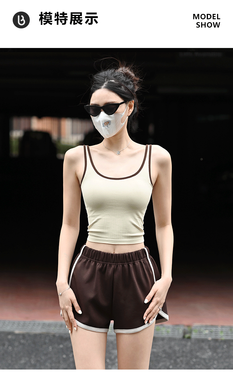 beemen冰感莱卡瑜伽服女夏运动内衣带胸垫外穿内搭吊带