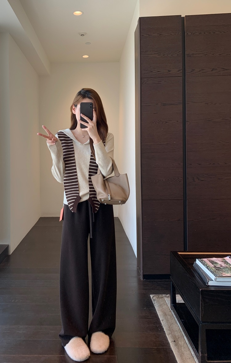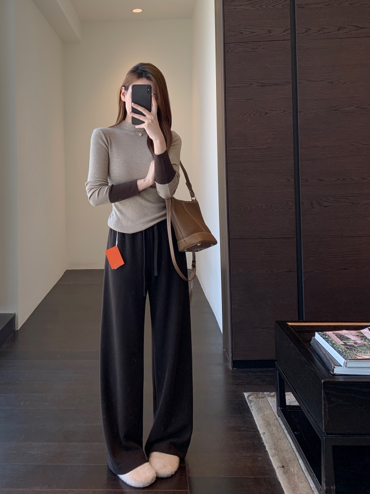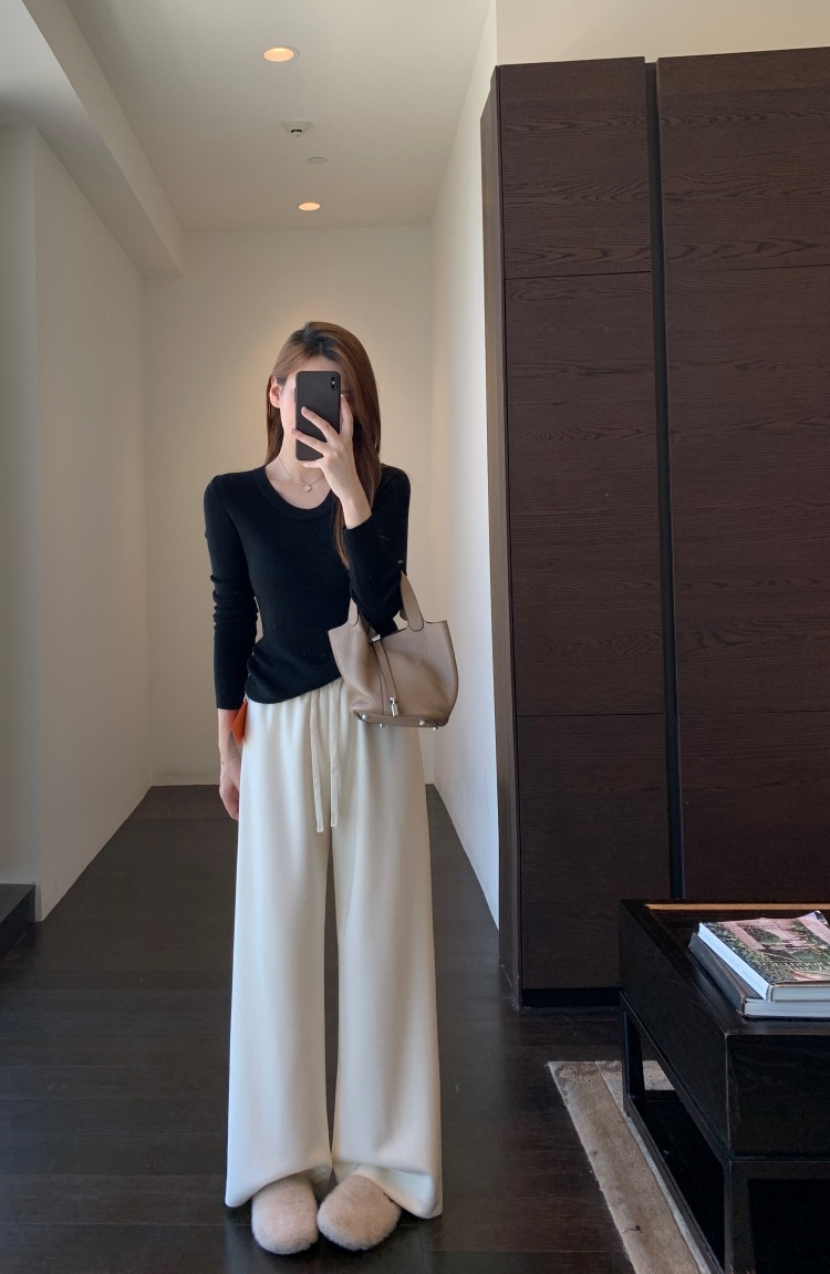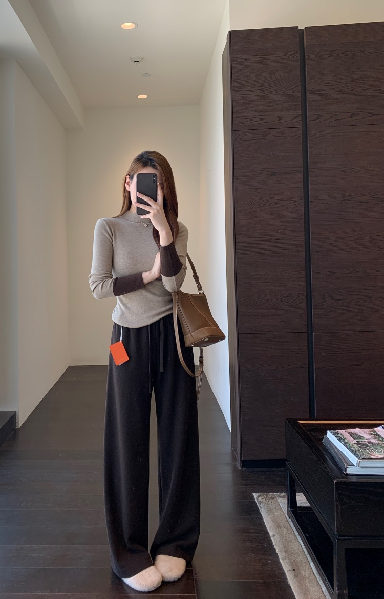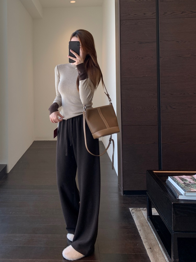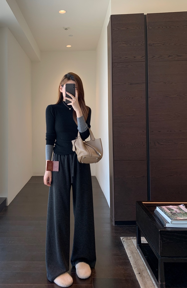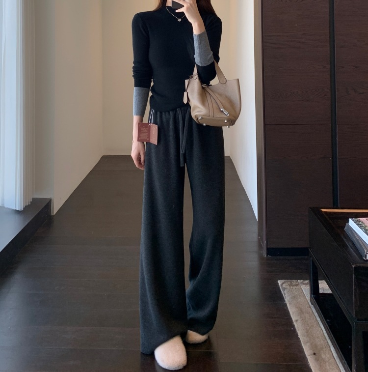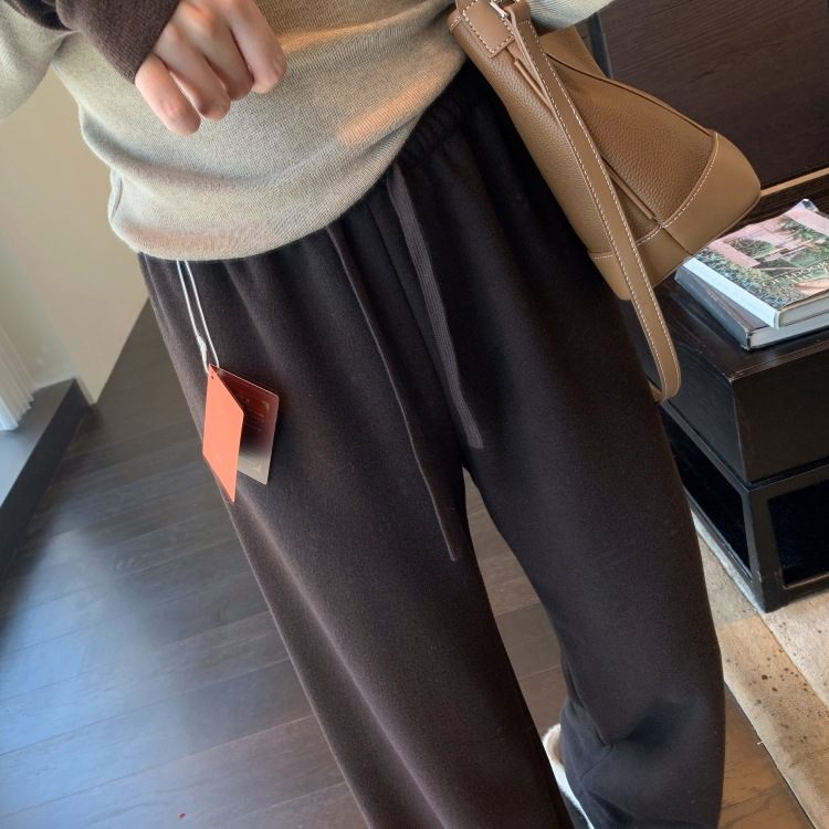 (预售3-7天)秋冬重磅羊绒羊毛桑蚕丝混纺阔腿裤 高腰抽绳松紧腰 遮肉显腿长 百搭懒人款