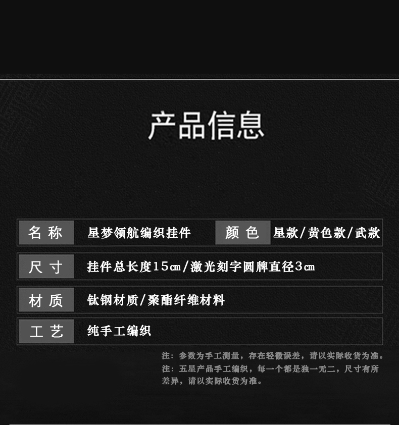 新款《星梦领航》五星挂件钥匙扣 手工编制搭配太钢定制圆牌 成就酷酷的包包挂件小装饰