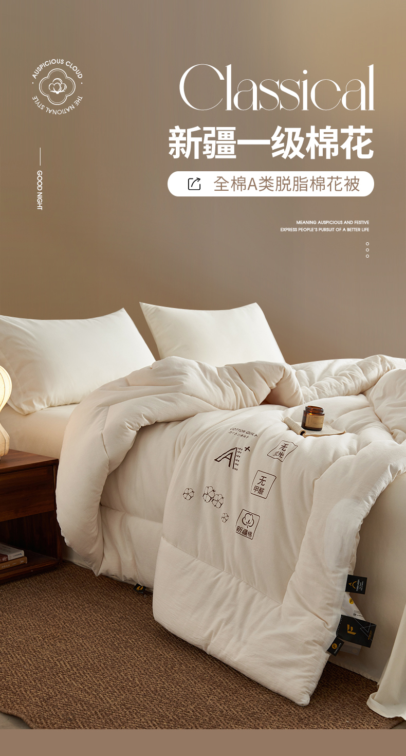 【热卖推荐】自然醒棉朵-全棉A类医用级脱脂棉花被100%新疆长绒棉阿克苏棉花冬被棉絮棉被春秋被FM