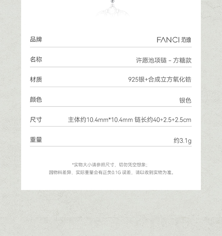 FANCI范琦【许愿池系列】许愿池项链方糖款女银高级感礼物送女友
