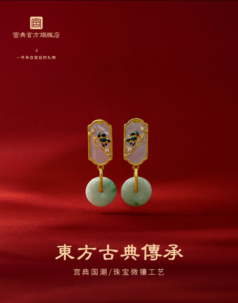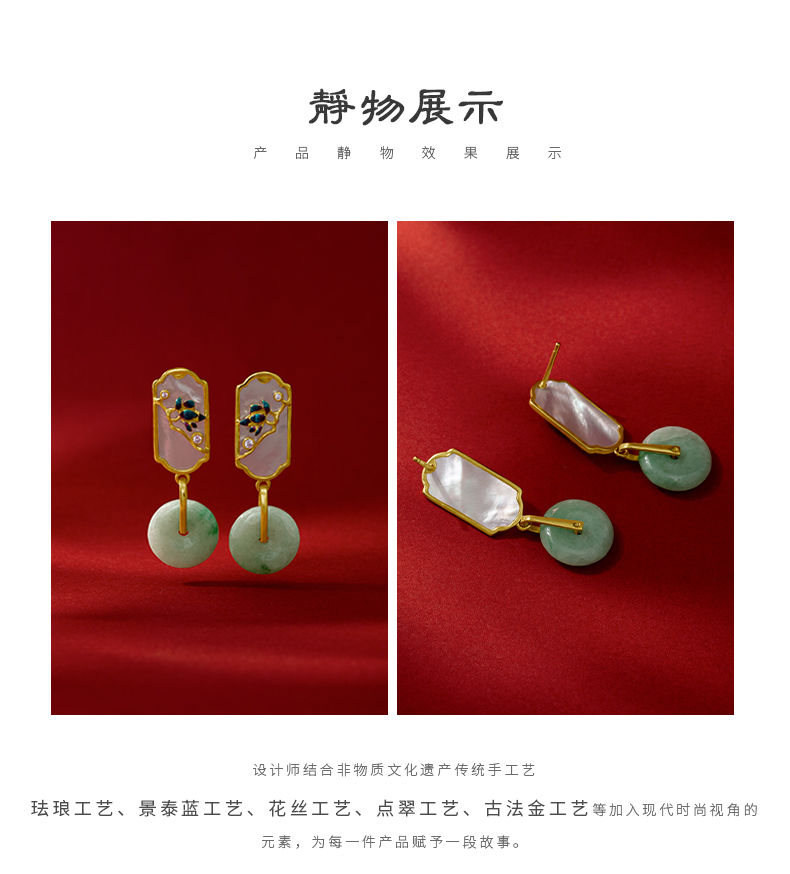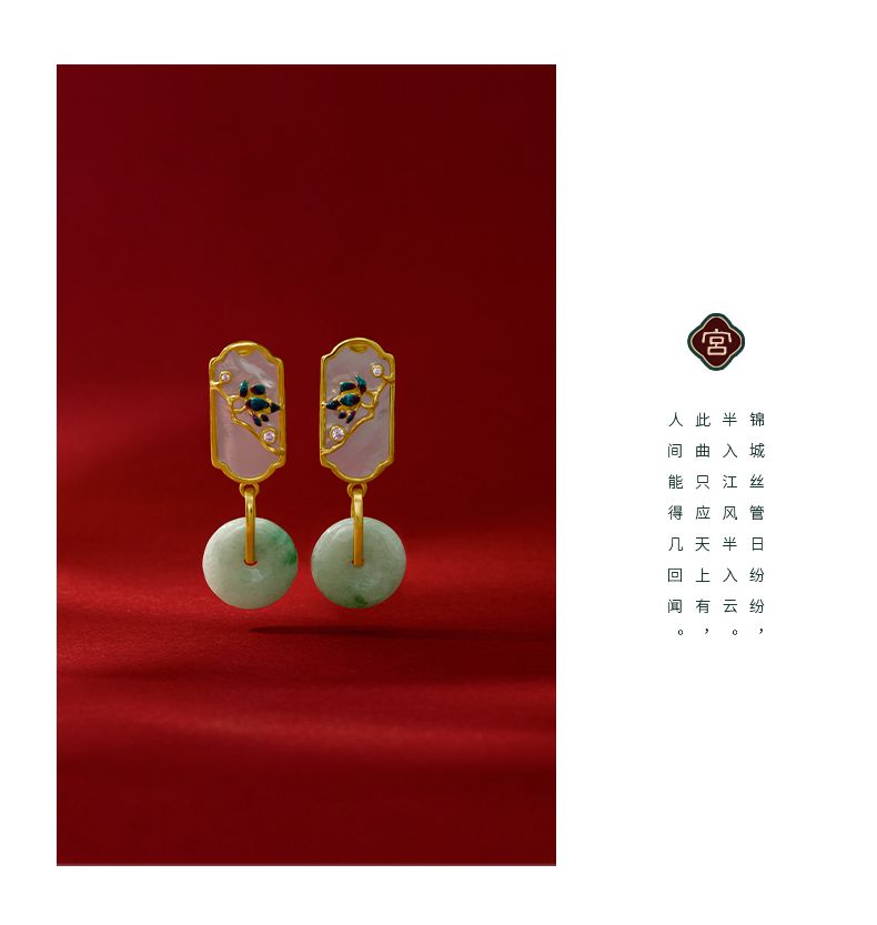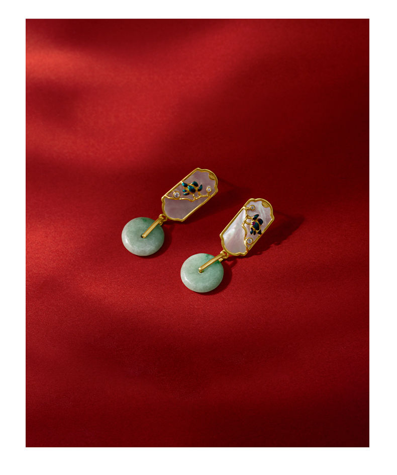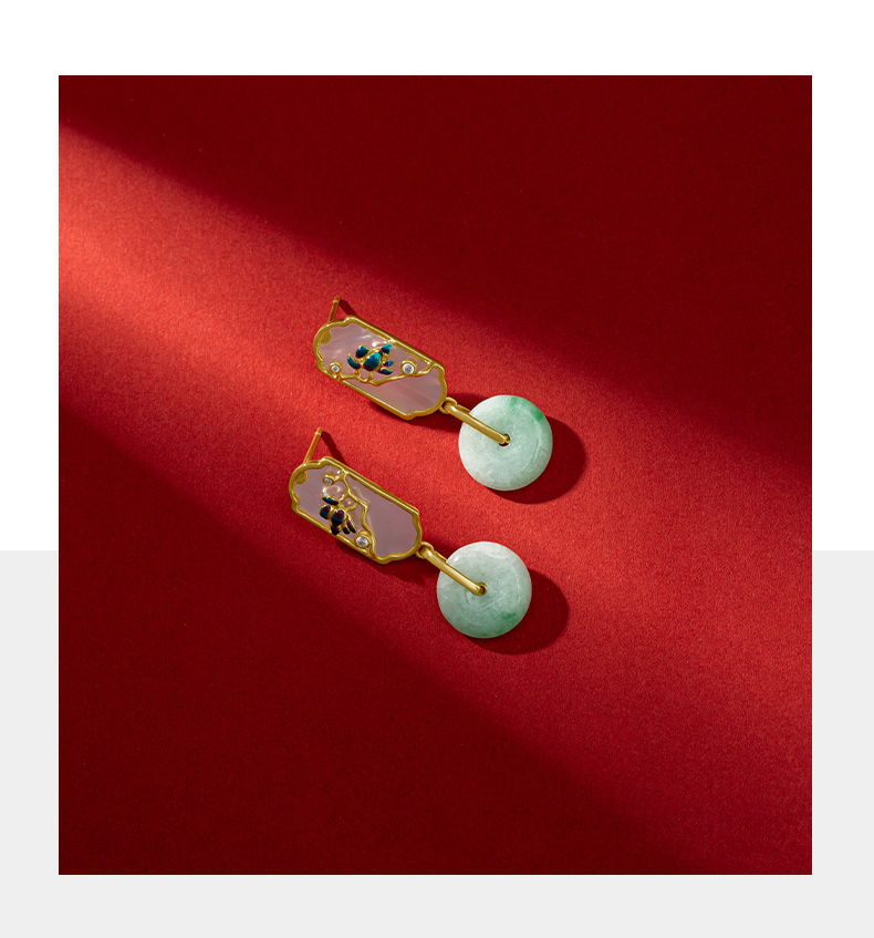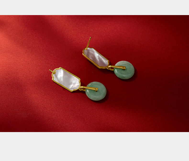国潮翡翠轻奢耳环女小众复古风女平安扣玉石耳环旗袍汉服耳饰气质