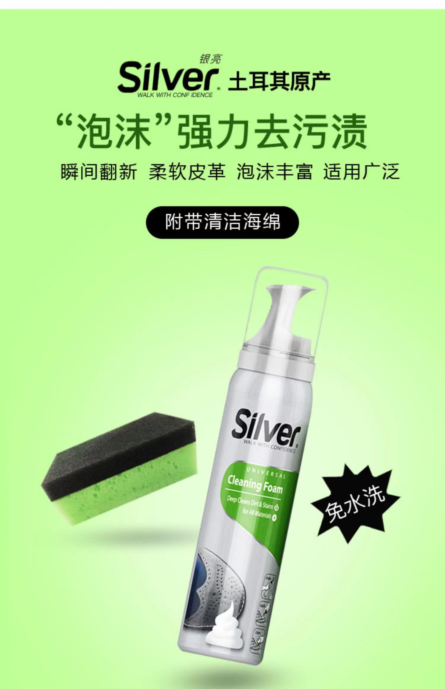 【中欧班列送海绵擦】土耳其泡沫清洁剂 原装进口银亮泡沫清洁剂125ml 【中欧班列】