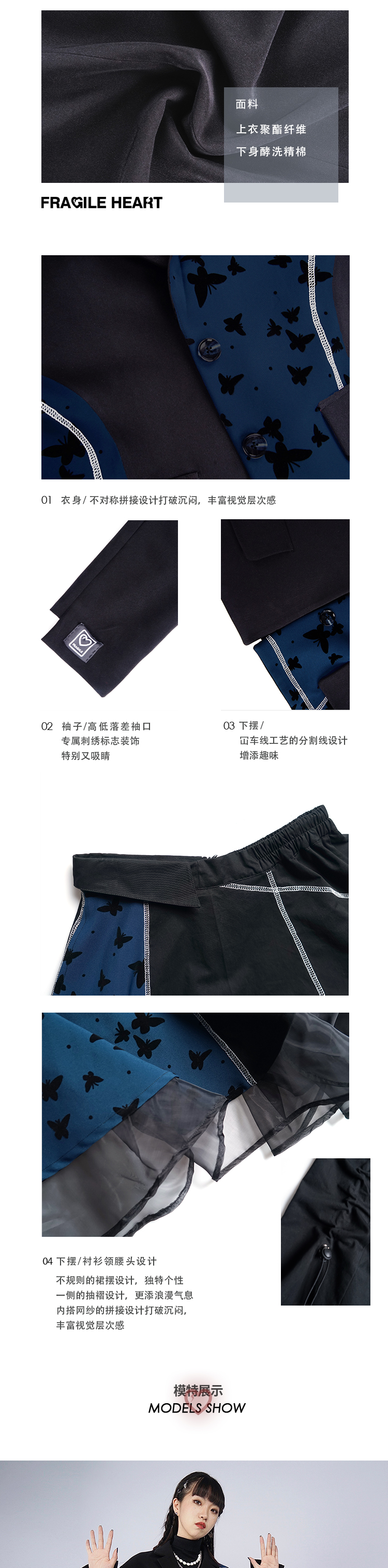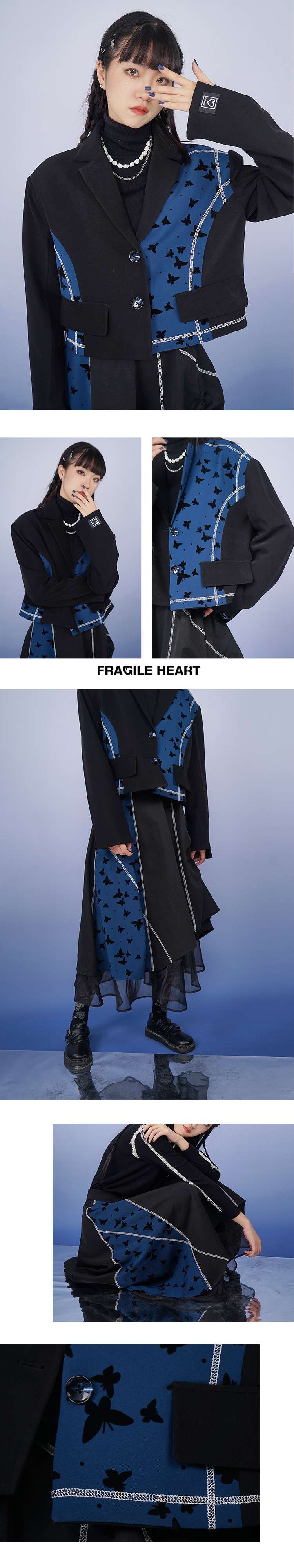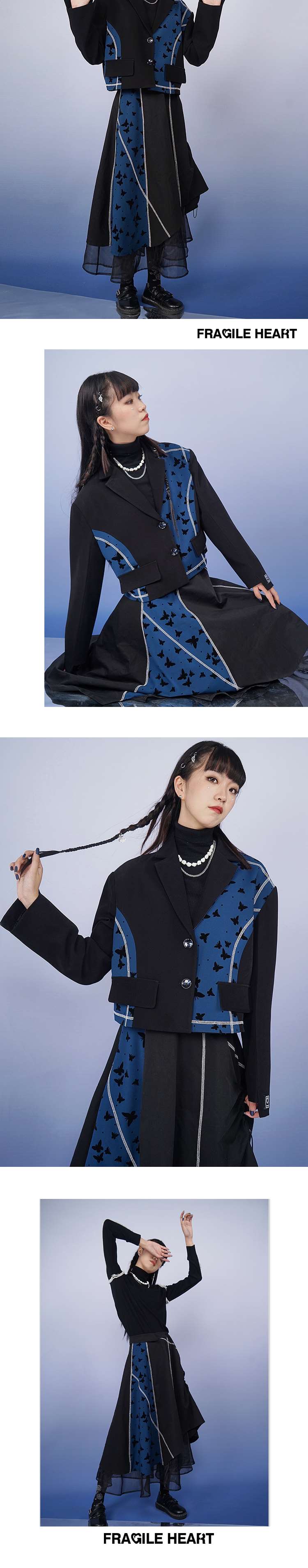 fragileheart易碎商店 蓝色蝴蝶拼接西装外套女设计感小众半身裙