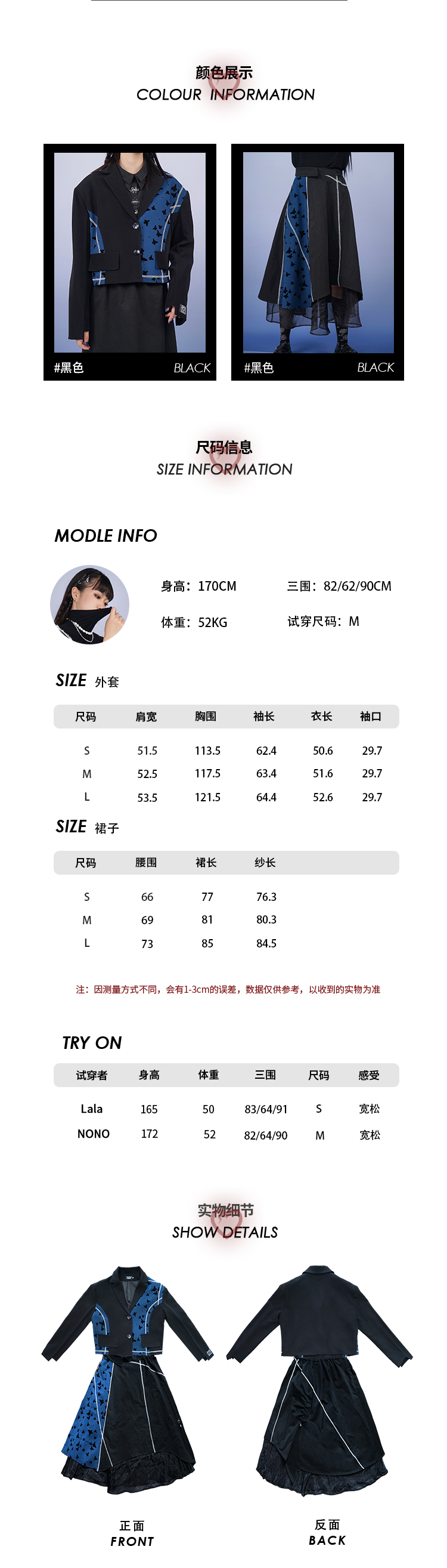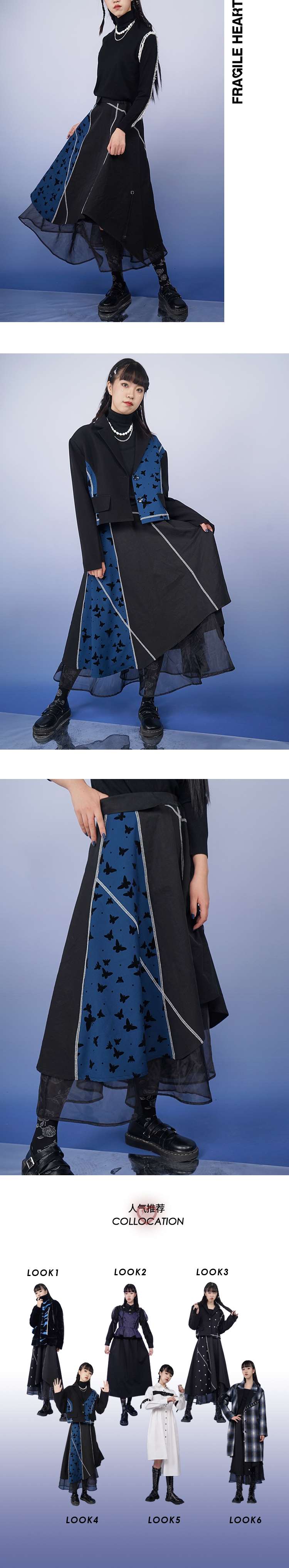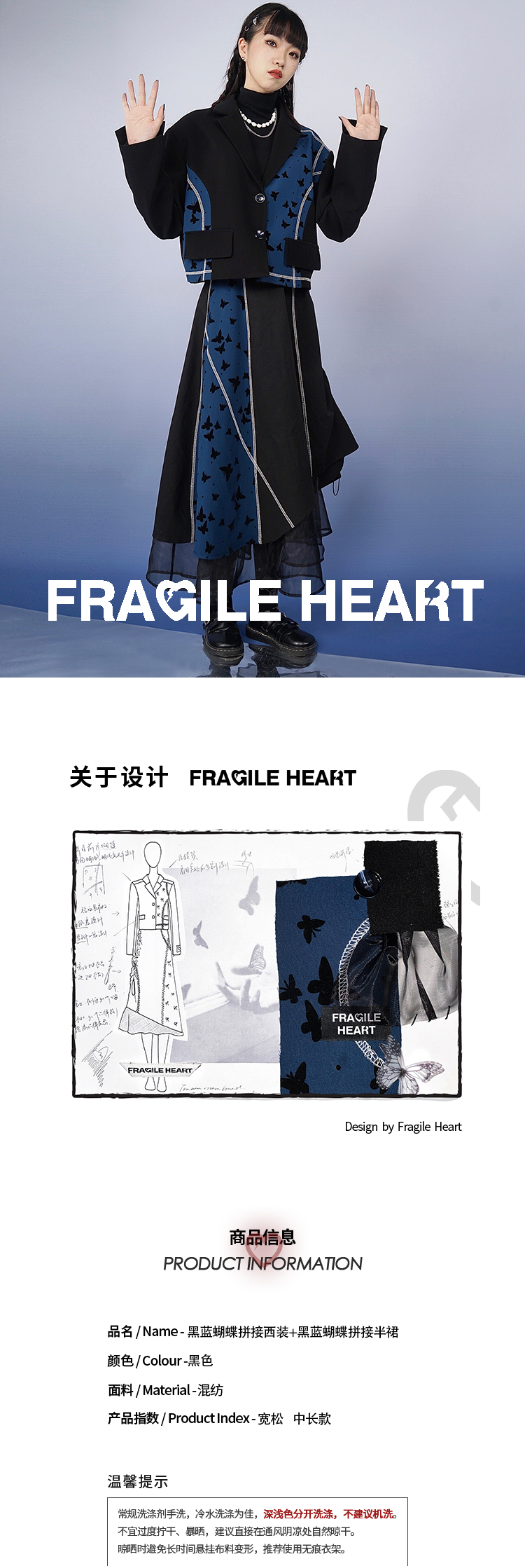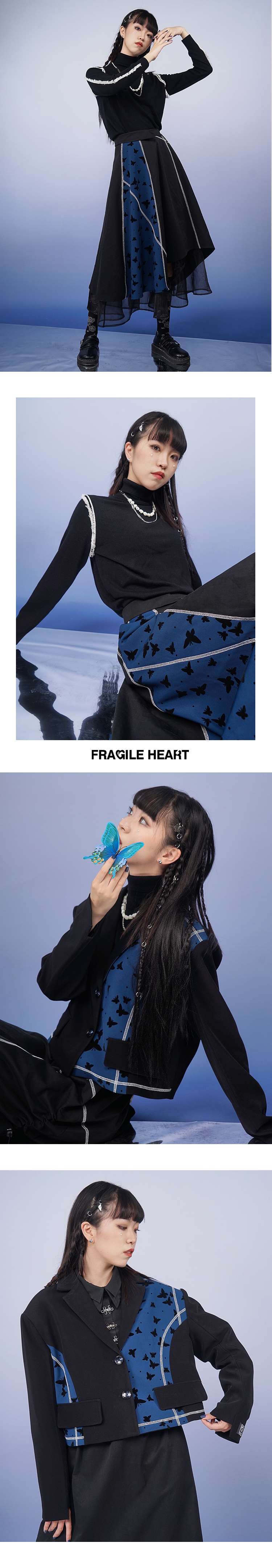 fragileheart易碎商店 蓝色蝴蝶拼接西装外套女设计感小众半身裙