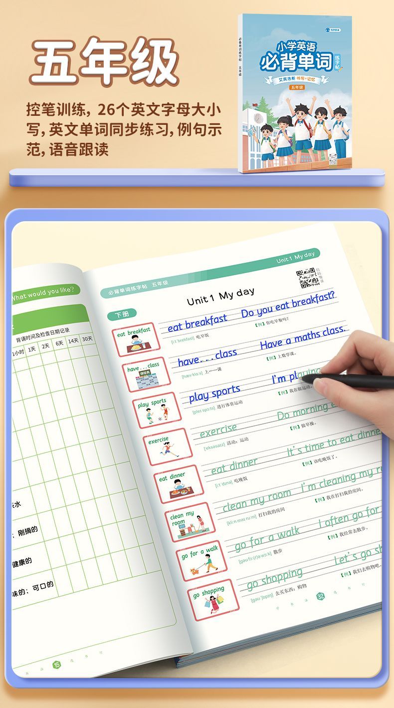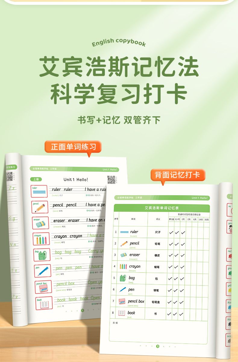 (老会员)小学英语必背单词练字帖同步课本边写边记艾宾浩斯记忆法加强记忆二三四五六年级
