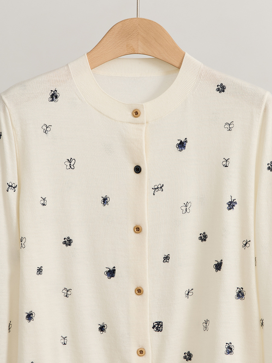 经典圆领针织长袖开衫