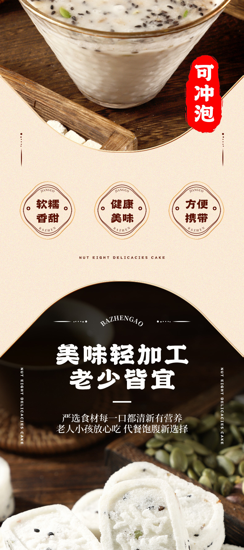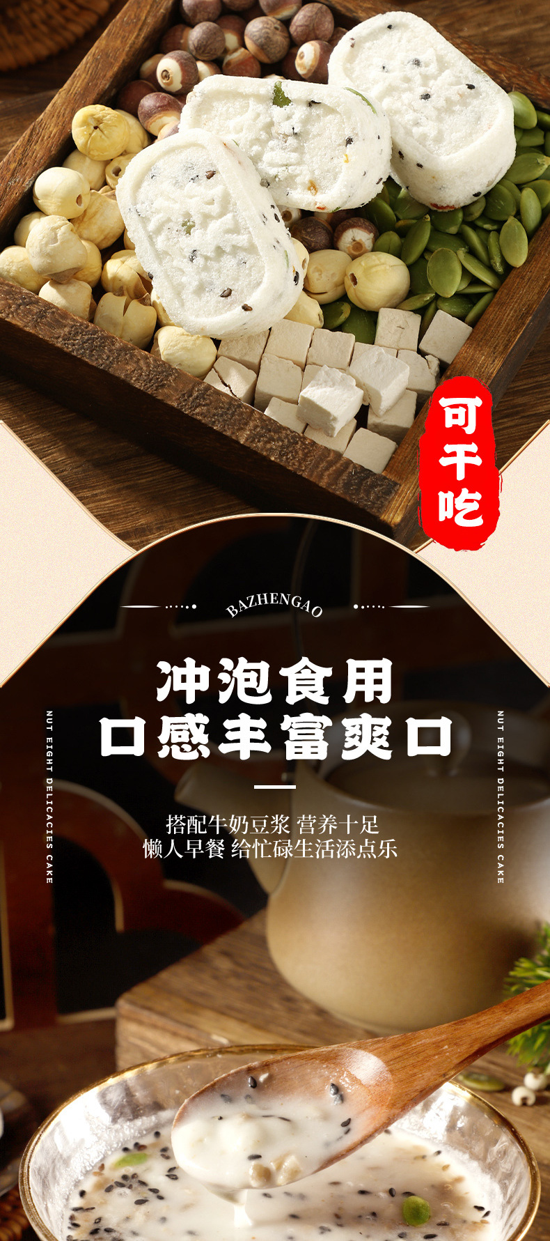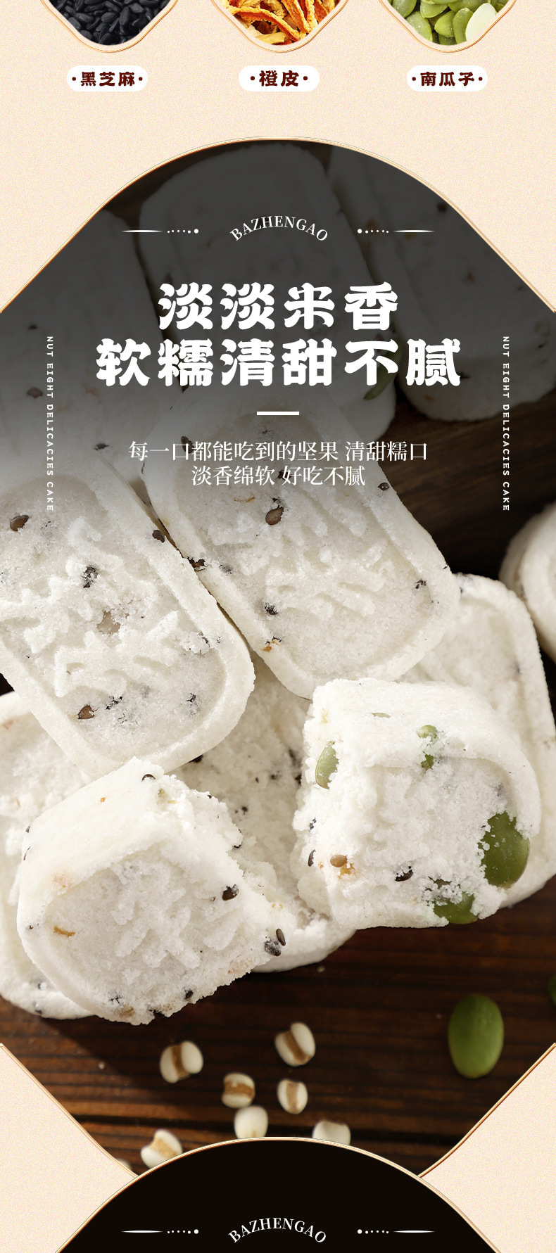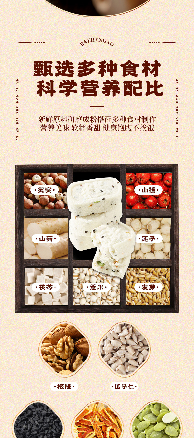 【9.9抢整箱❗️坚果茯苓八珍糕】甄选芡实 山楂 山药 莲子 茯苓 薏米 麦芽 核祧 瓜子仁 黑芝麻 橙皮 南瓜子等,健康饱腹网红无蔗糖芡实糕代餐早餐糕点零食食品整箱