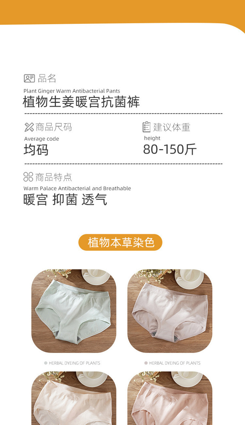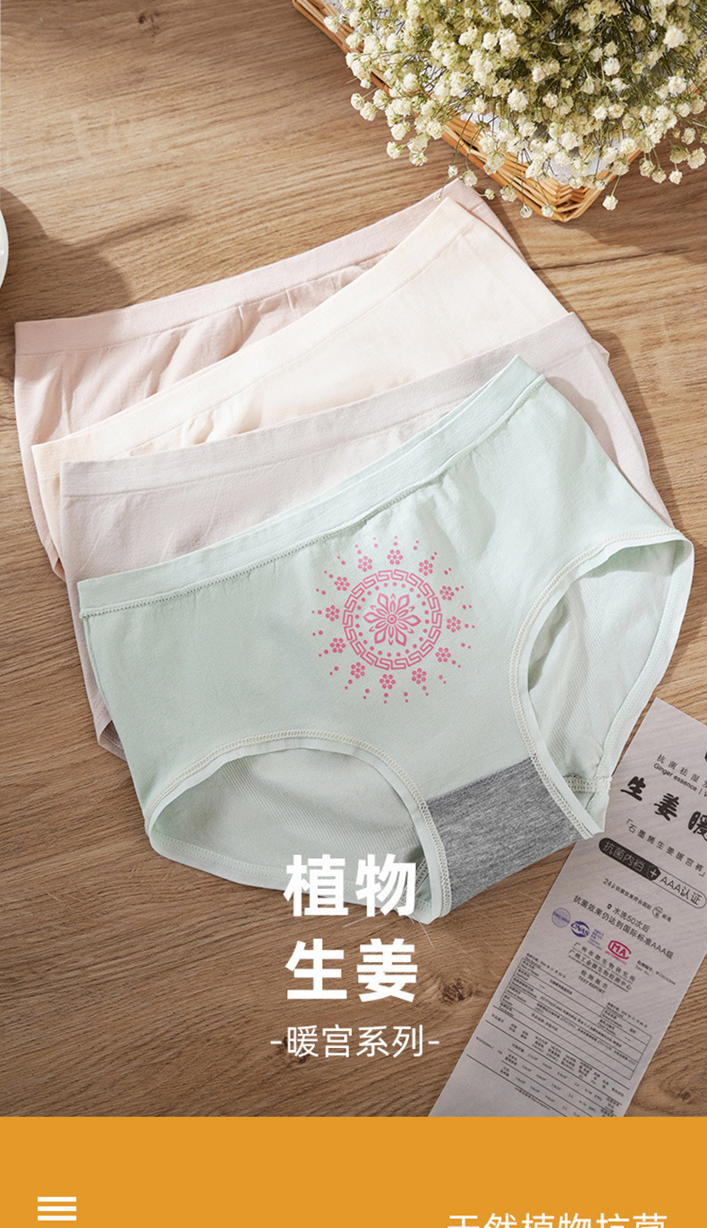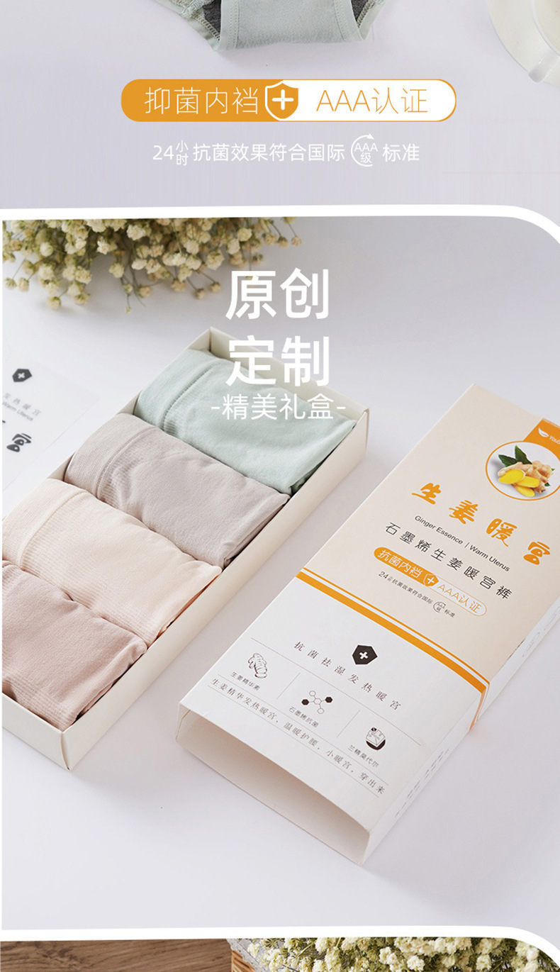 石墨烯生姜暖.宫裤3A抗菌无缝内裤女中腰透气女士三角裤盒装