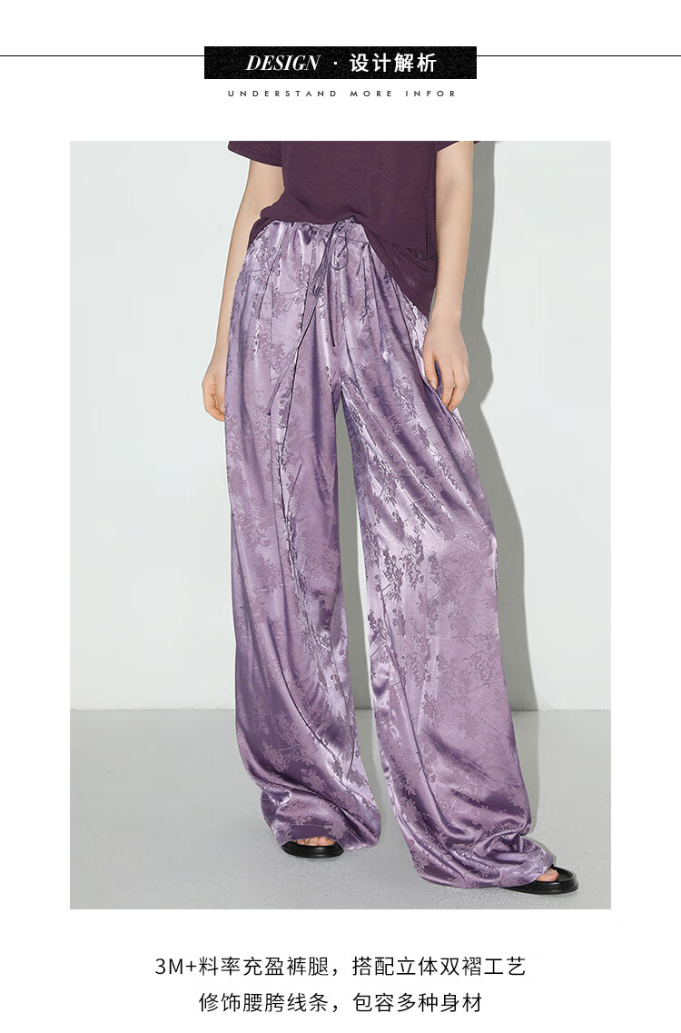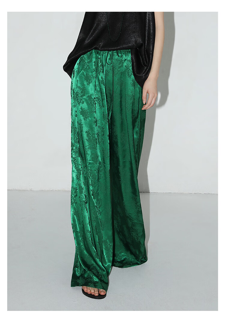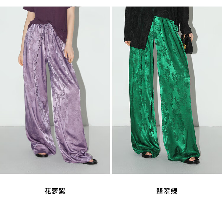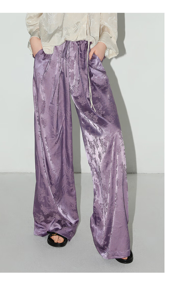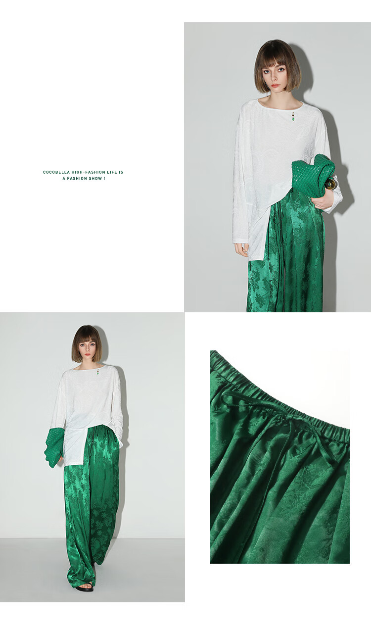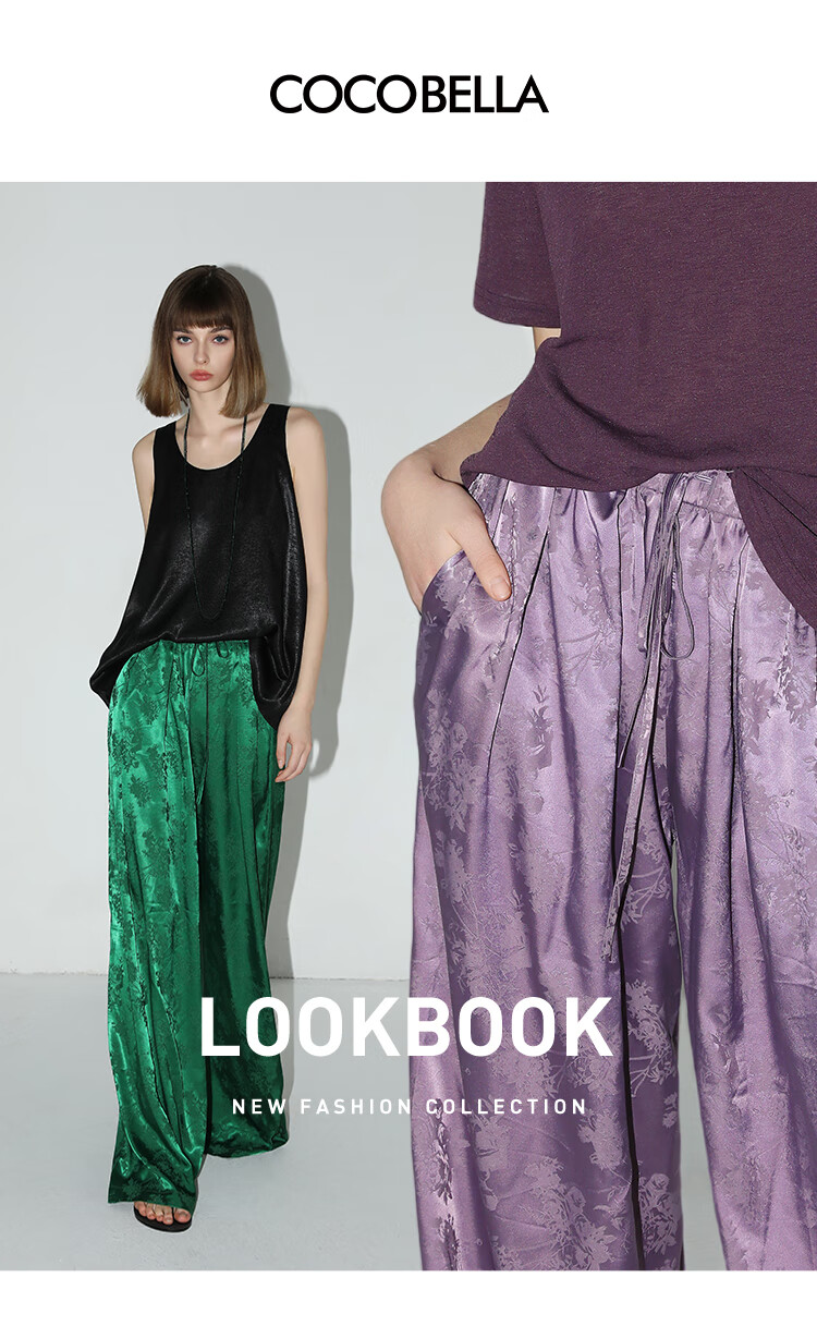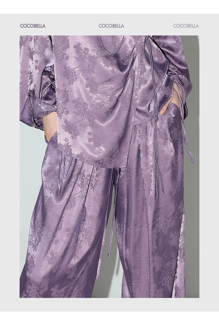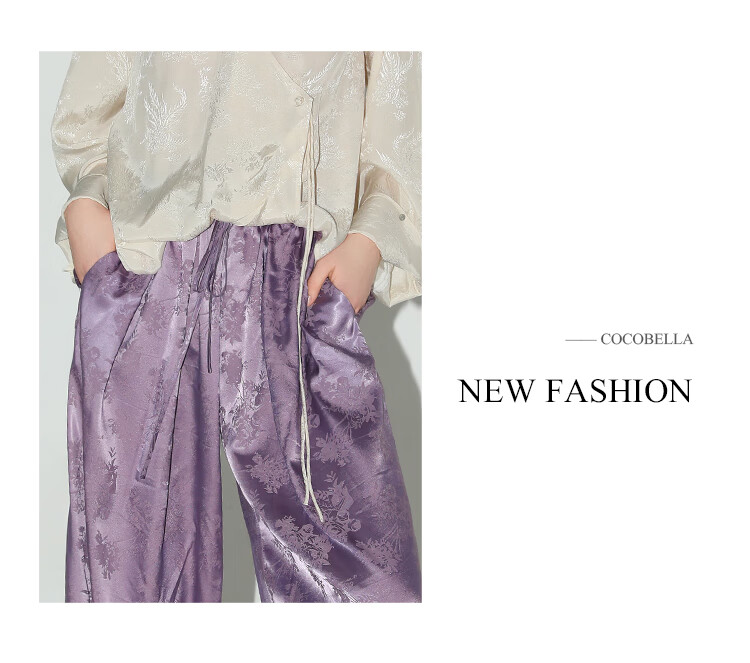 COCOBELLA新中式暗纹提花光泽缎面垂坠阔腿裤夏休闲裤PA3026-3
