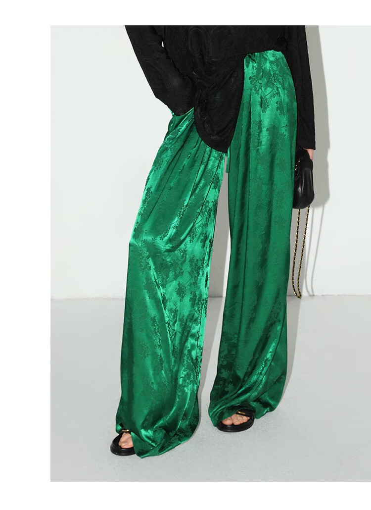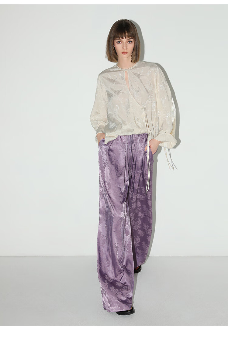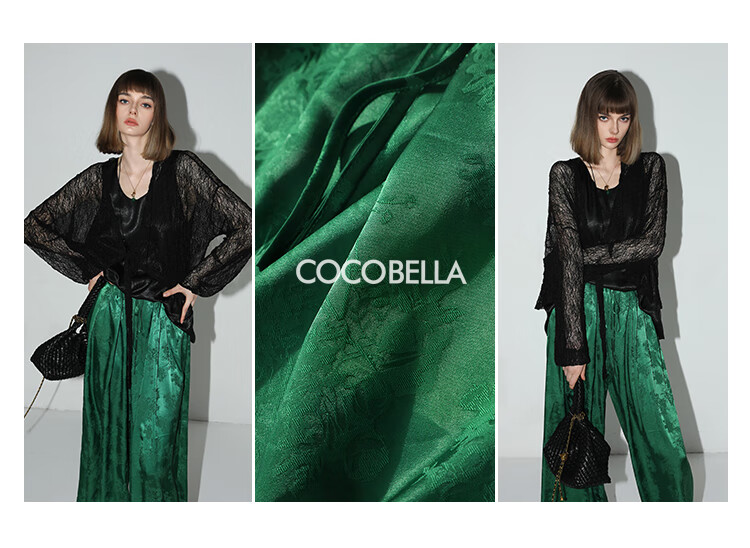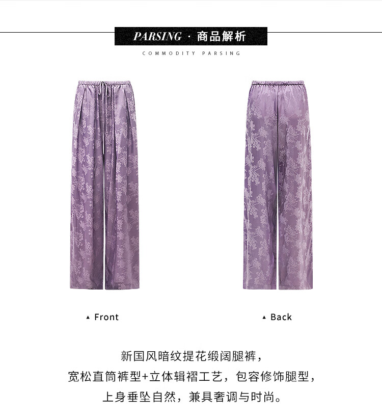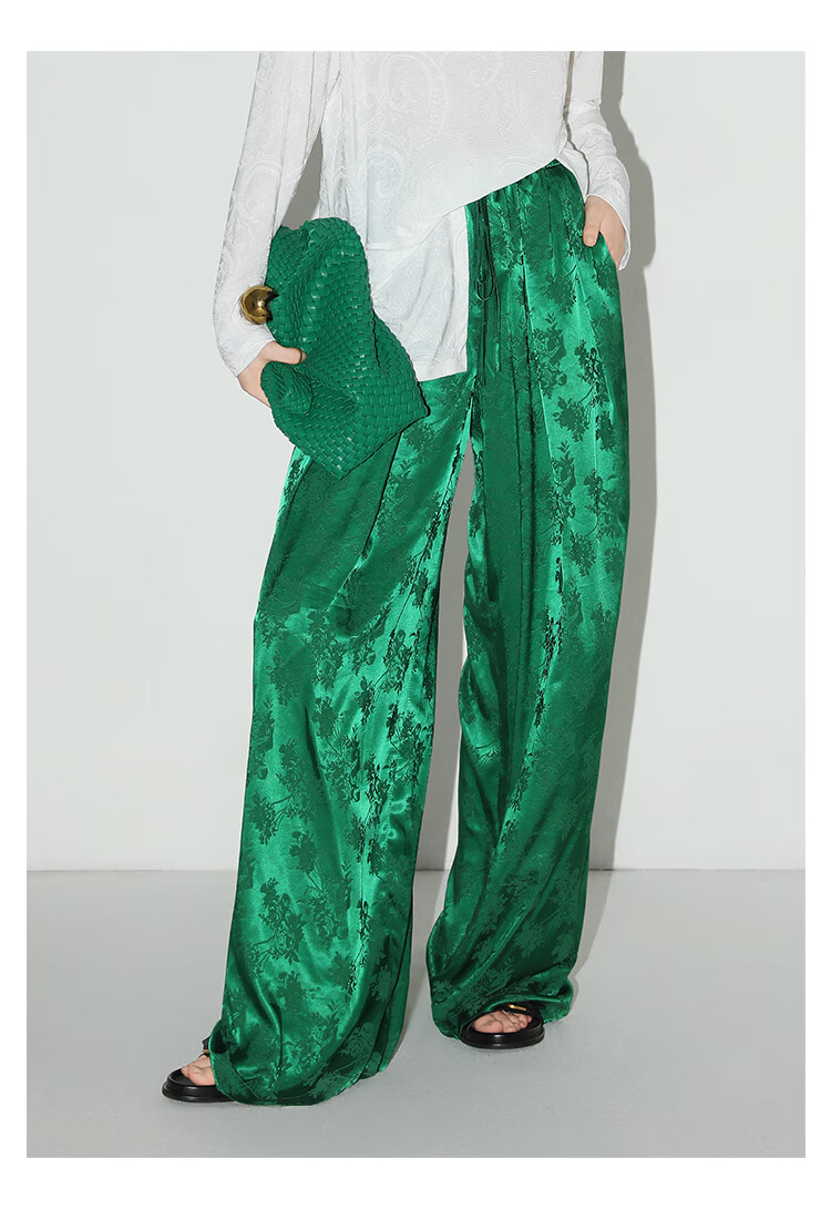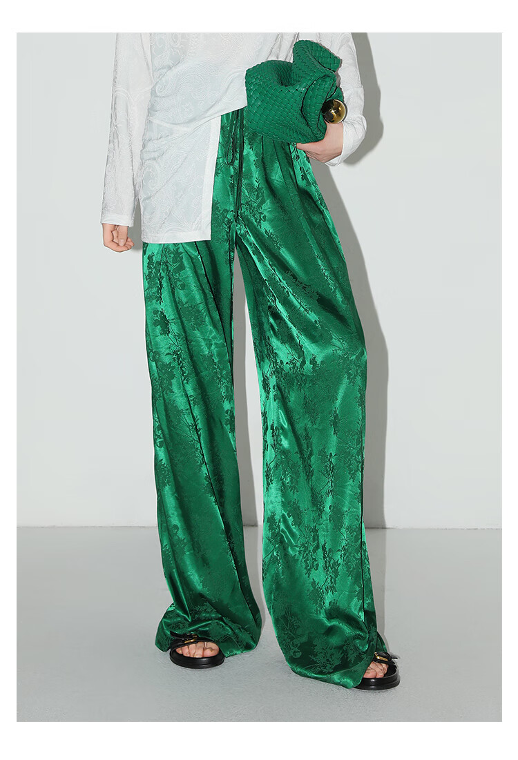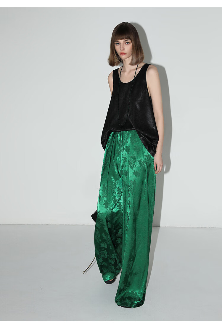 COCOBELLA新中式暗纹提花光泽缎面垂坠阔腿裤夏休闲裤PA3026-3