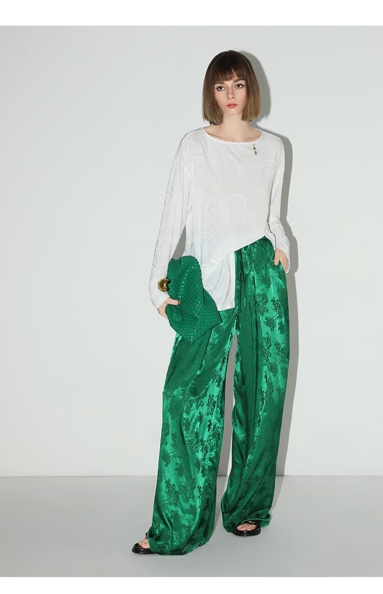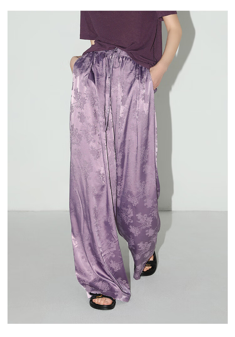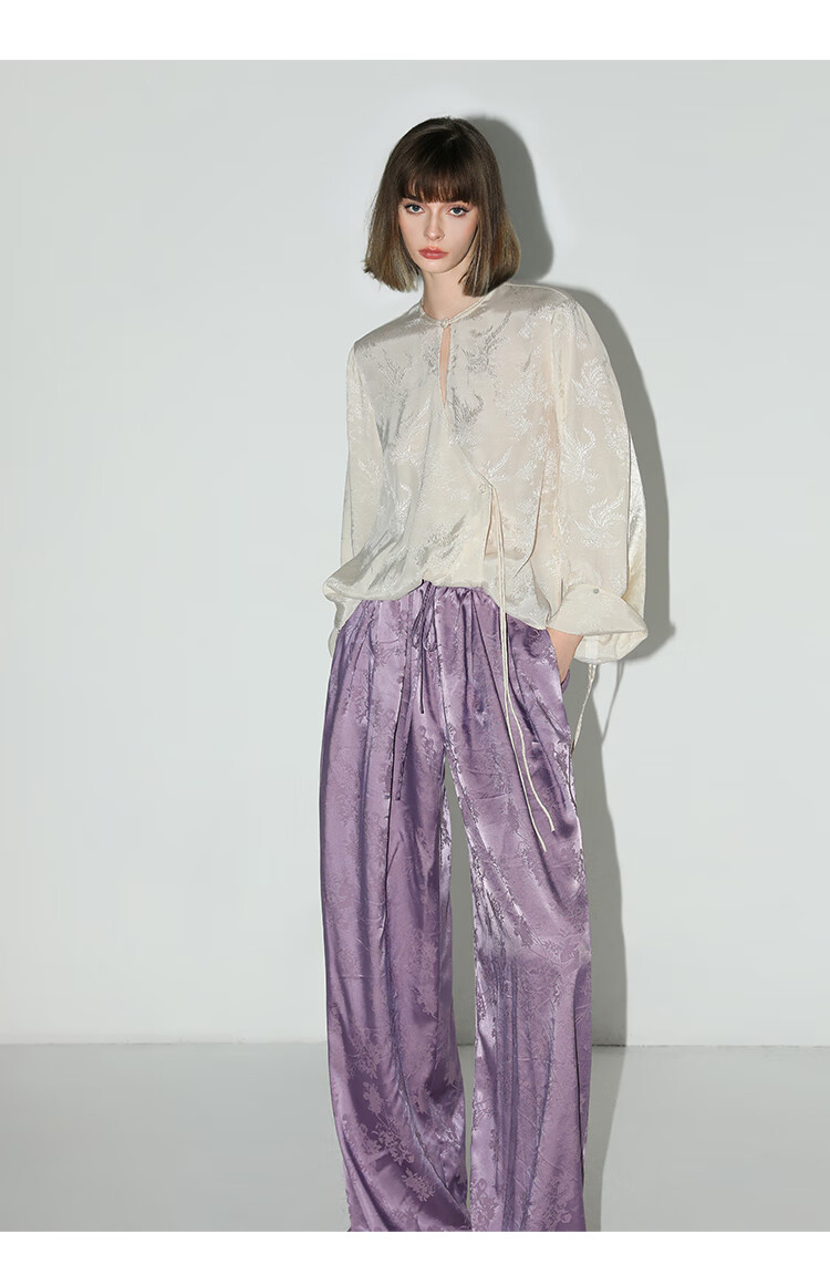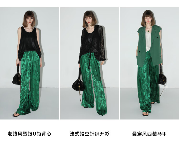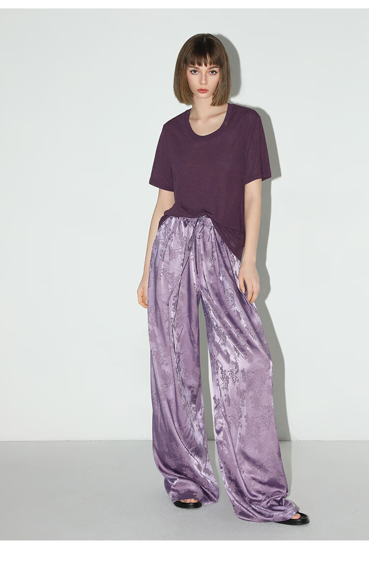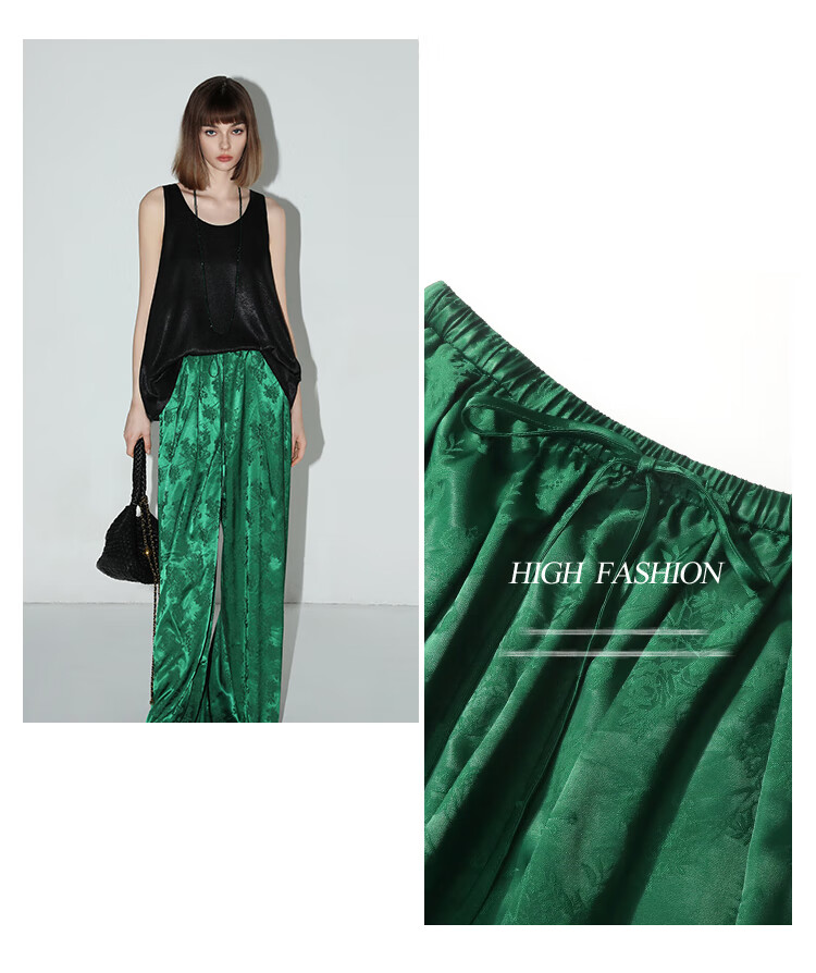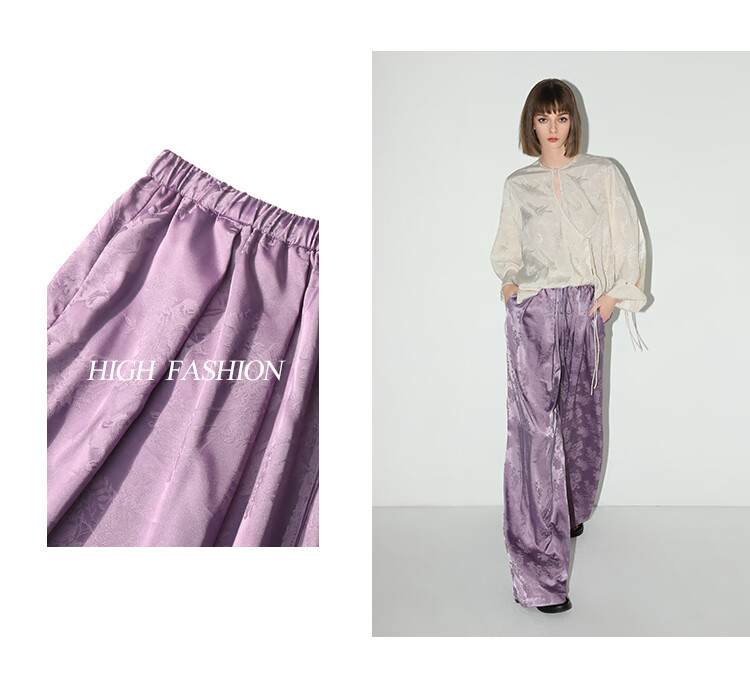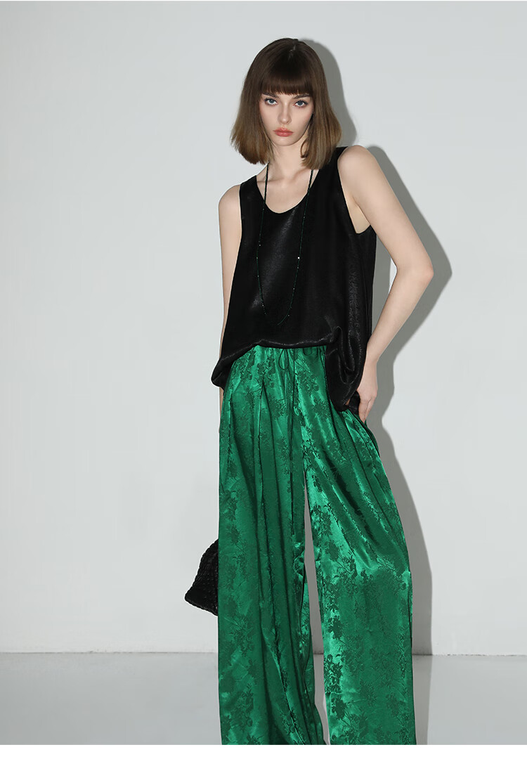 COCOBELLA新中式暗纹提花光泽缎面垂坠阔腿裤夏休闲裤PA3026-3