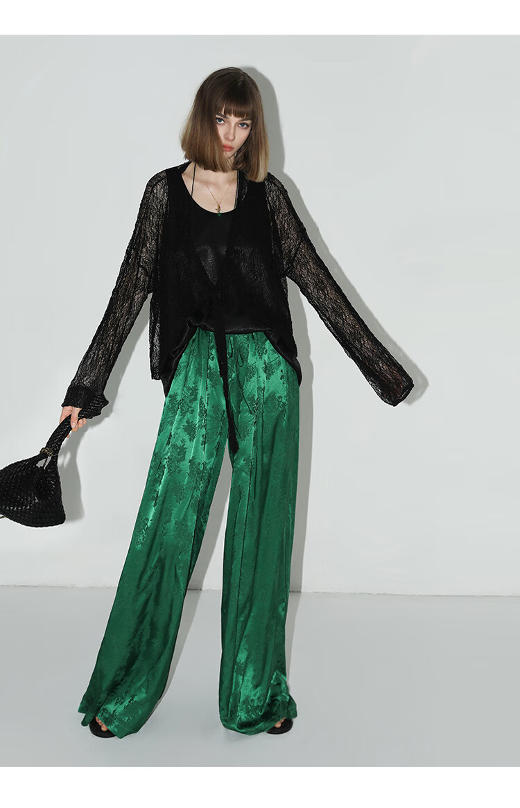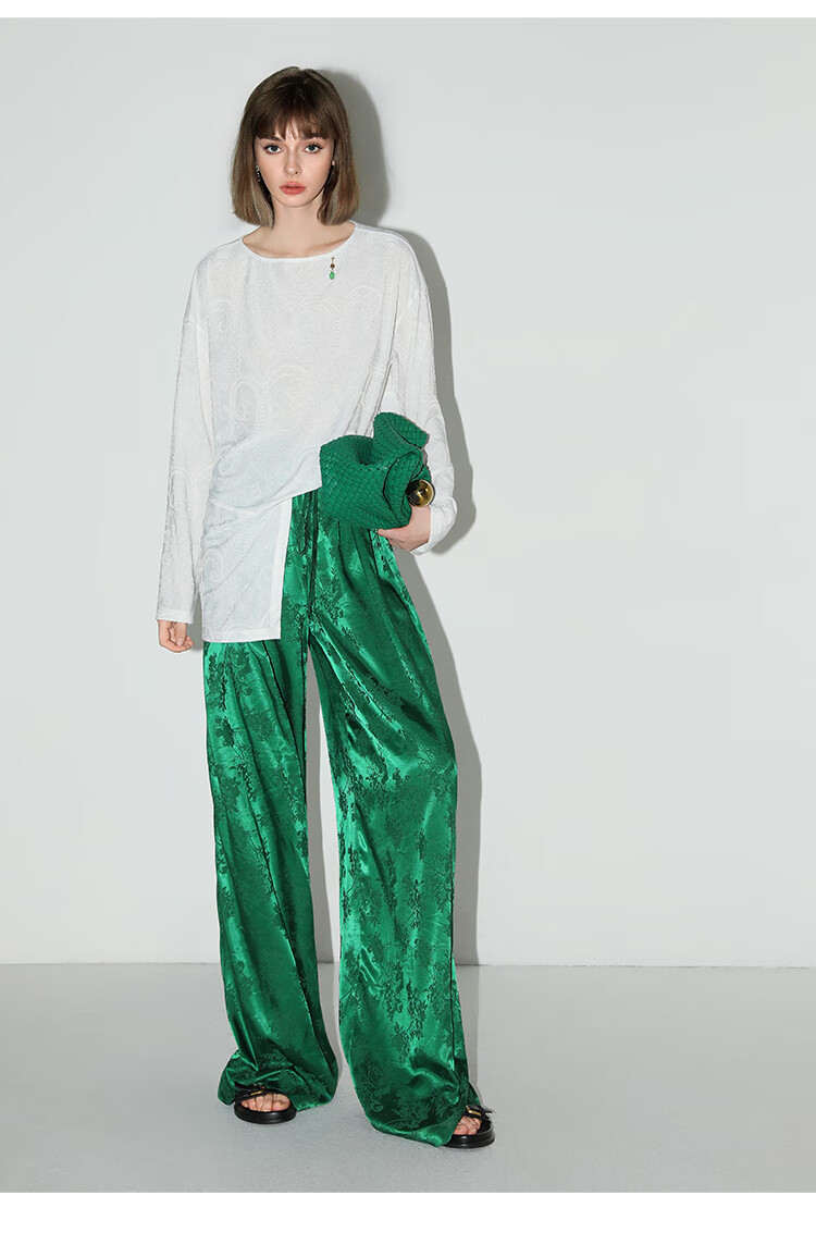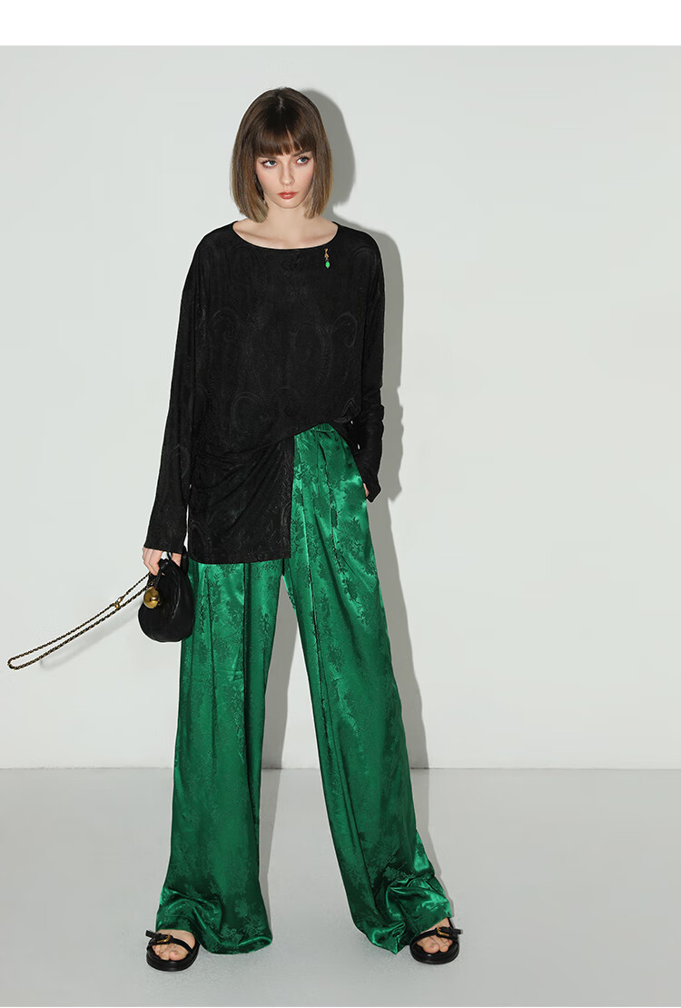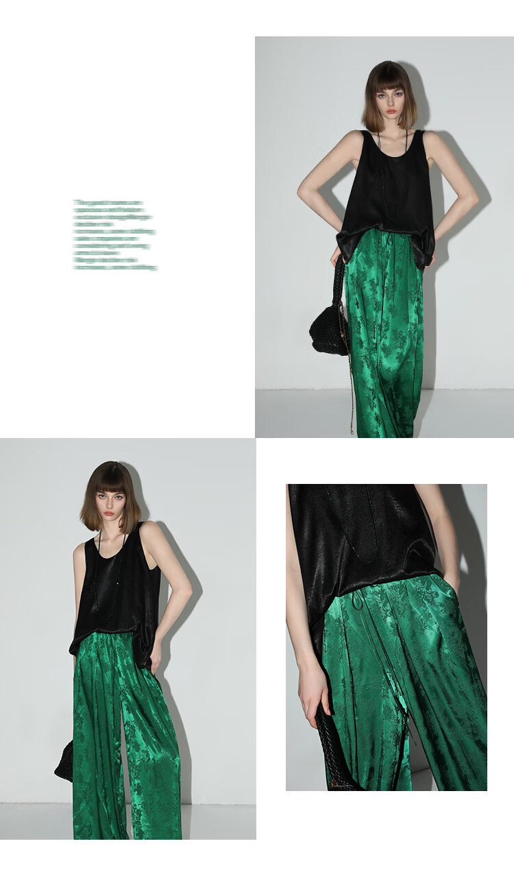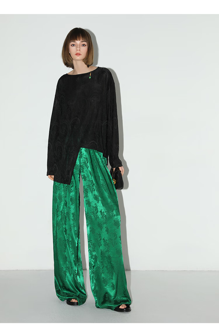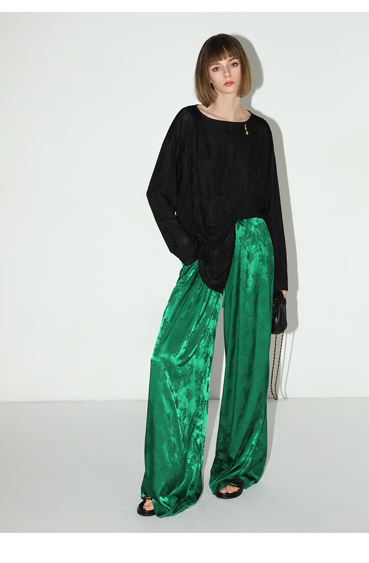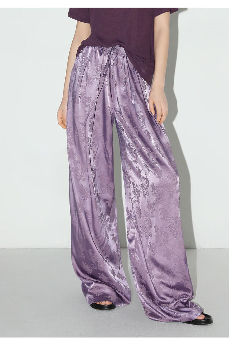 COCOBELLA新中式暗纹提花光泽缎面垂坠阔腿裤夏休闲裤PA3026-3