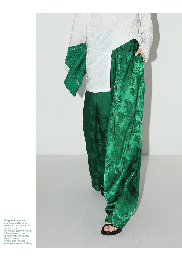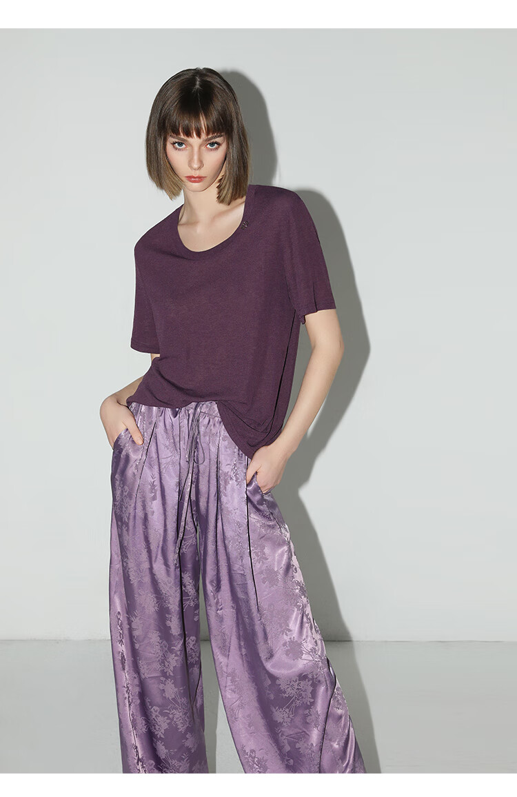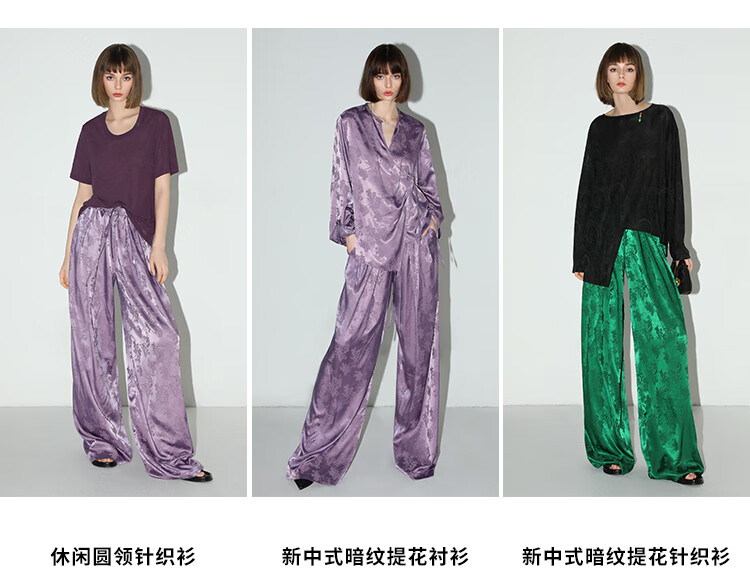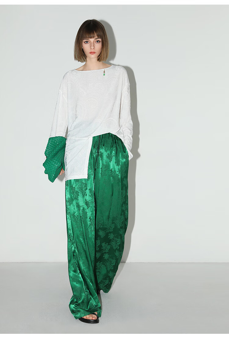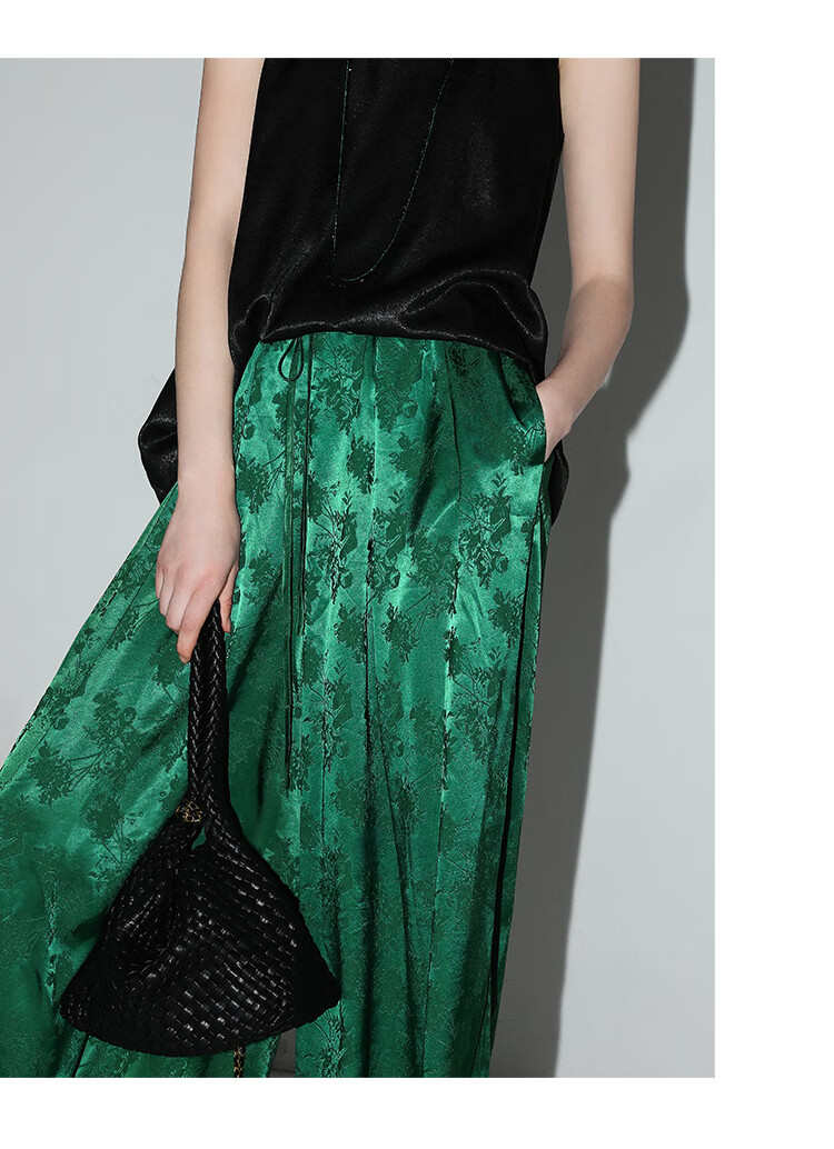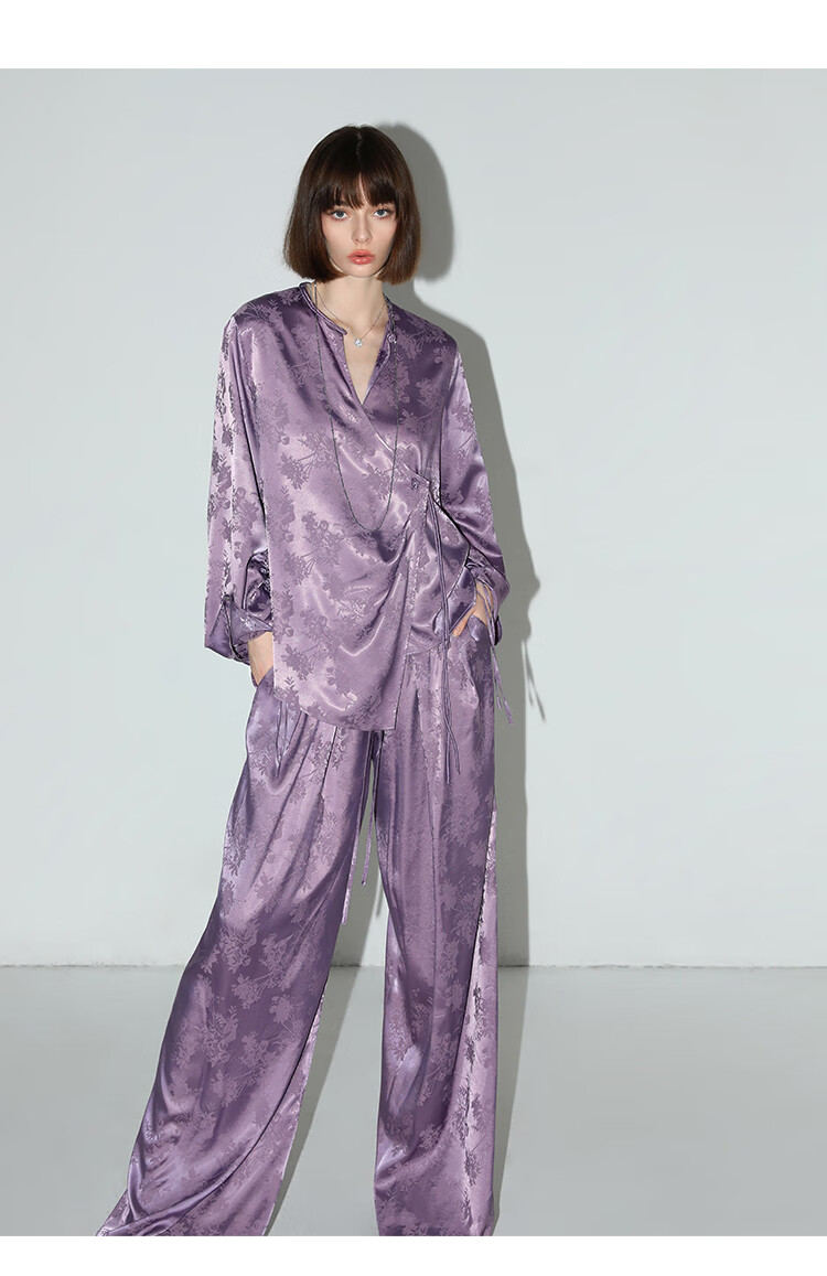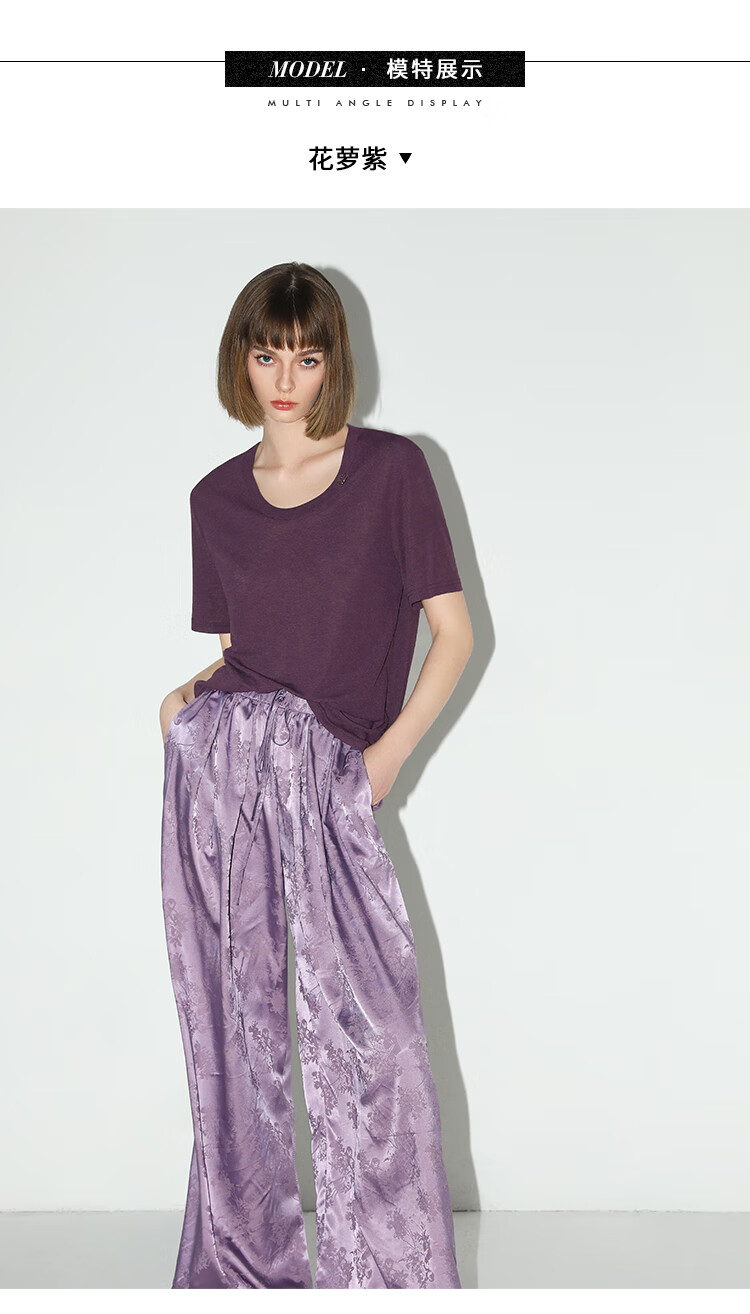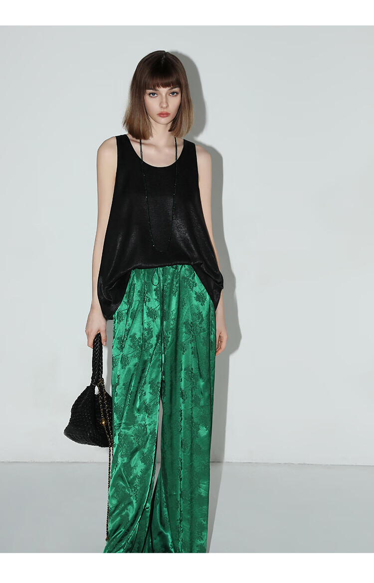 COCOBELLA新中式暗纹提花光泽缎面垂坠阔腿裤夏休闲裤PA3026-3