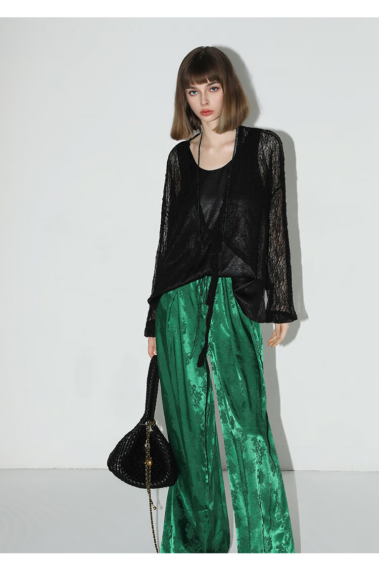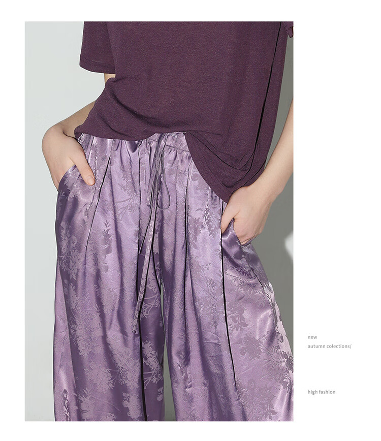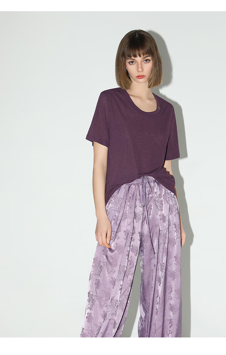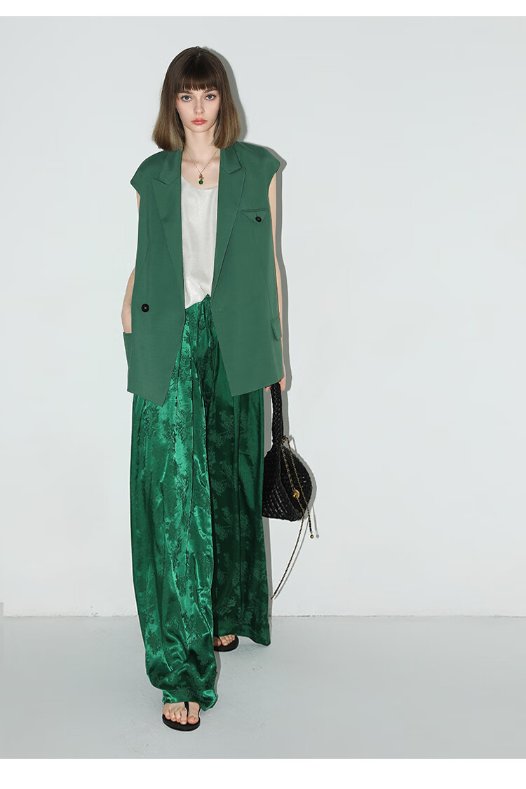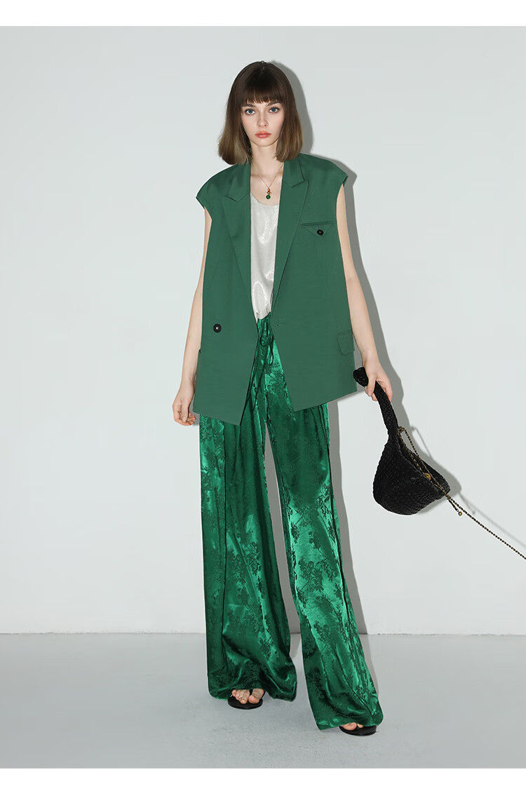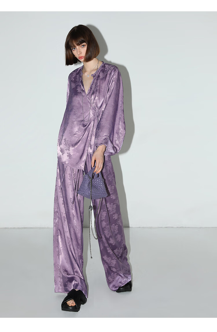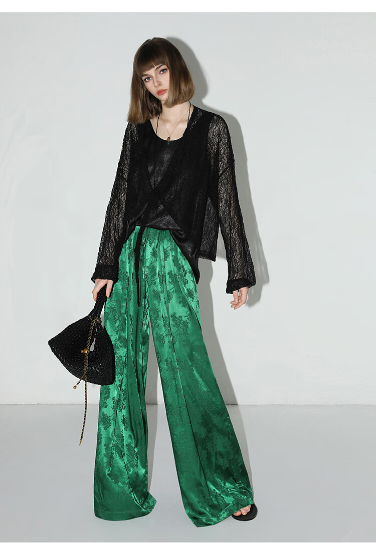 COCOBELLA新中式暗纹提花光泽缎面垂坠阔腿裤夏休闲裤PA3026-3
