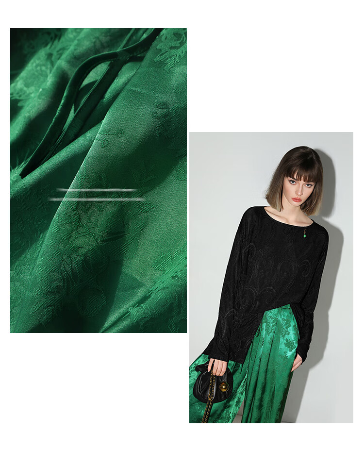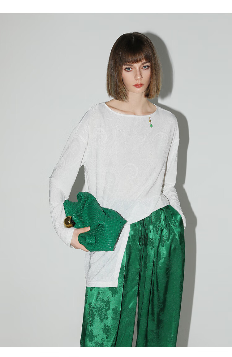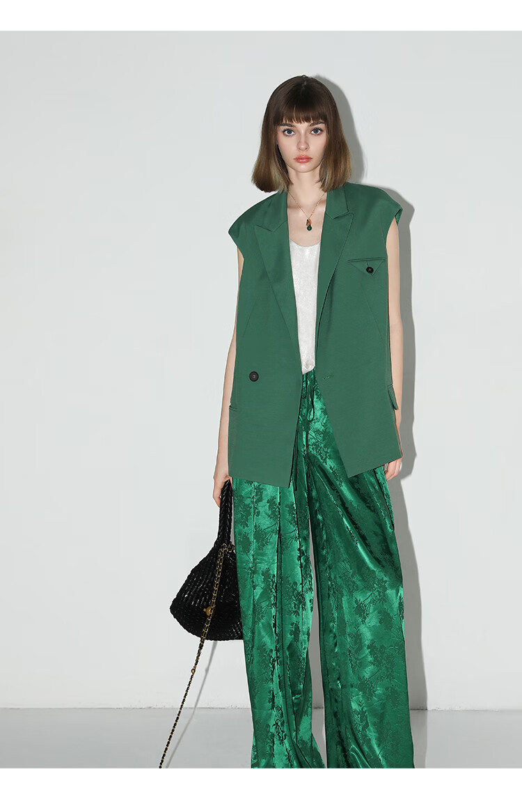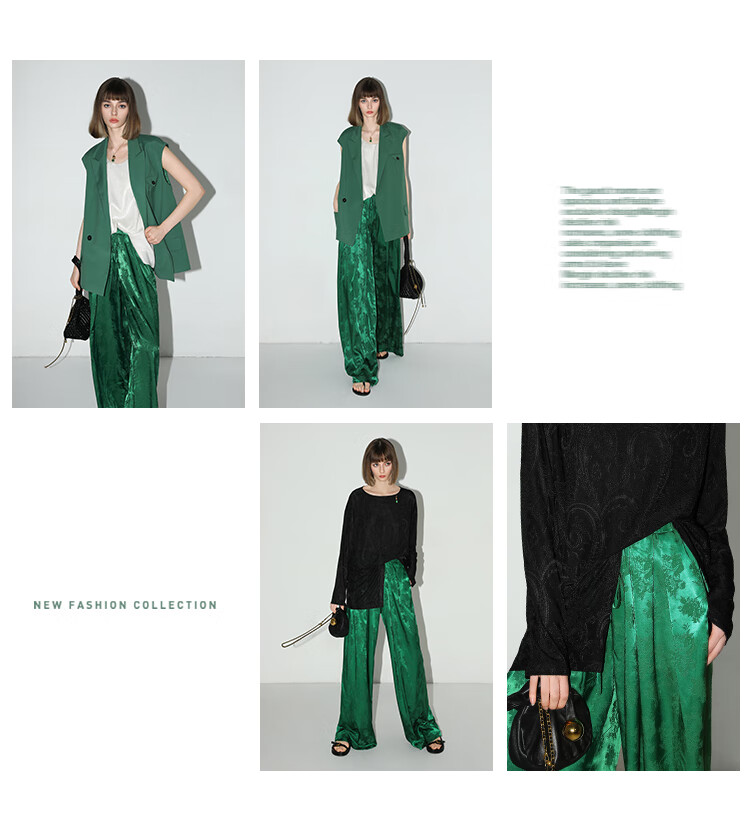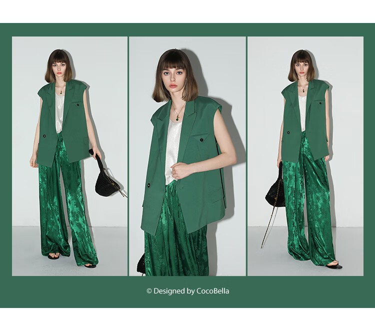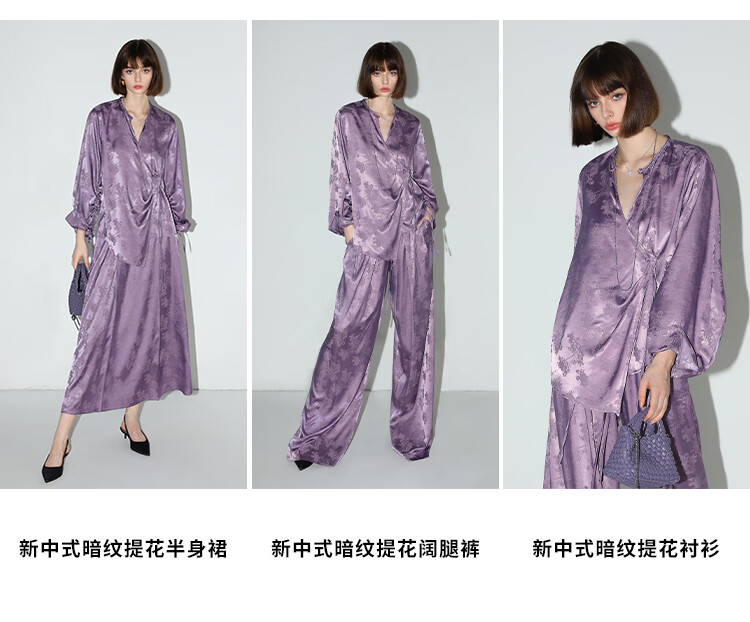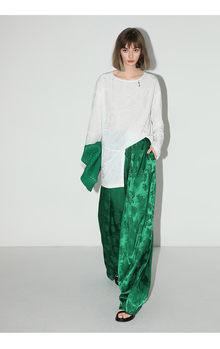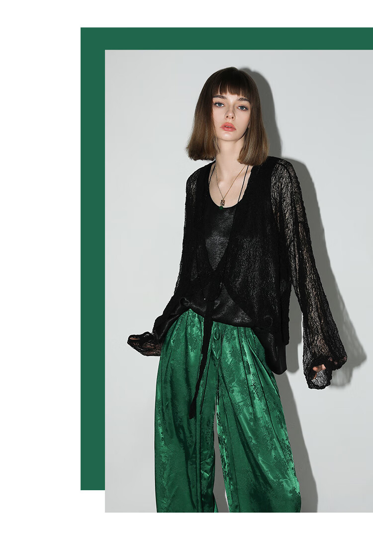 COCOBELLA新中式暗纹提花光泽缎面垂坠阔腿裤夏休闲裤PA3026-3