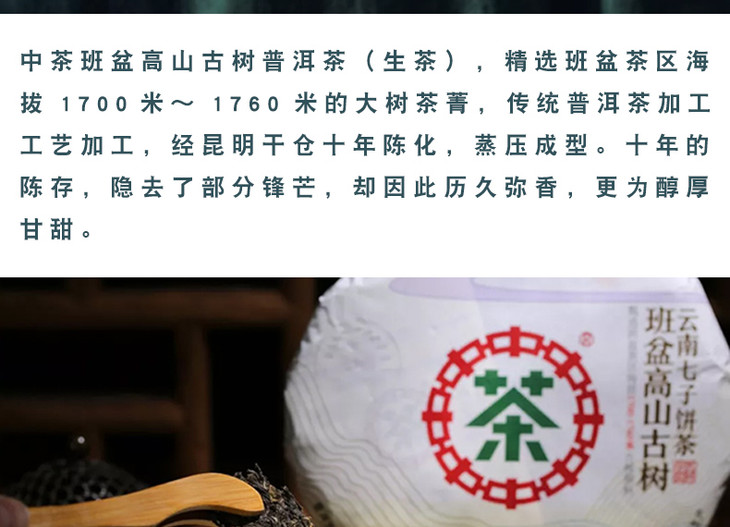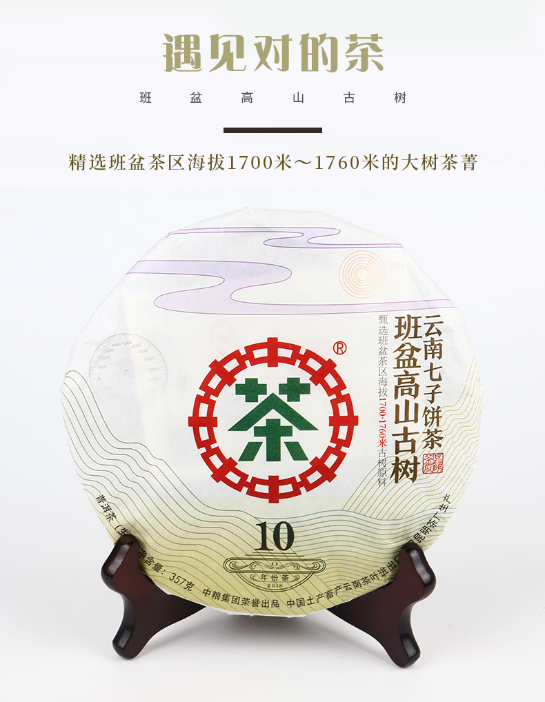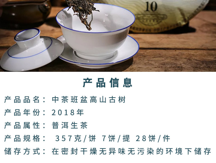 中粮-中茶2018年班盆高山古树普洱生茶357g/云南干仓直发