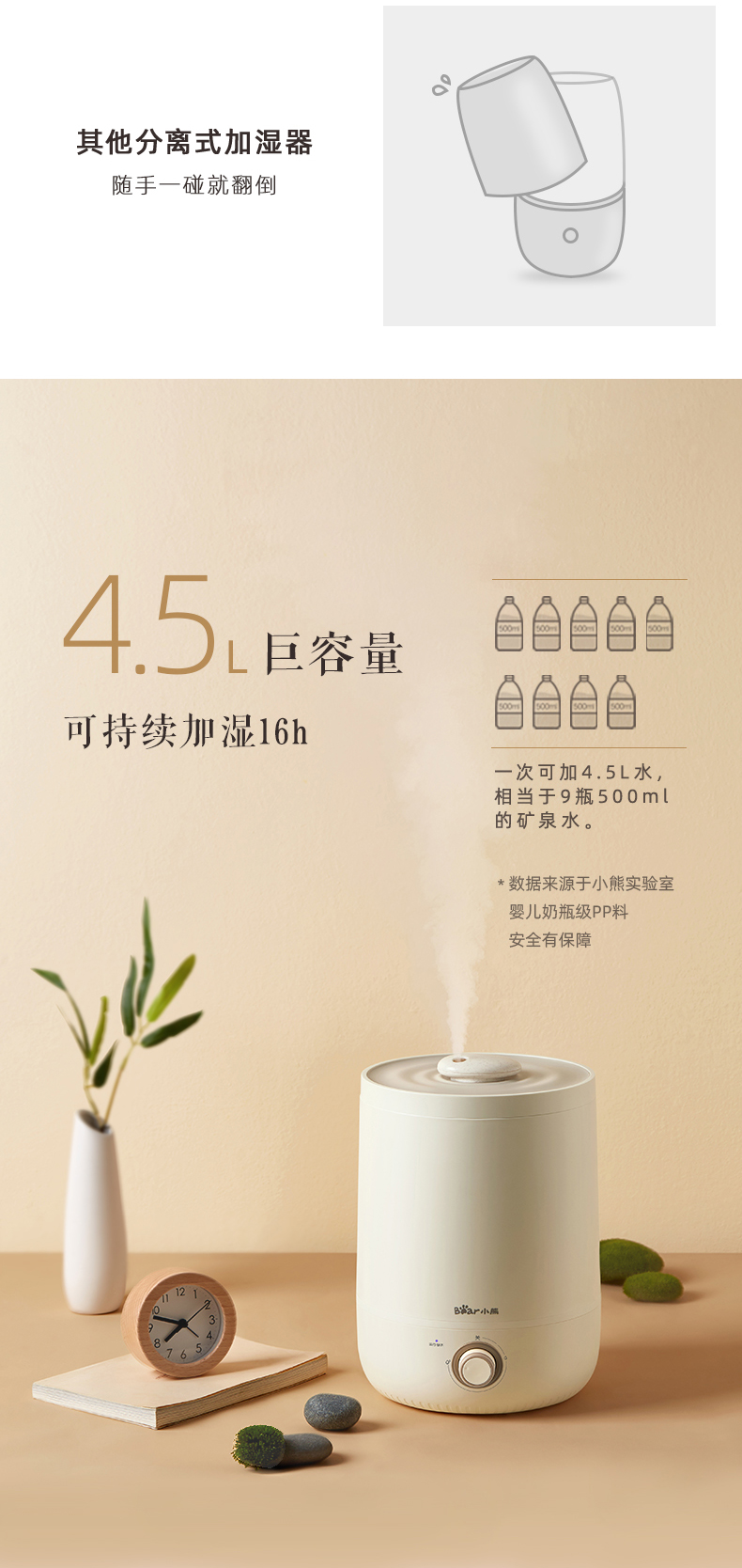 加湿器4.5升大容量小熊(Bear) 香薰加湿上加水 净化空气加湿静音 卧室婴儿客厅办公室可用 JSQ-C45U1