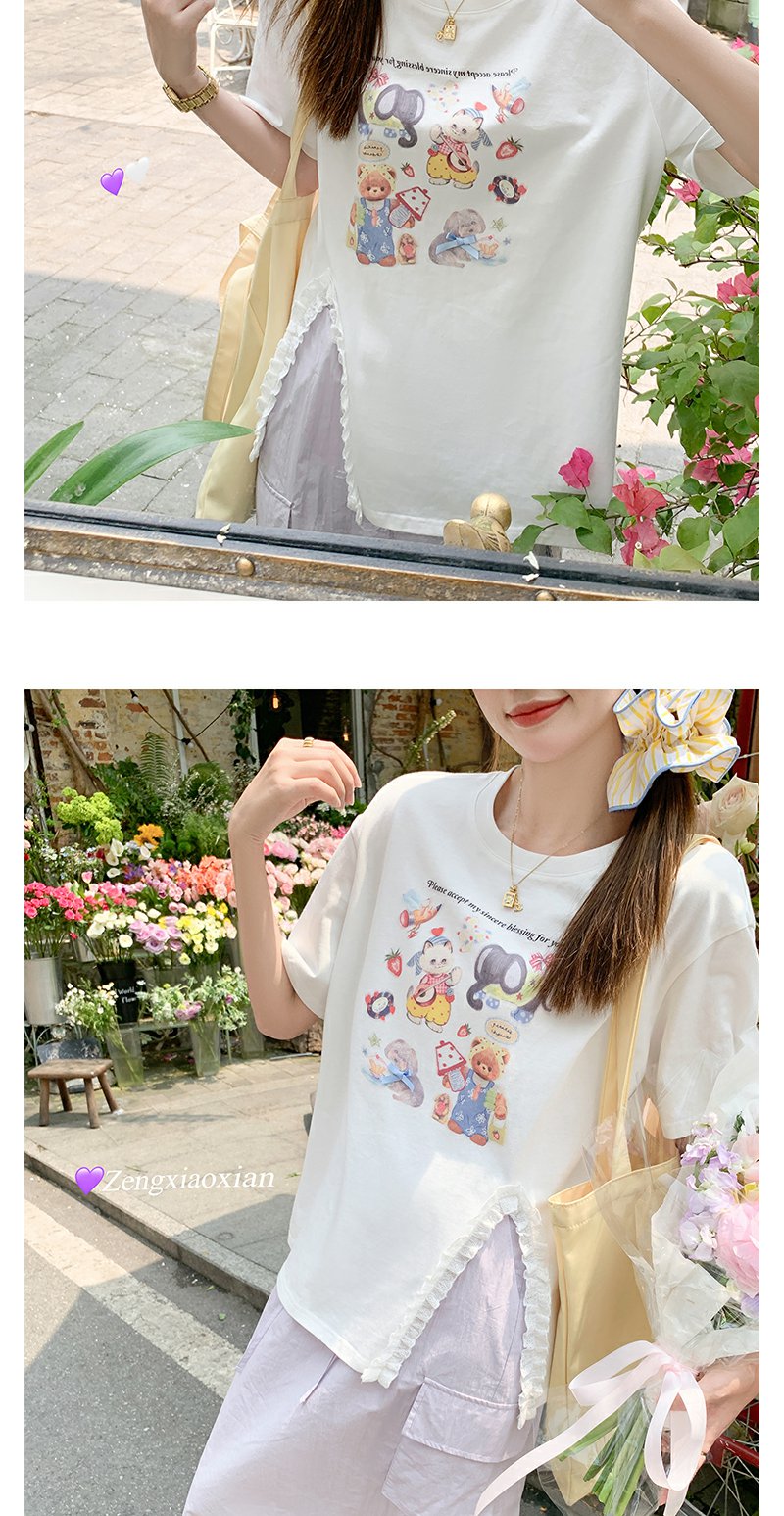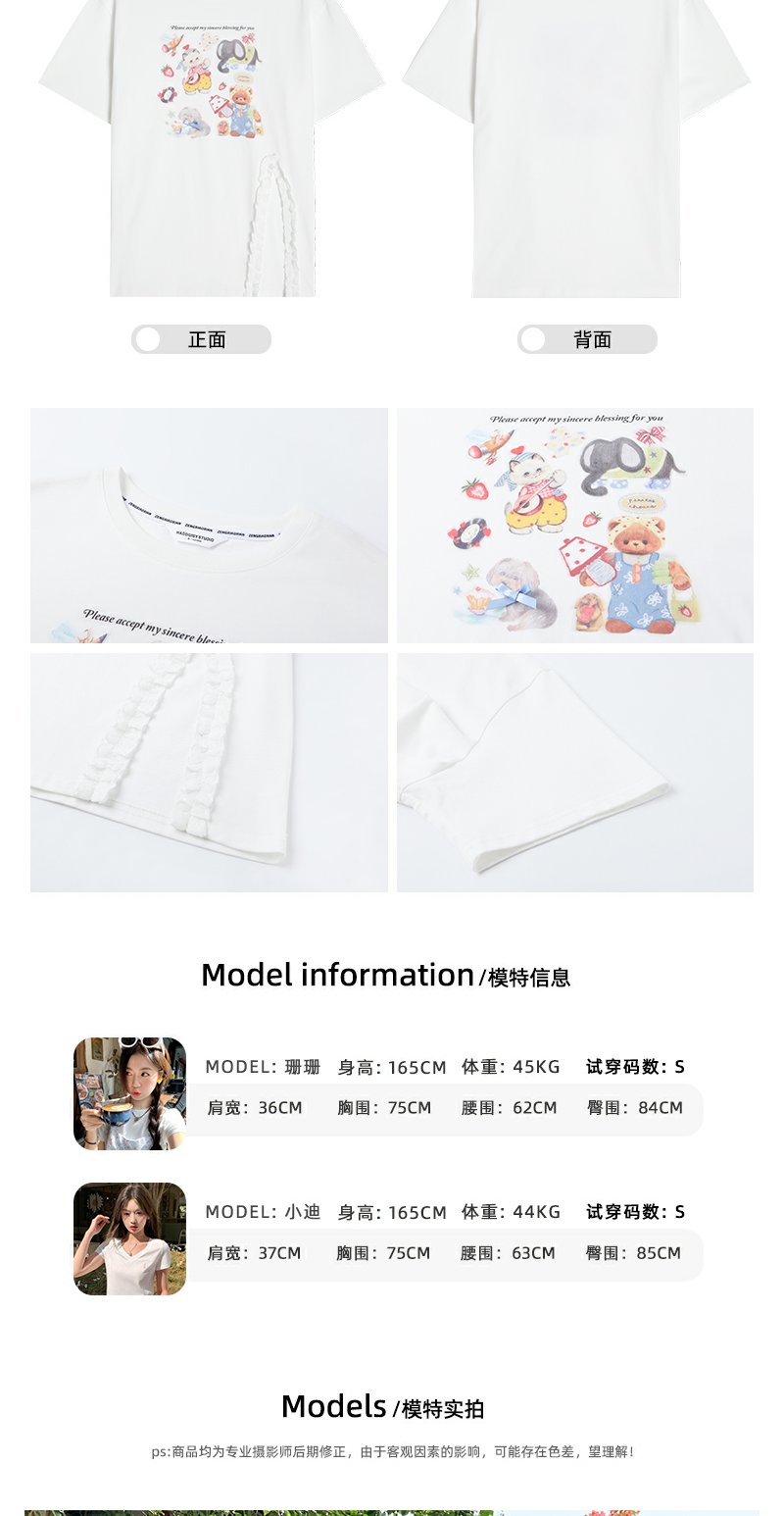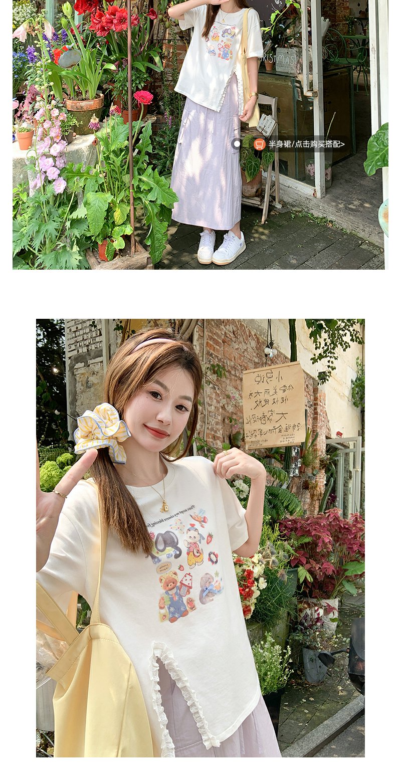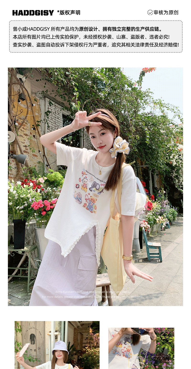 <曾小咸推荐>可爱卡通印花开叉圆领短袖T恤