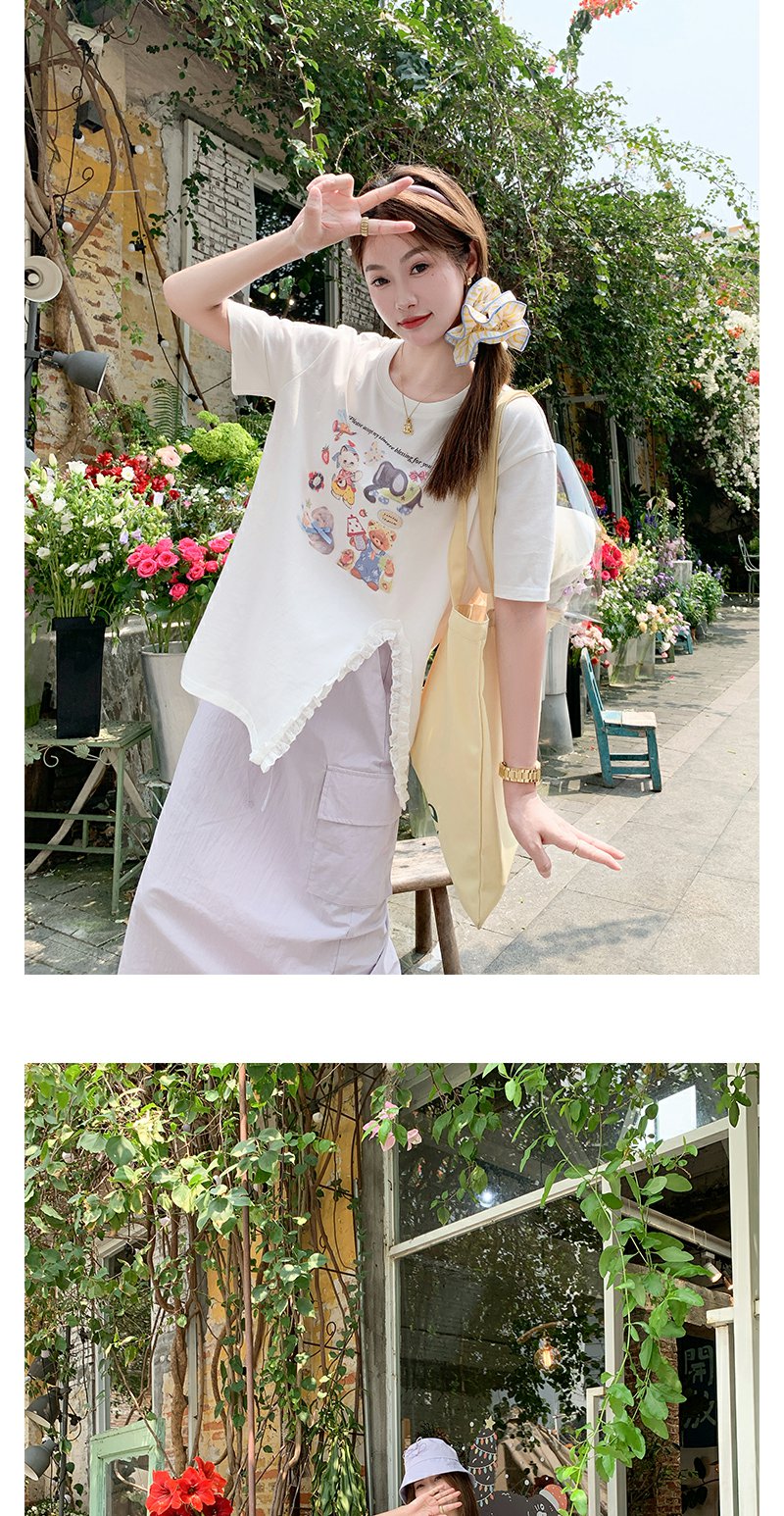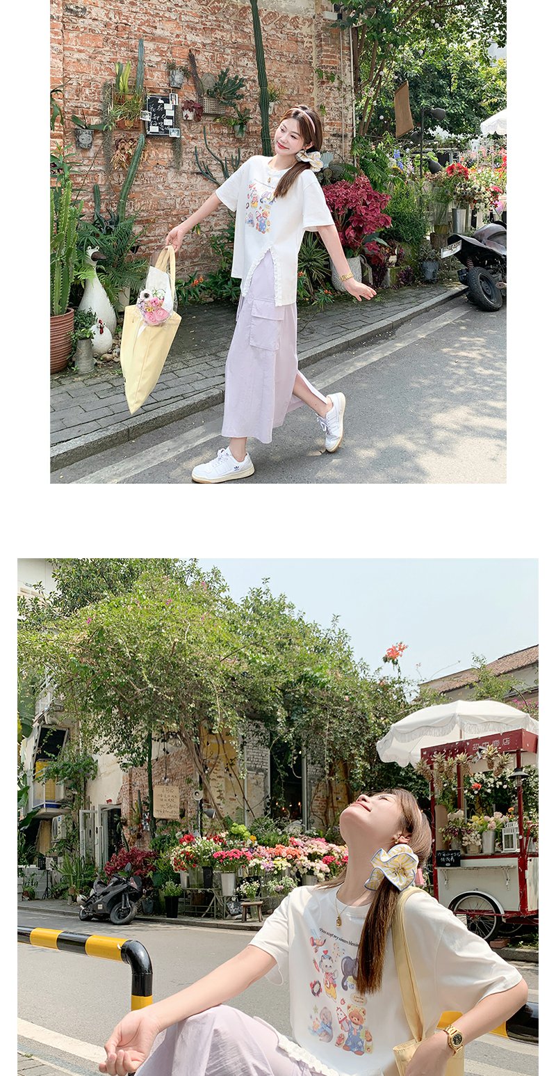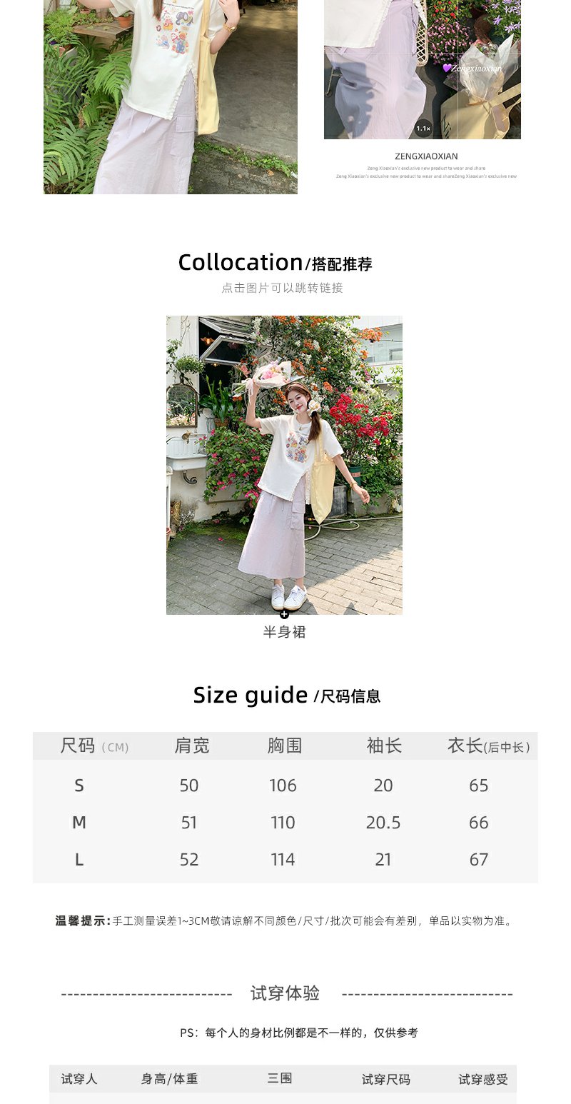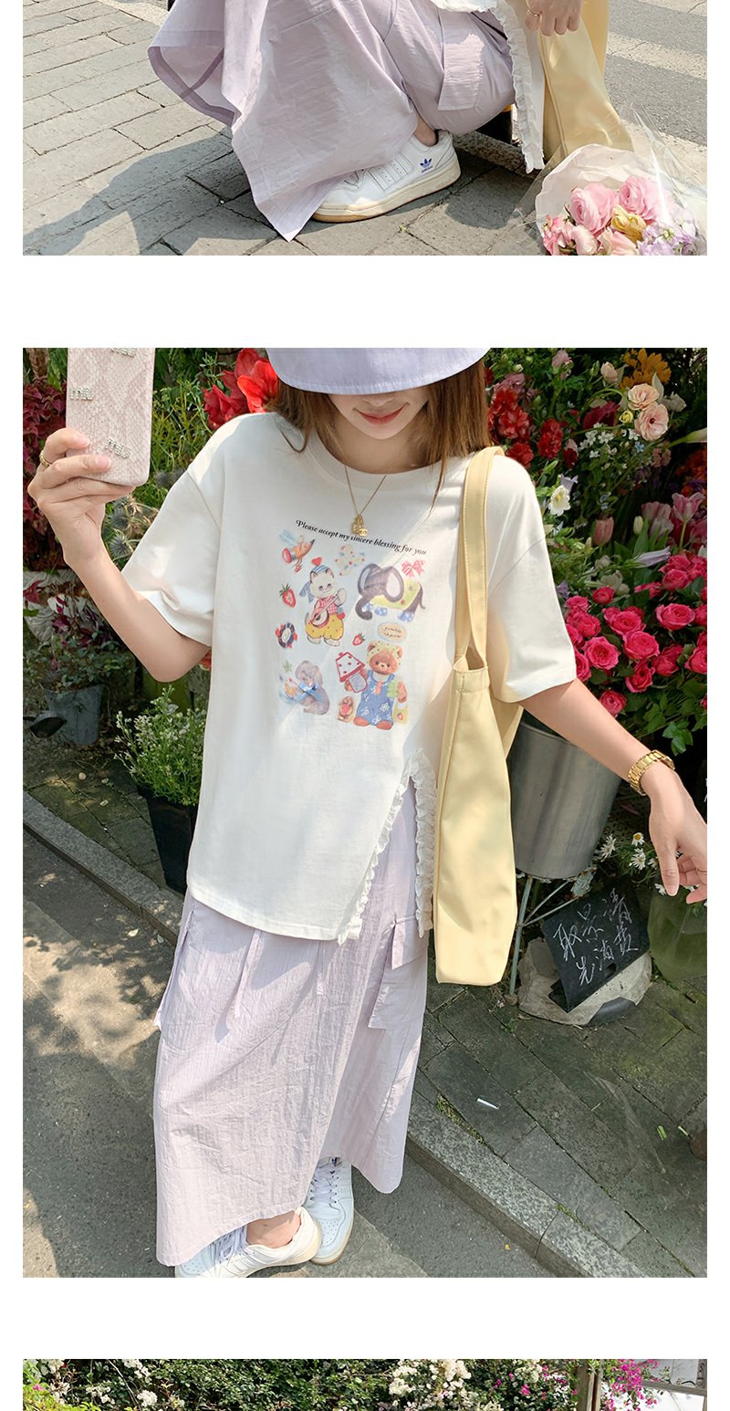 <曾小咸推荐>可爱卡通印花开叉圆领短袖T恤
