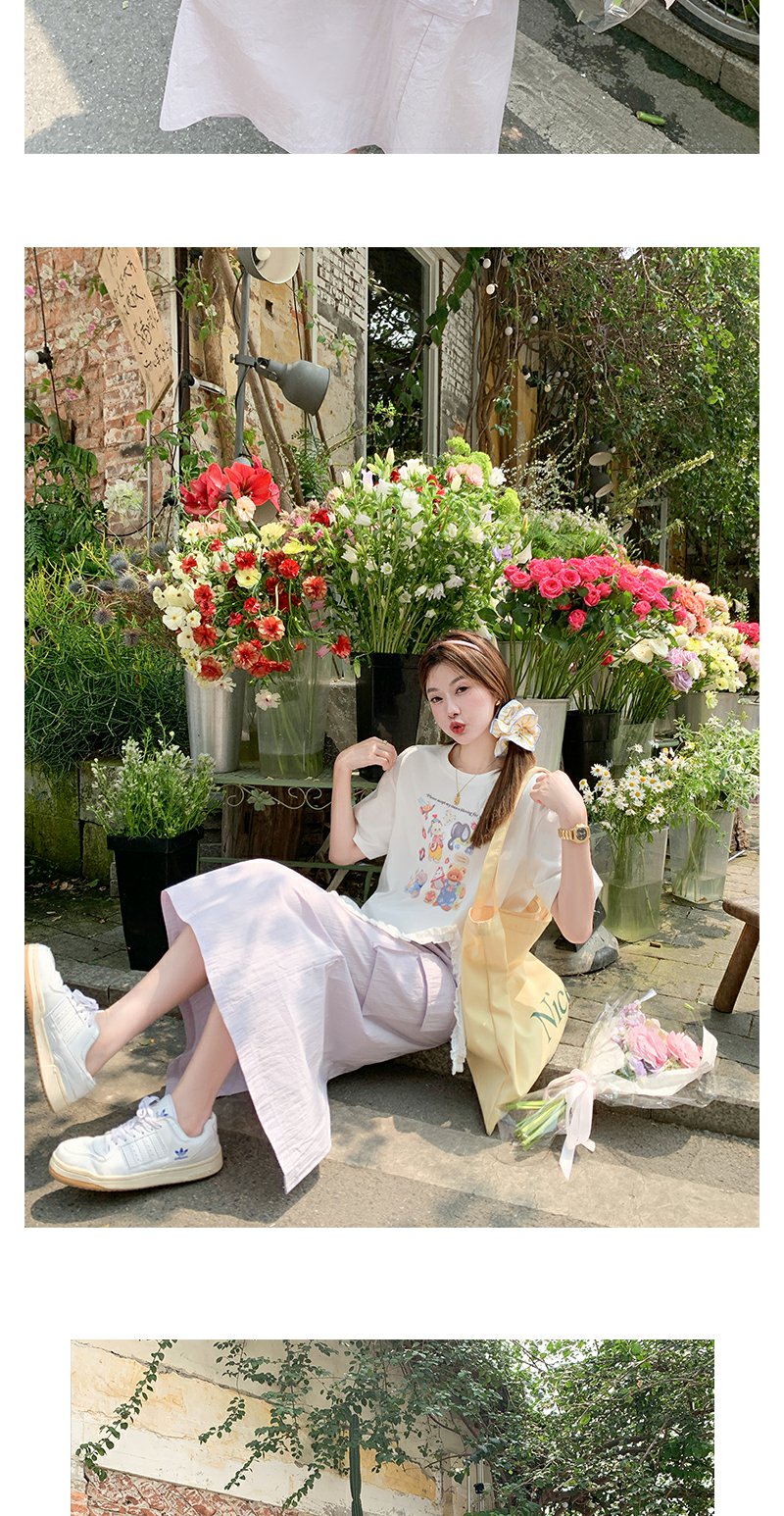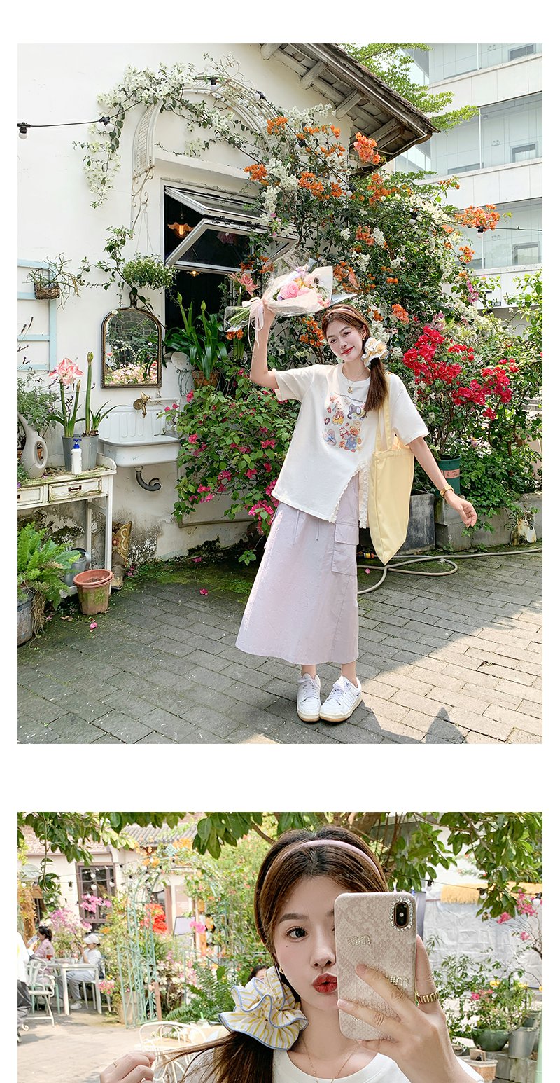<曾小咸推荐> 韩系印花白色圆领短袖t恤【预售7-15天发货】