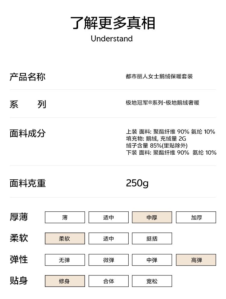 【极地冠军系列】都市丽人女士保暖衣套装加拿大鹅绒黑科技LWH1F4