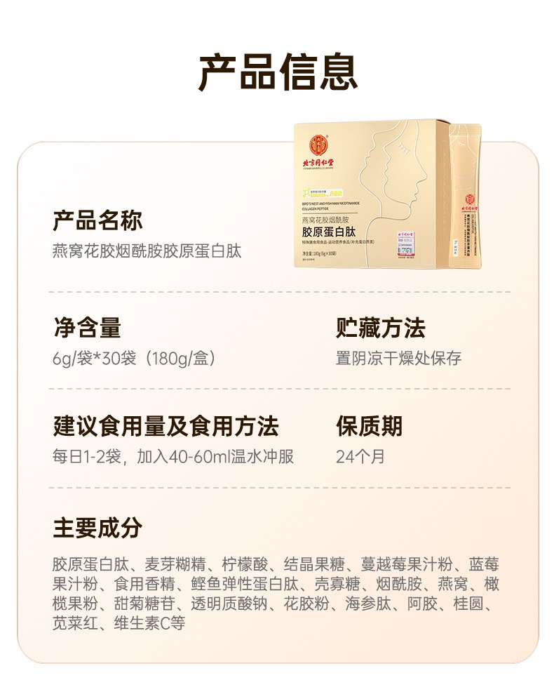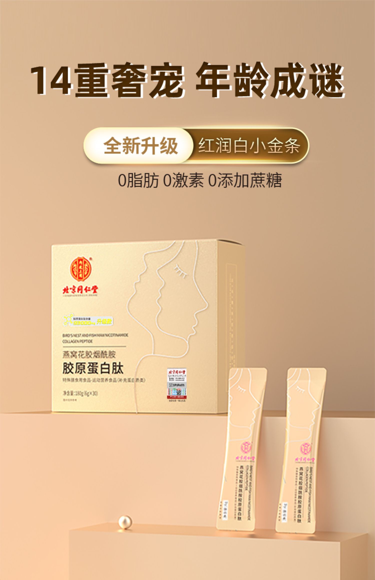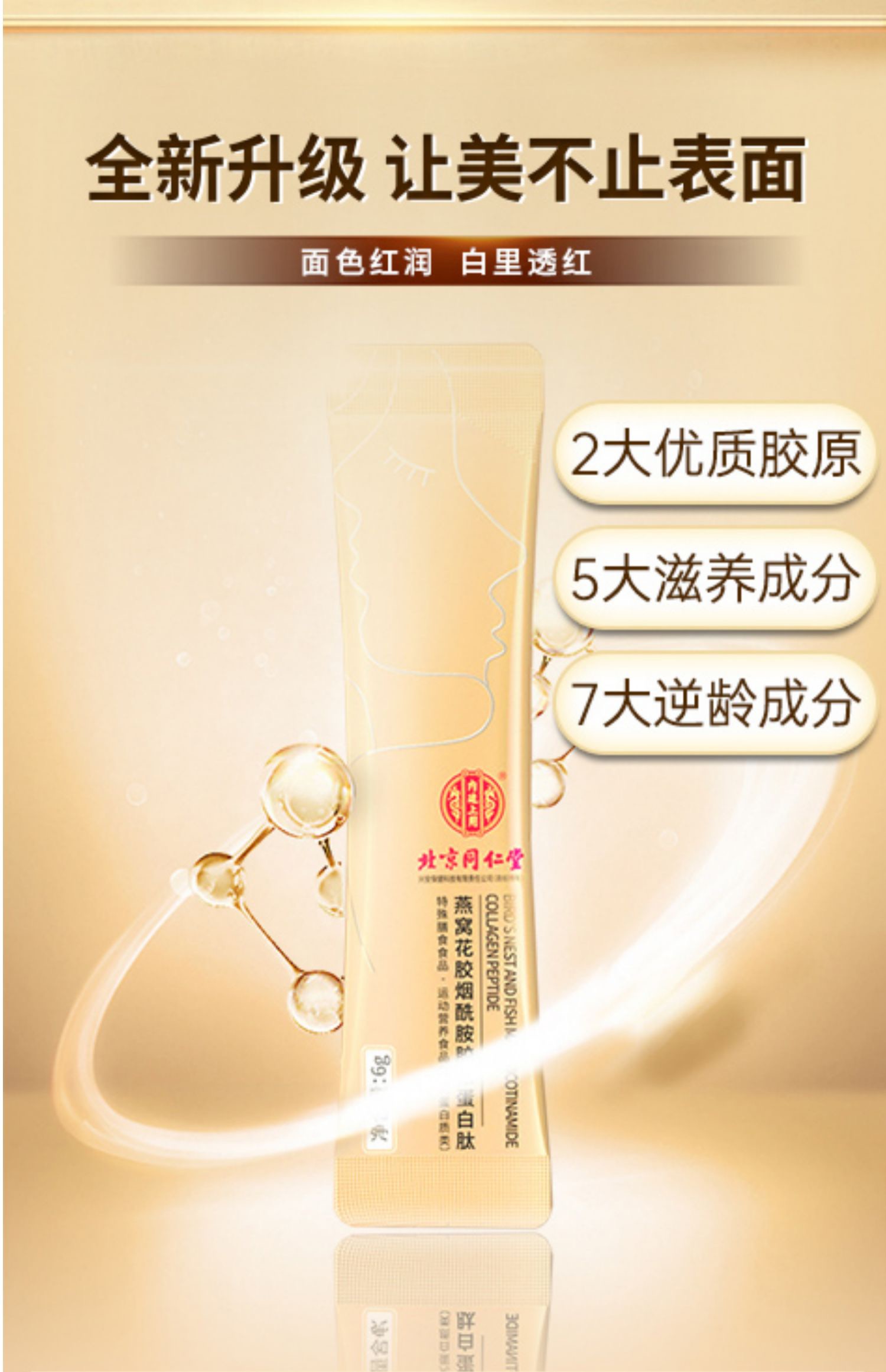 同仁堂胶原蛋白粉液态饮正品口服液小分子肽美容小白饮精华饮品【小金条一盒装套餐】