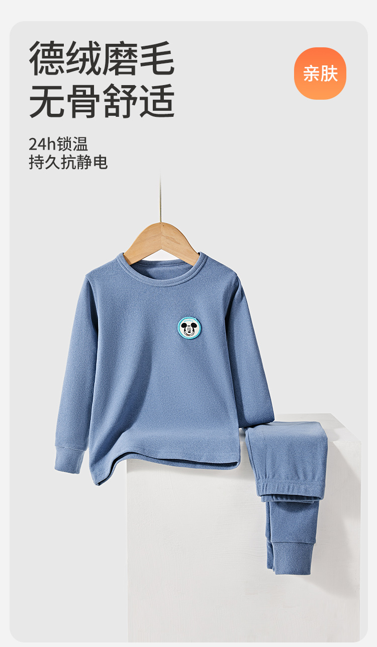 优选丨迪士尼男女童秋冬季轻柔舒适德绒磨毛7A抗菌家居内衣套装WXR3ZZ153