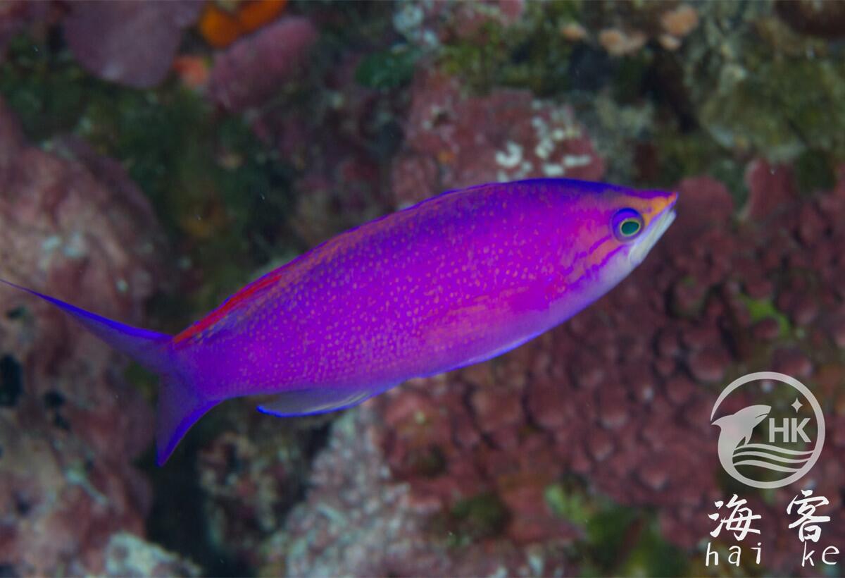 也叫黄背紫色海金鱼、紫色鱼。紫水晶的颜色,燕尾。身体是非常艳丽的紫色,鳃部是橘黄色的,幼鱼期背部是黄色。