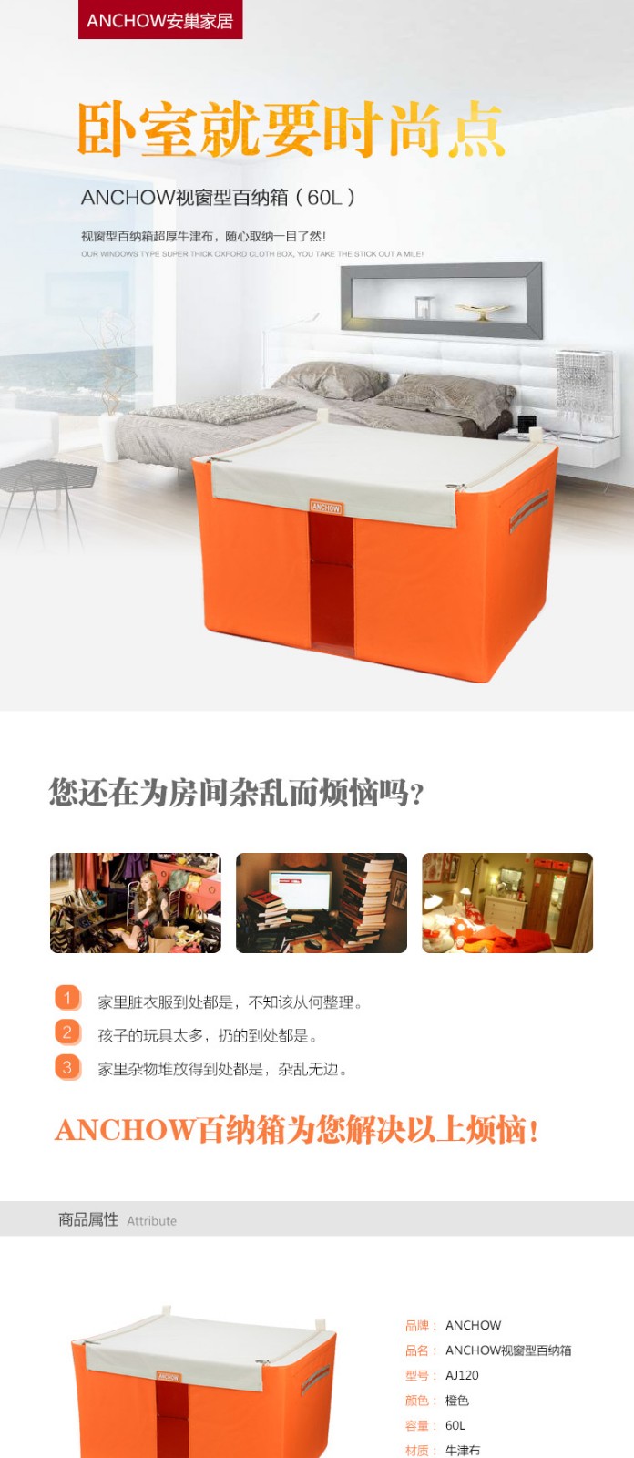 安巢家居  收纳箱  布艺抽屉收纳盒  AJ116/橙/12L 商品图2