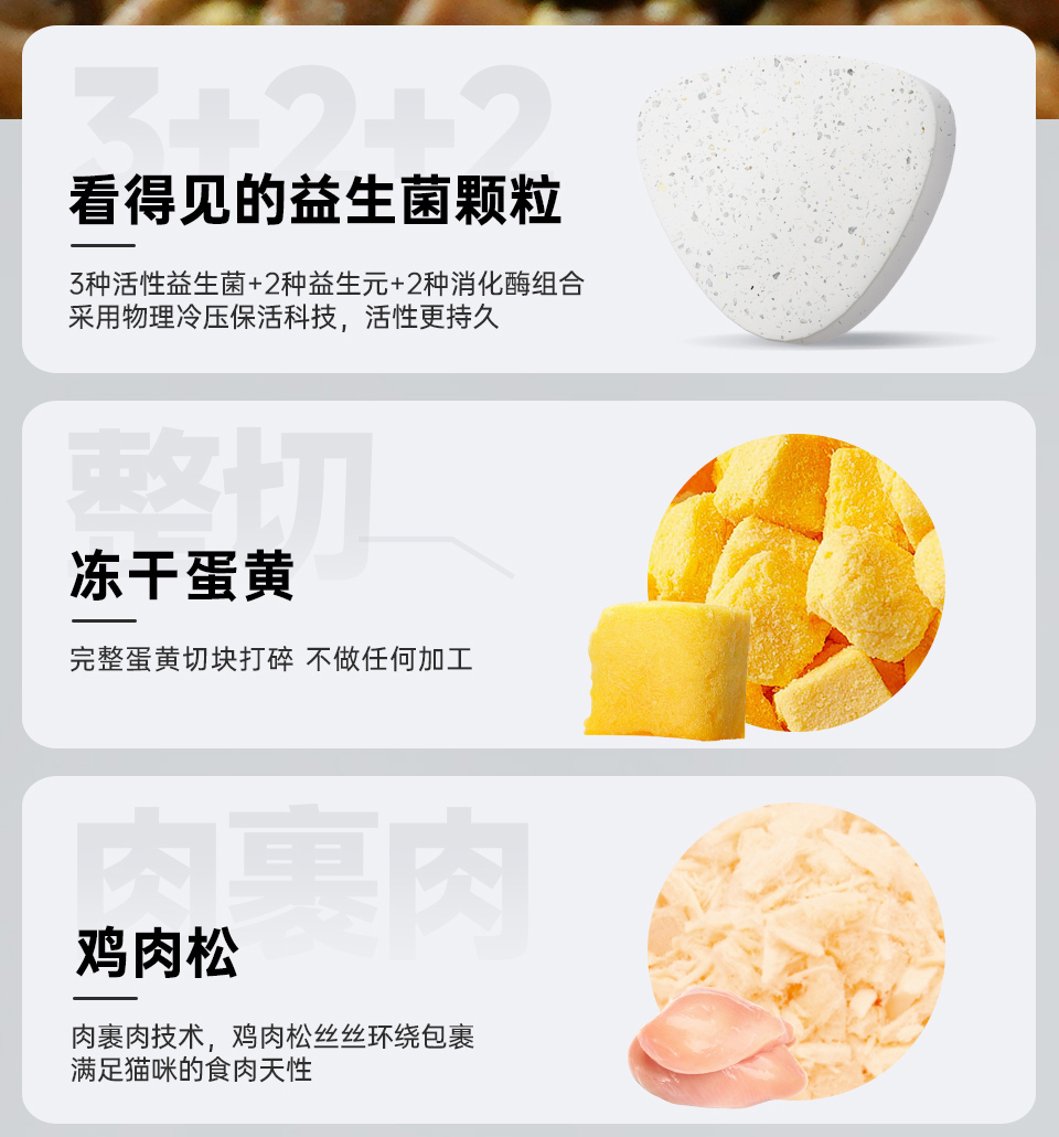 【新人专享】益消五拼500g装宠物蛋黄原切冻干益生菌全价猫粮囤粮套装
