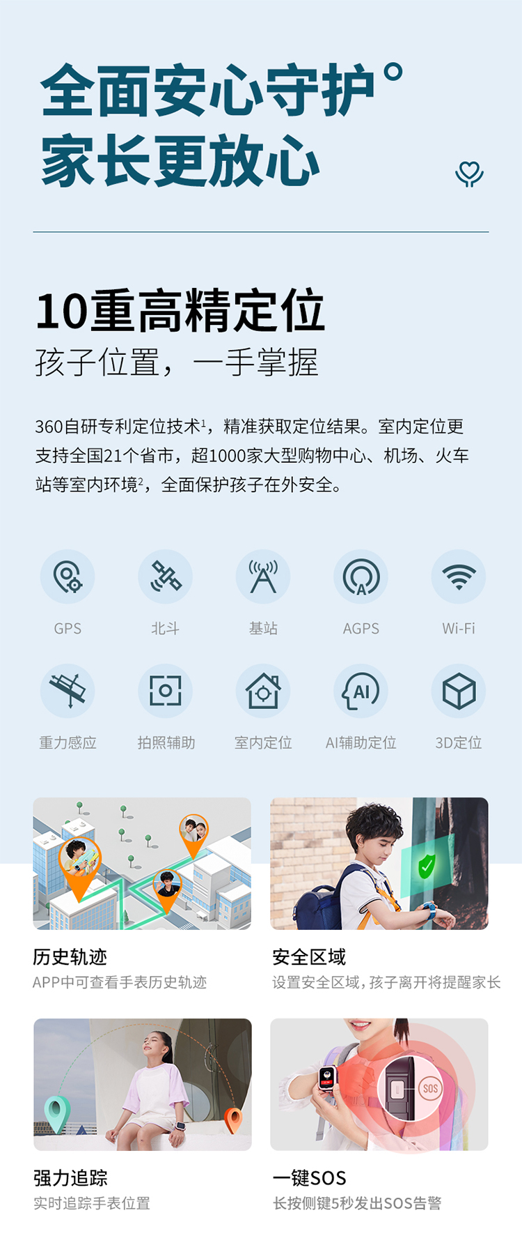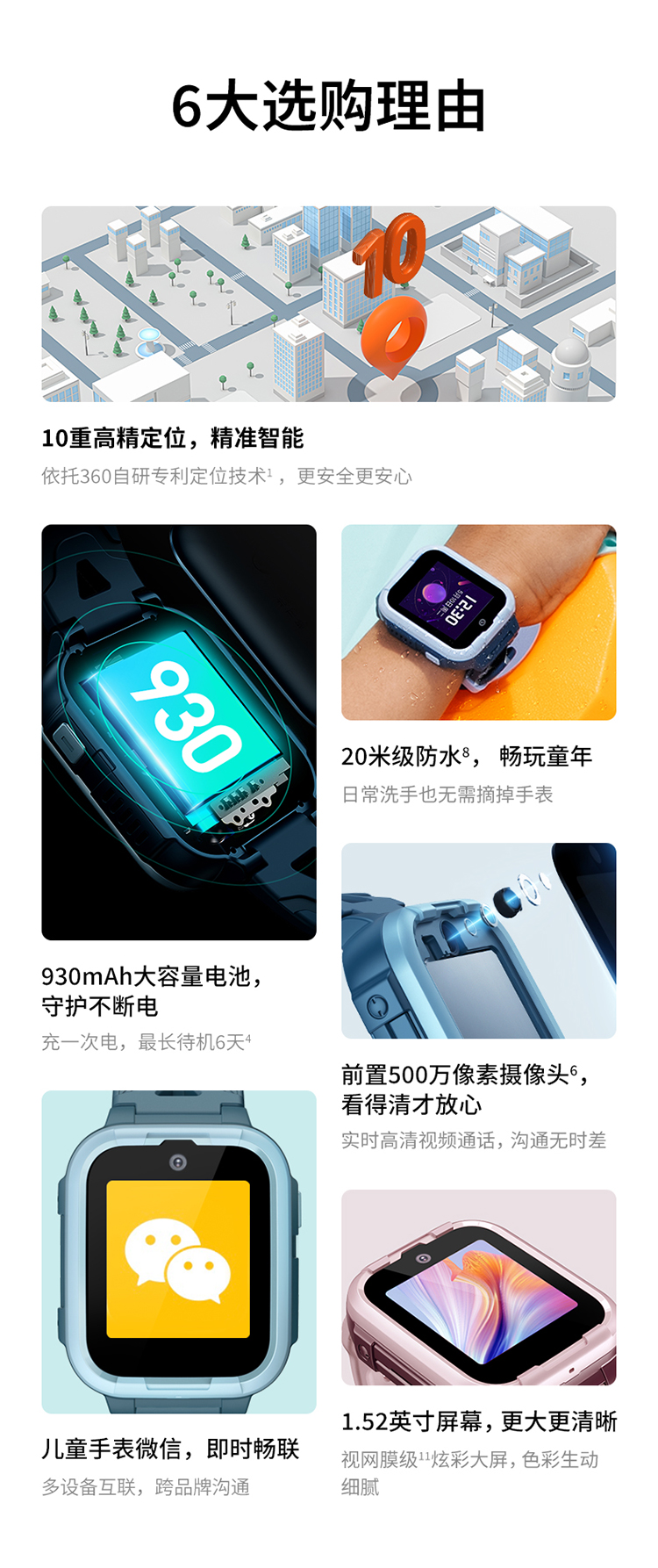 【超值】360儿童电话手表10X 微信QQ儿童手表版 10重定位 超长续航 4G全网通20米防水高清视频通话手表男女孩 海盐蓝