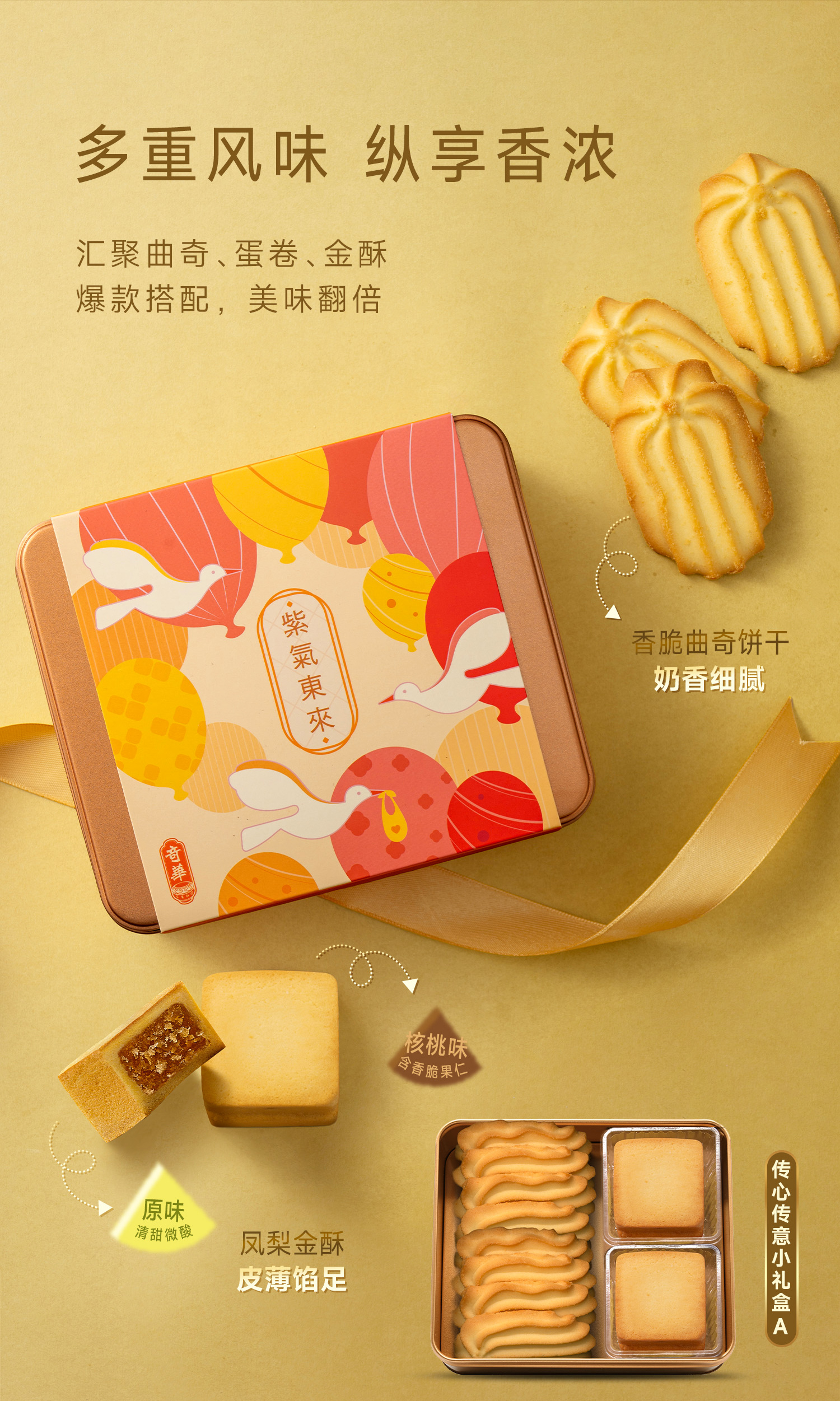 【传心传意小礼盒】中国香港奇华饼家曲奇凤梨酥蛋卷喜饼礼盒宝宝诞生满月百日宴伴手礼