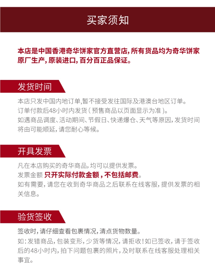 - 奇华饼家始创于1938年,八十六年来秉承传统制作港式饼食、嫁喜礼饼、中秋月饼及时令食品。奇华更推出代表香港的手信礼品系列,成为港人及旅客送礼的必买手信,奇华食品均由香港制造,质量保证,值得信赖。