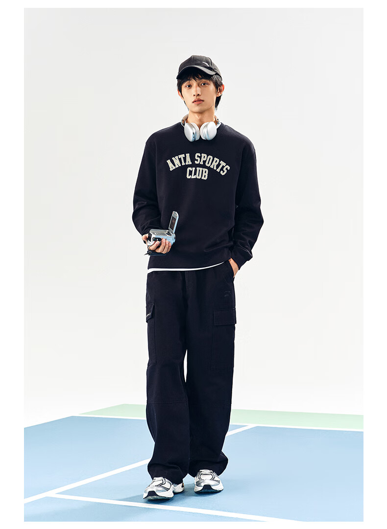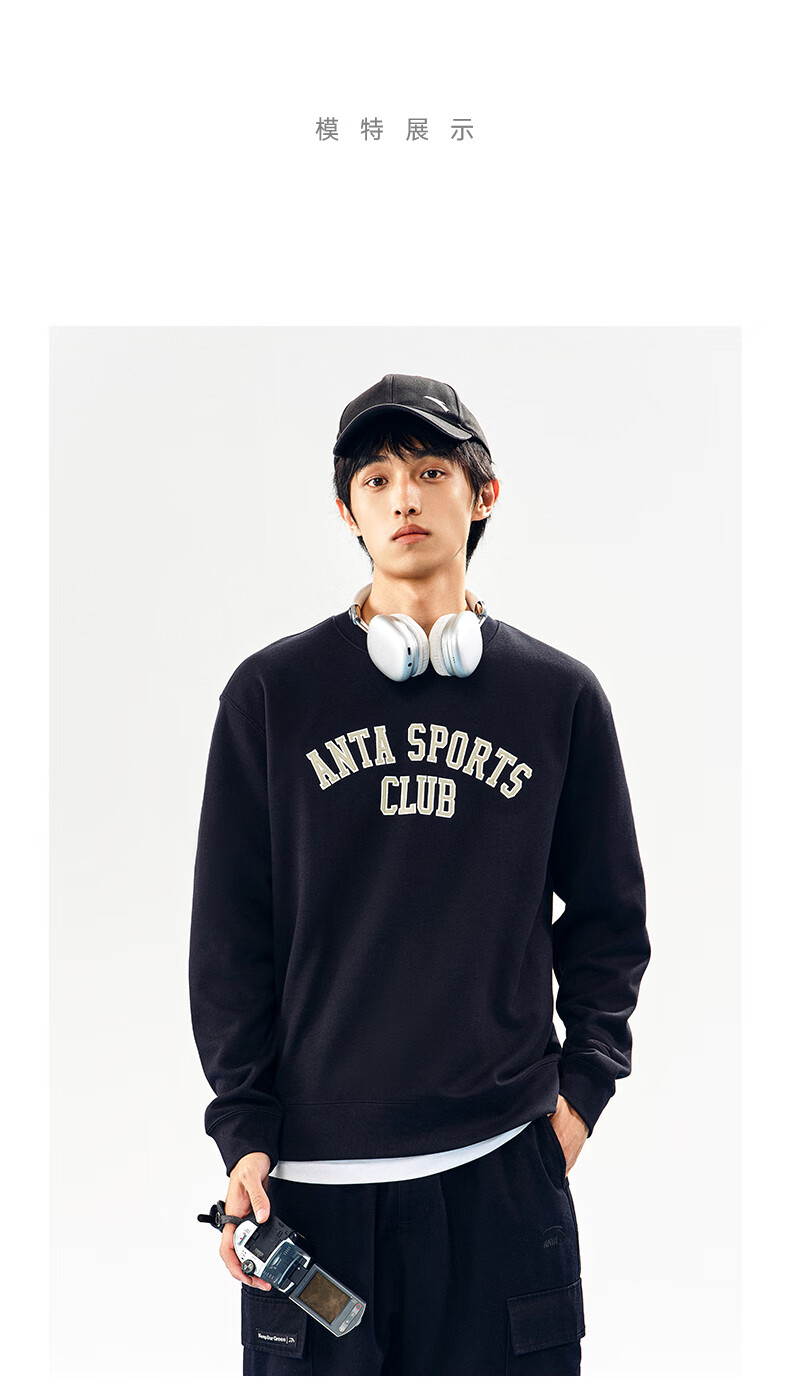 安踏运动卫衣男女款冬季雅丹风加绒套头衫休闲运动上衣152448706N