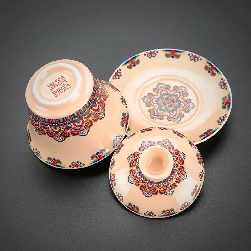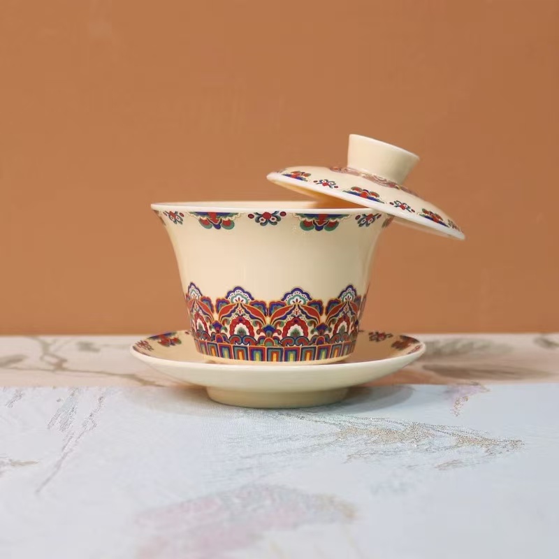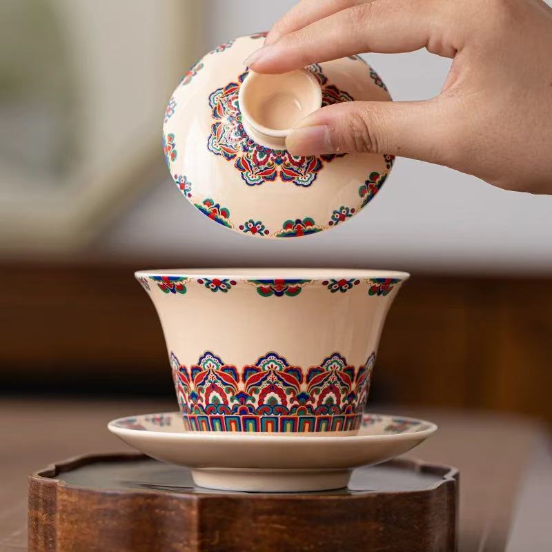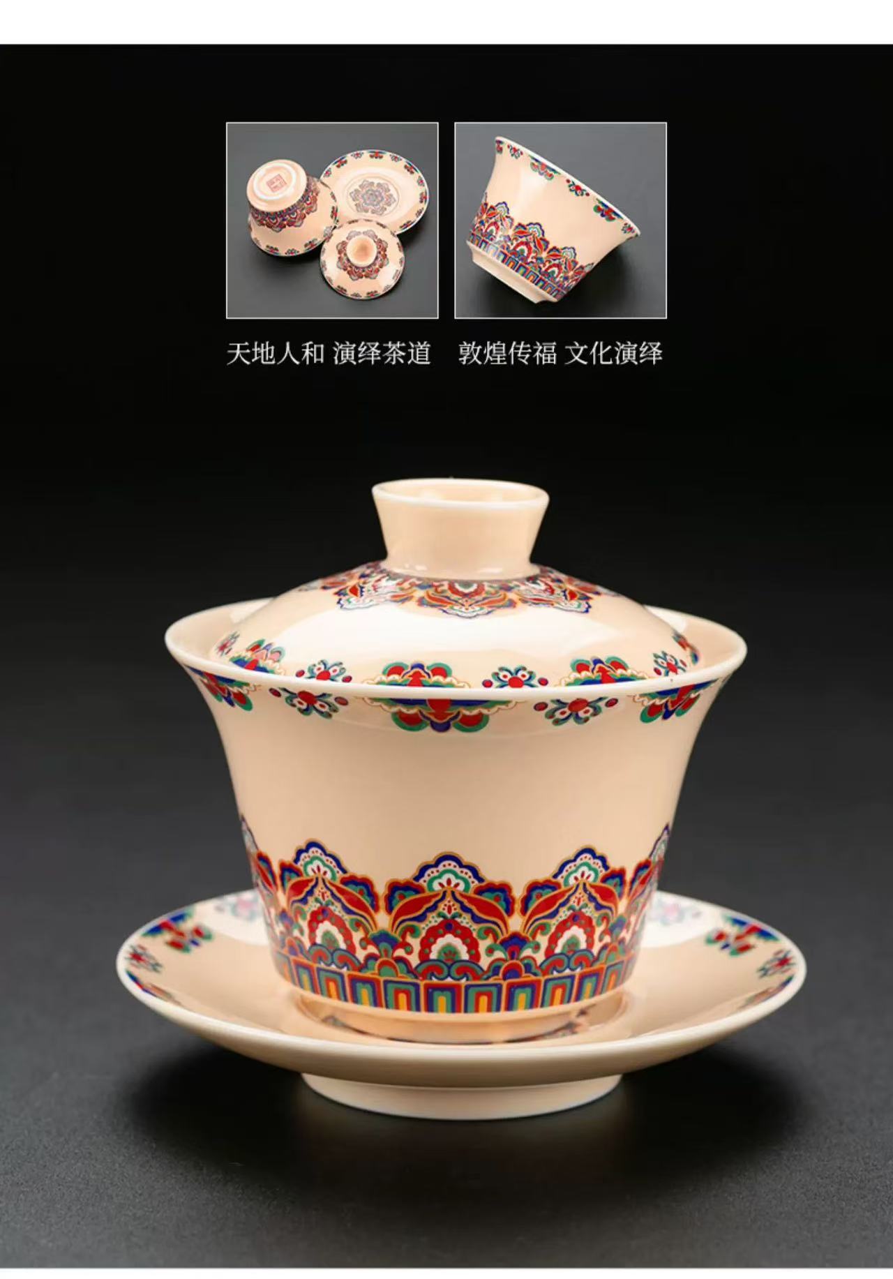 【品名】敦煌宝相花可悬停盖碗茶杯