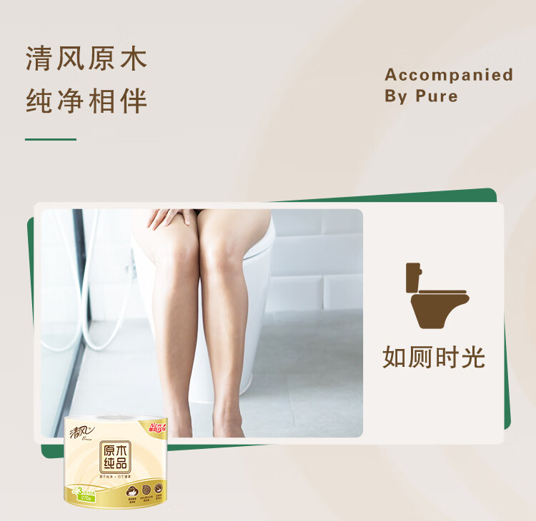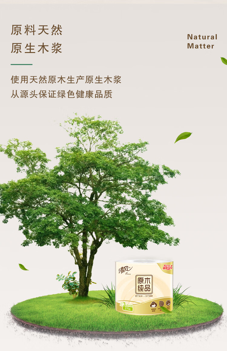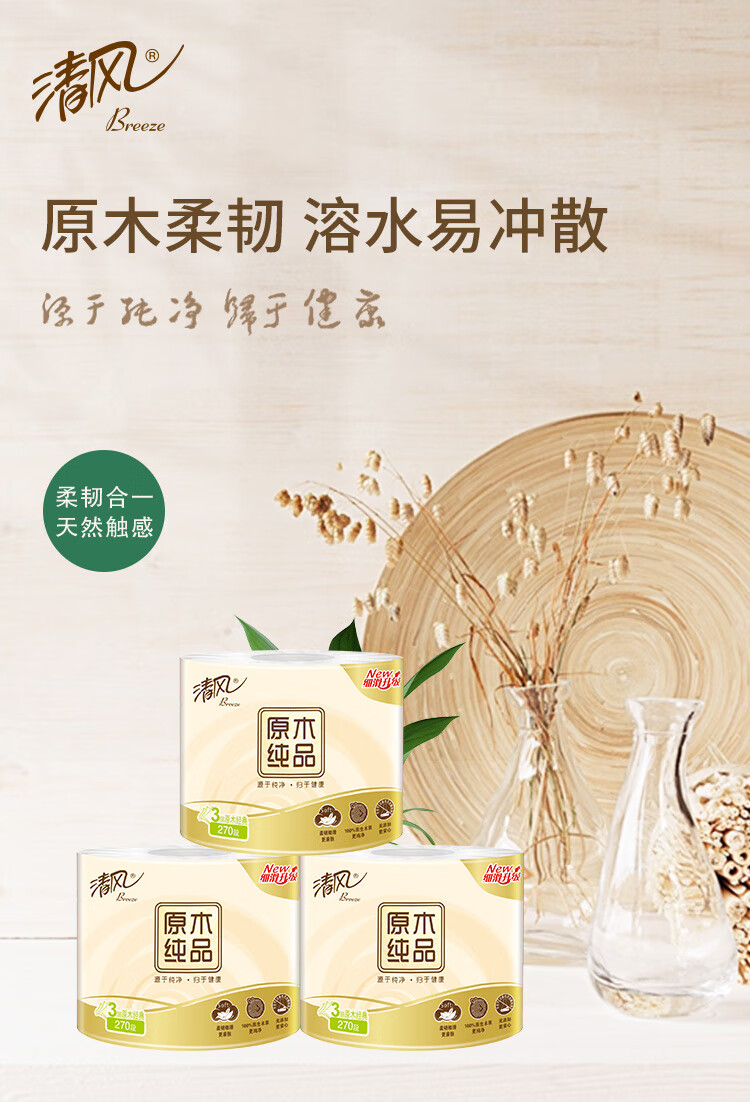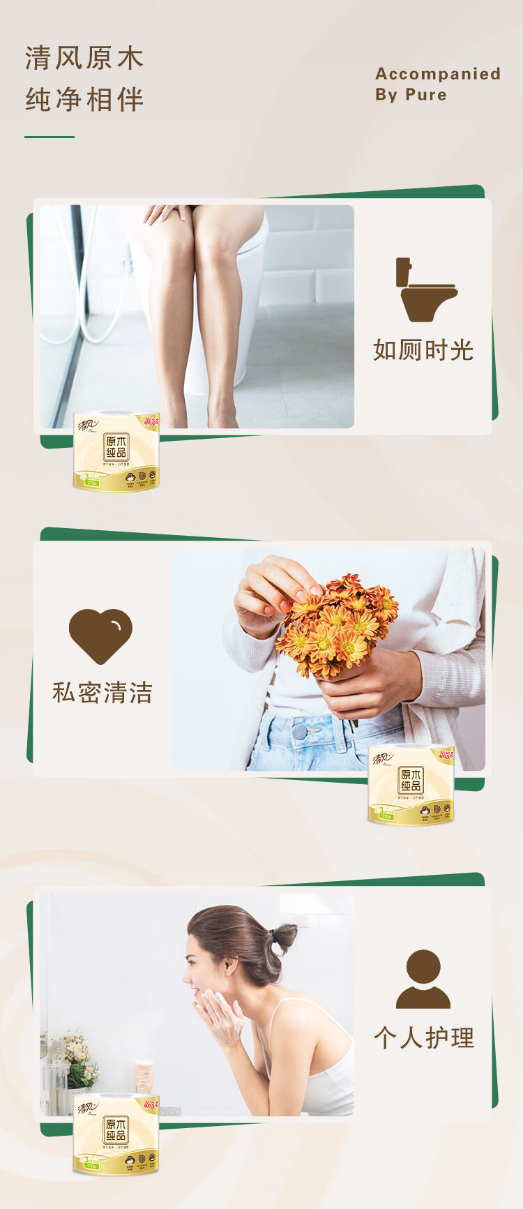 清风 卷纸 原木纯品系列4层无芯卷纸 单提