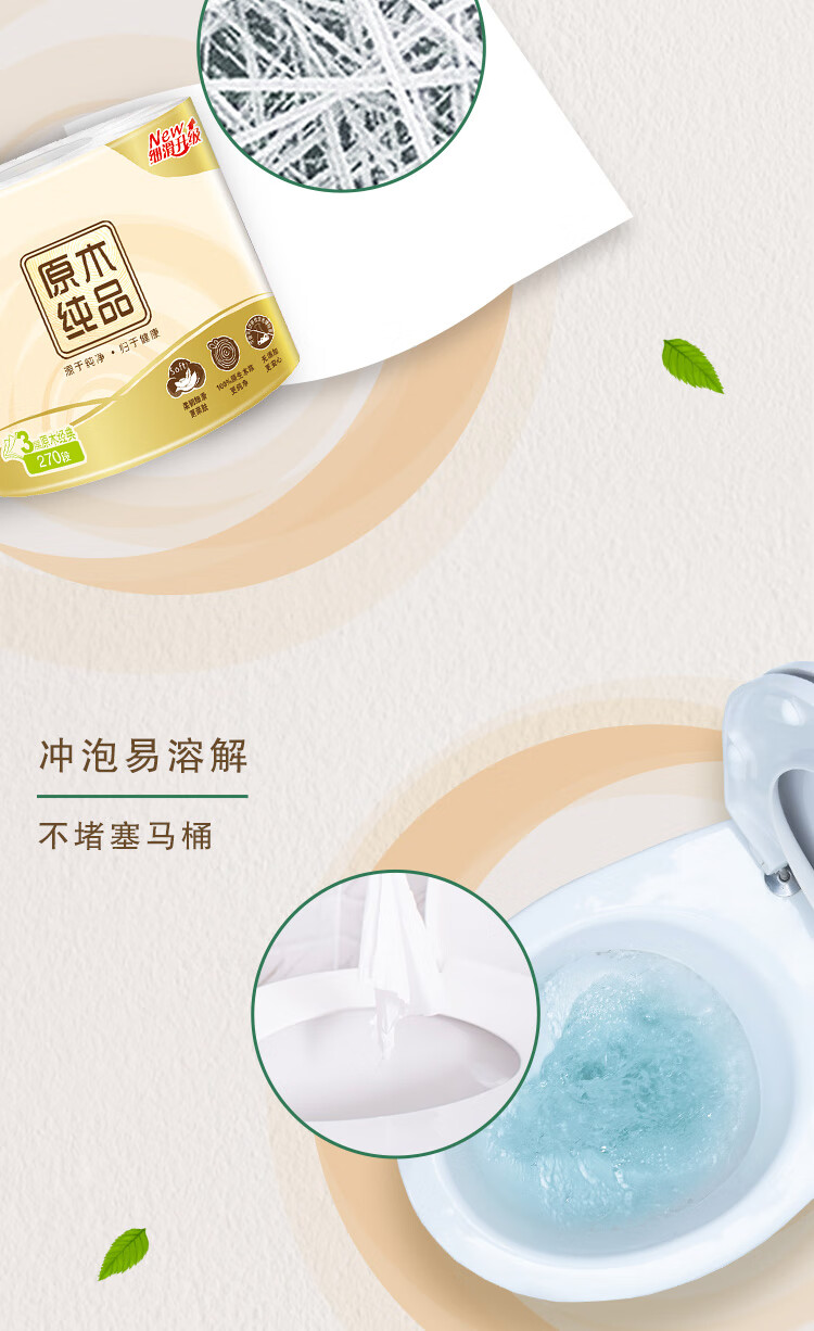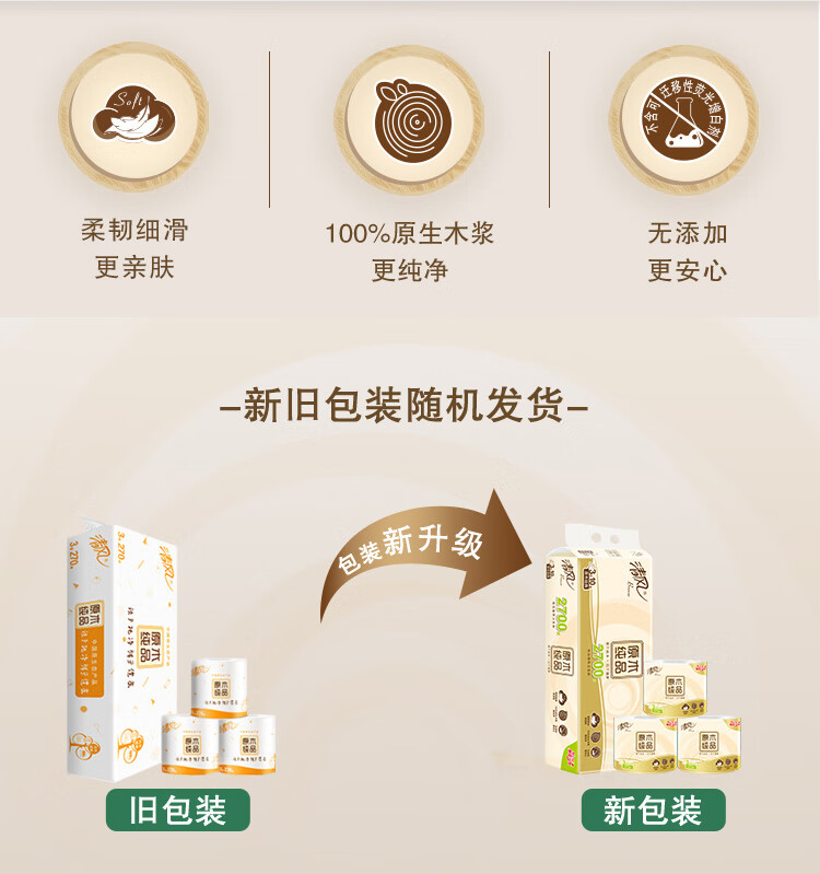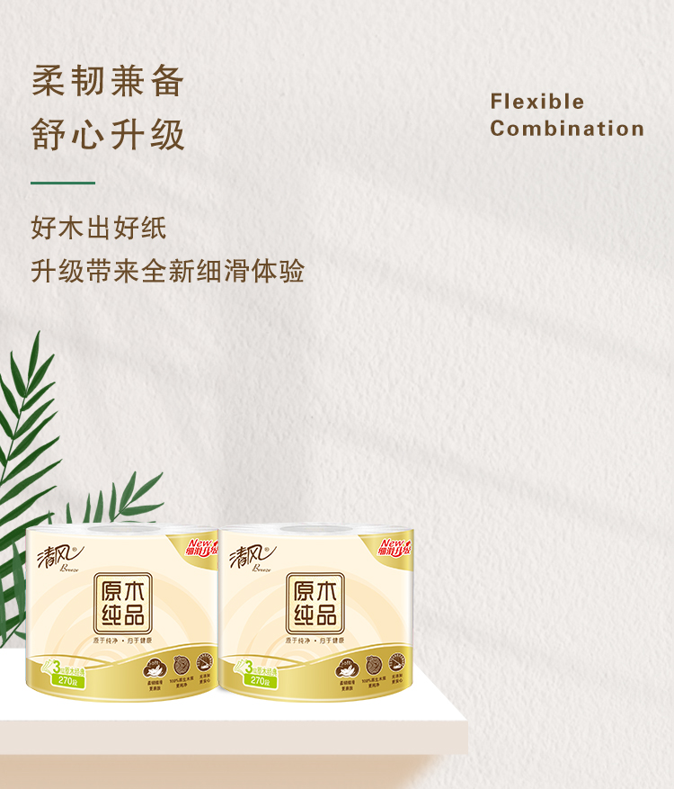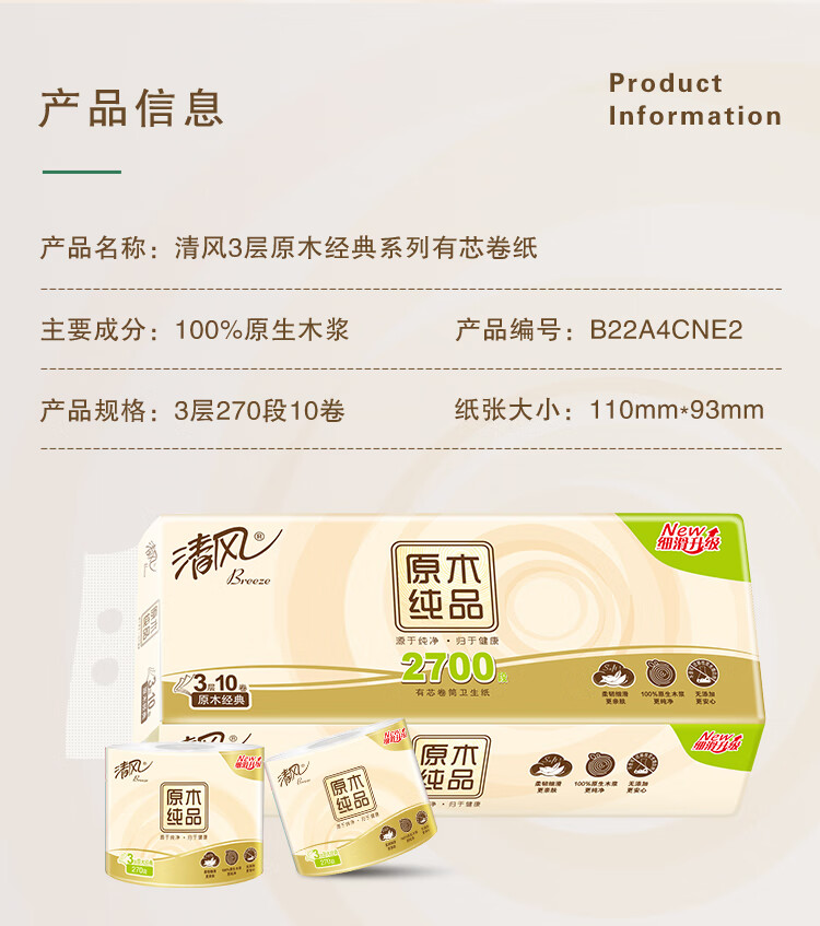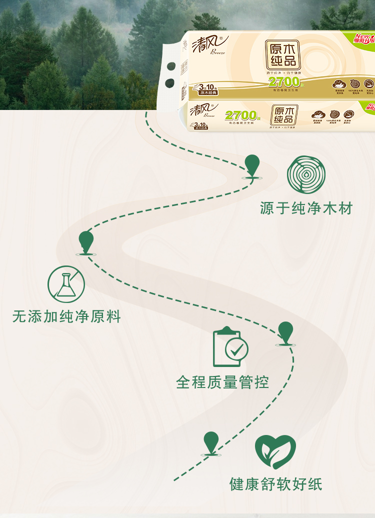 清风 卷纸 原木纯品系列4层无芯卷纸 单提