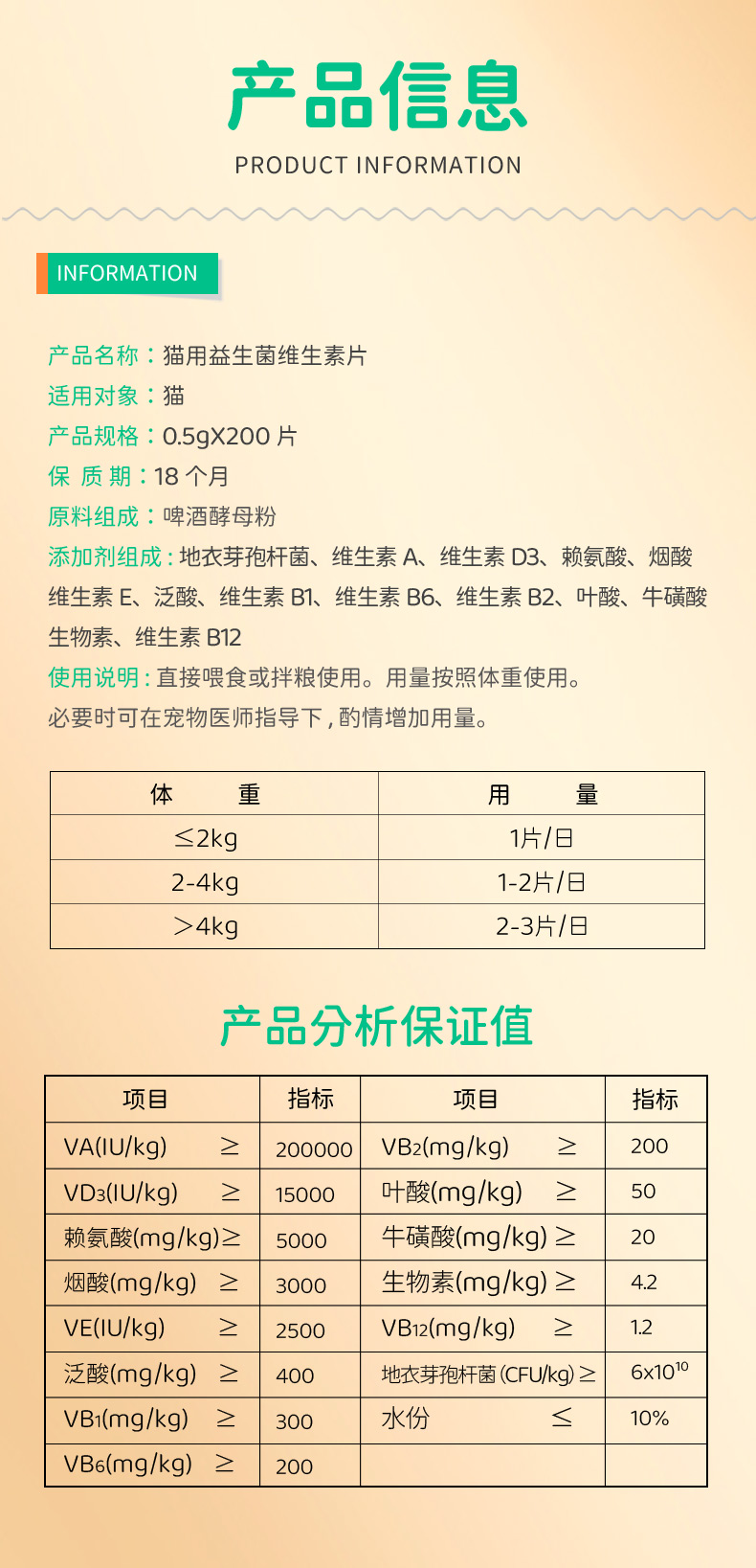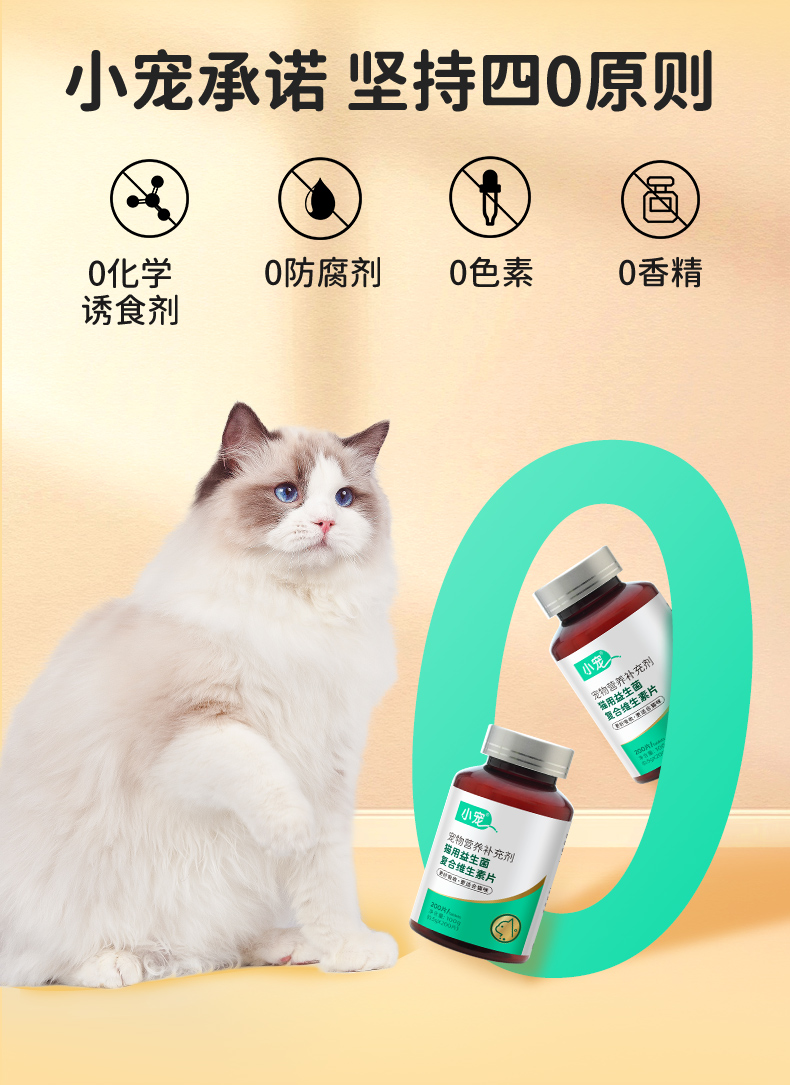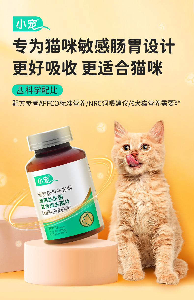 小宠 猫用益生菌复合维生素片 200片/瓶 营养保健 毛发干枯 口腔溃疡 消化不良