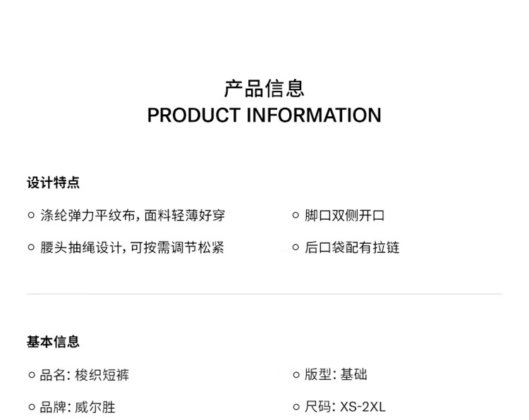 威尔胜(Wilson)夏季男士VOLLEY弹力抽绳轻薄运动短裤 WM00274331