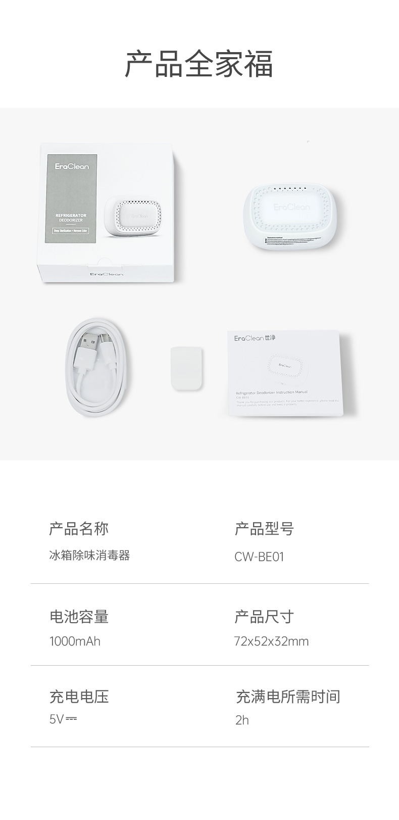 EraClean(世净)冰箱除味消毒器CW-BE01