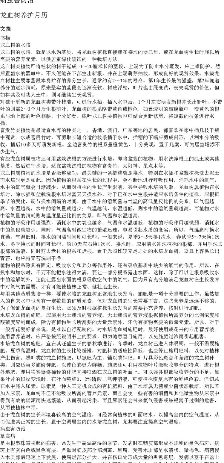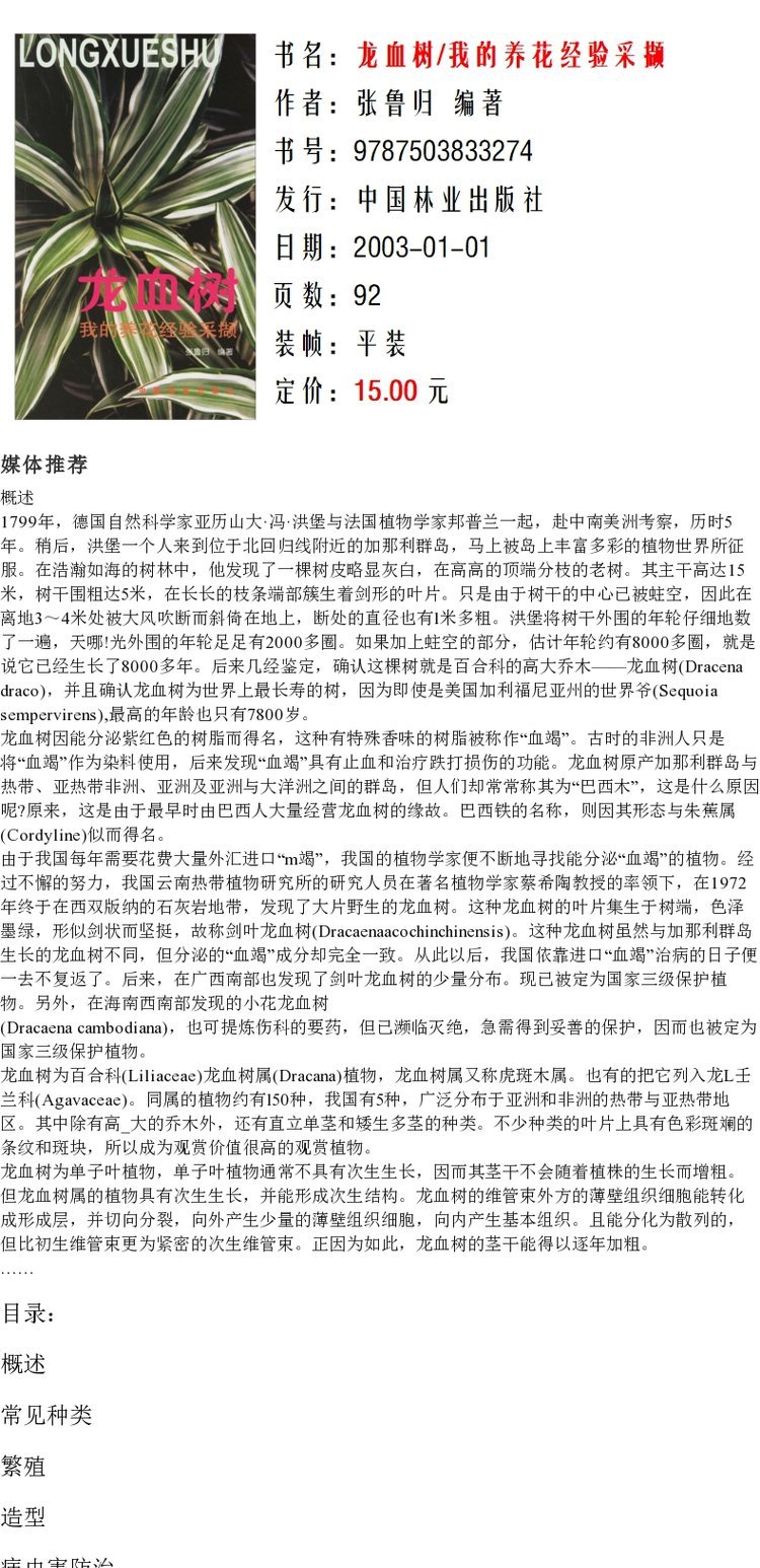 龙血树 我的养花经验采撷 3327 张鲁归 繁殖 造型 病虫害防治 龙血树养护月历 中国林业出版社